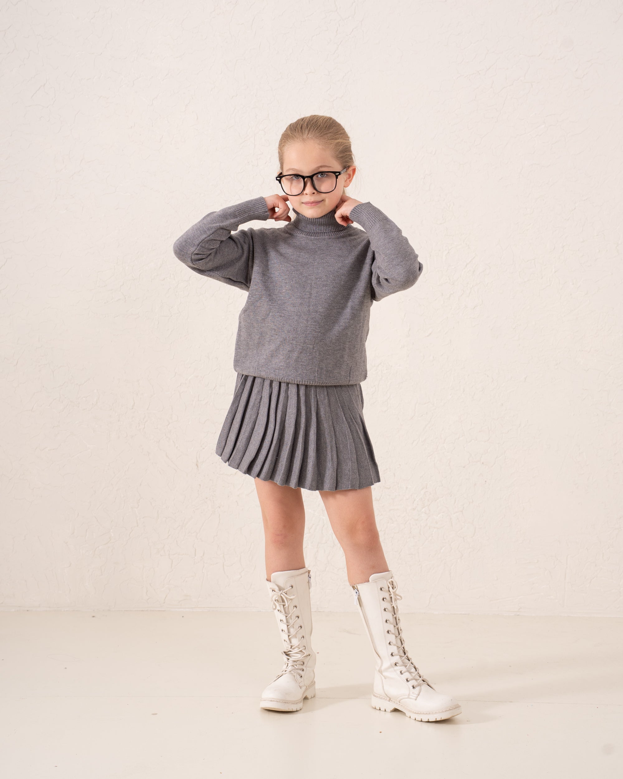 A cozy knit turtleneck designed for warmth and effortless style. With a relaxed fit and soft finish, it’s perfect for winter days, layering, or pairing with matching skirts and trousers.
