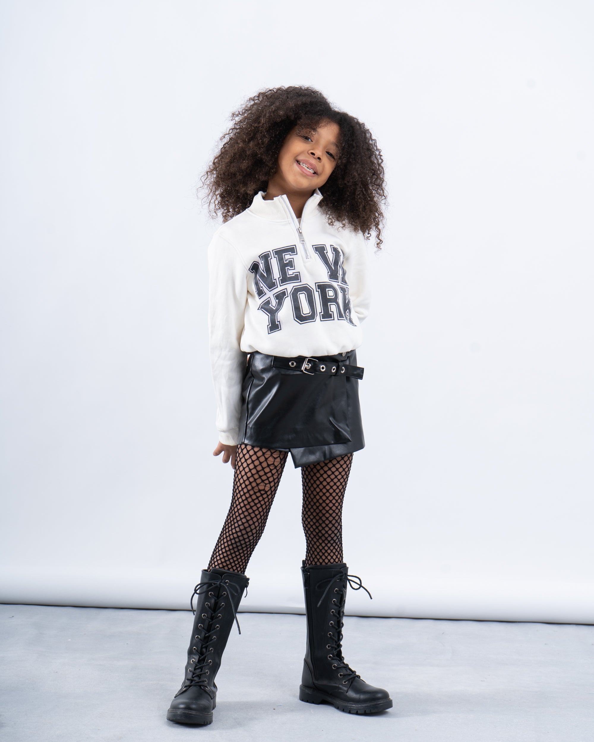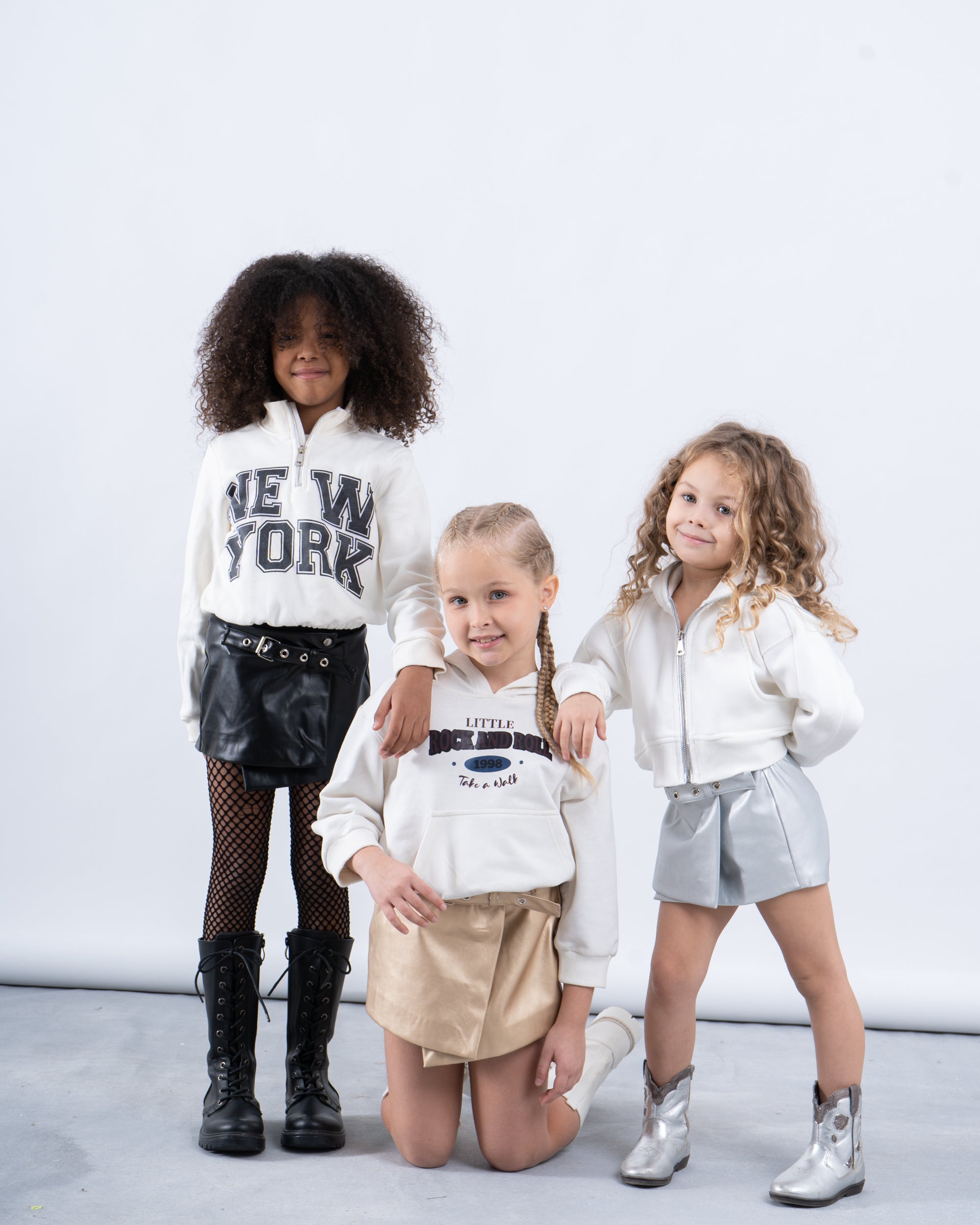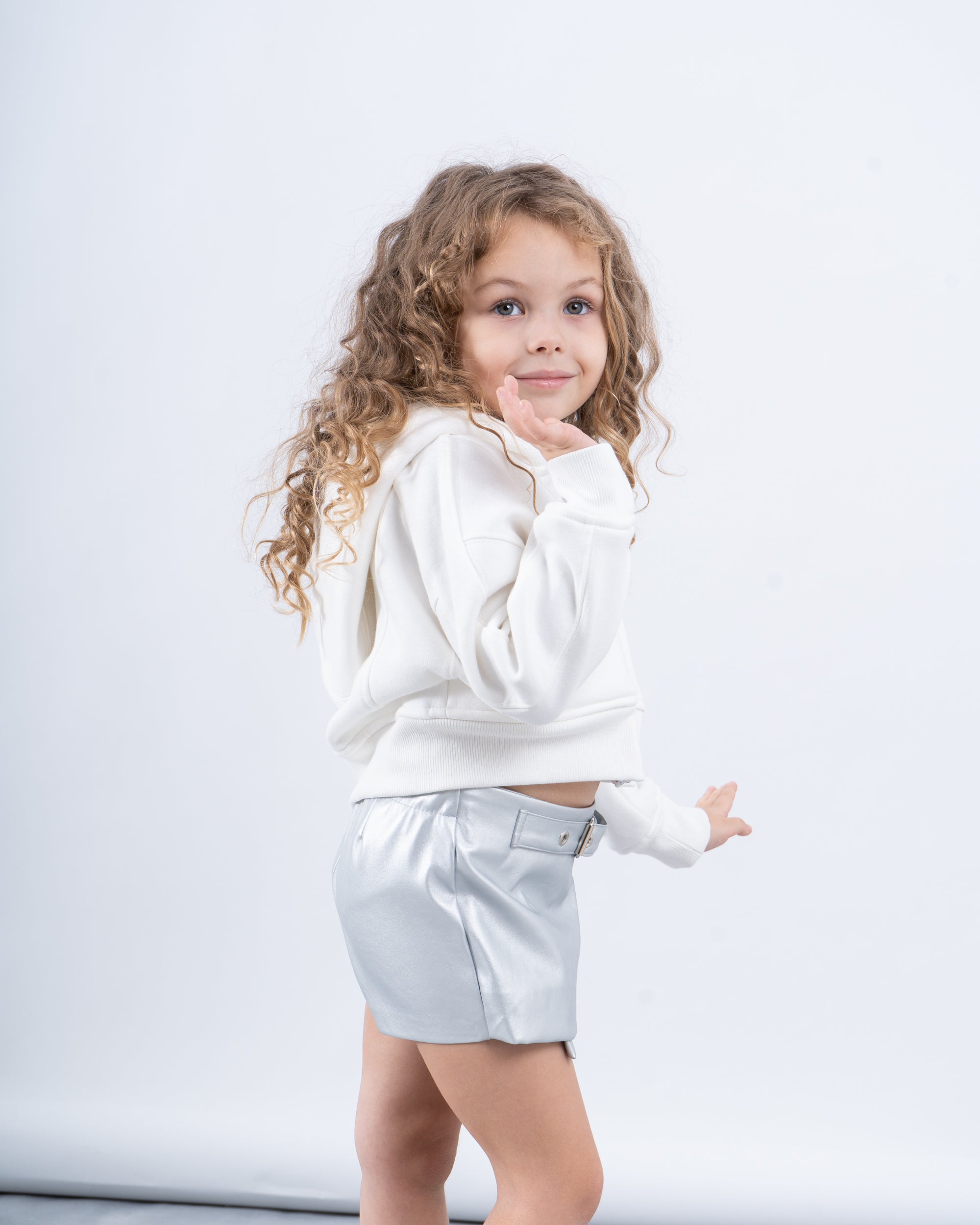 Elevate their style with this chic leather skort, designed for young trendsetters. This skort combines the classic look of a skirt with the comfort and practicality of shorts, perfect for playdates or family outings. The sleek faux leather finish and adjustable belt add a touch of sophistication, while the soft inner lining ensures all-day comfort. Pair it with tights and boots for a fashion-forward, season-ready look.