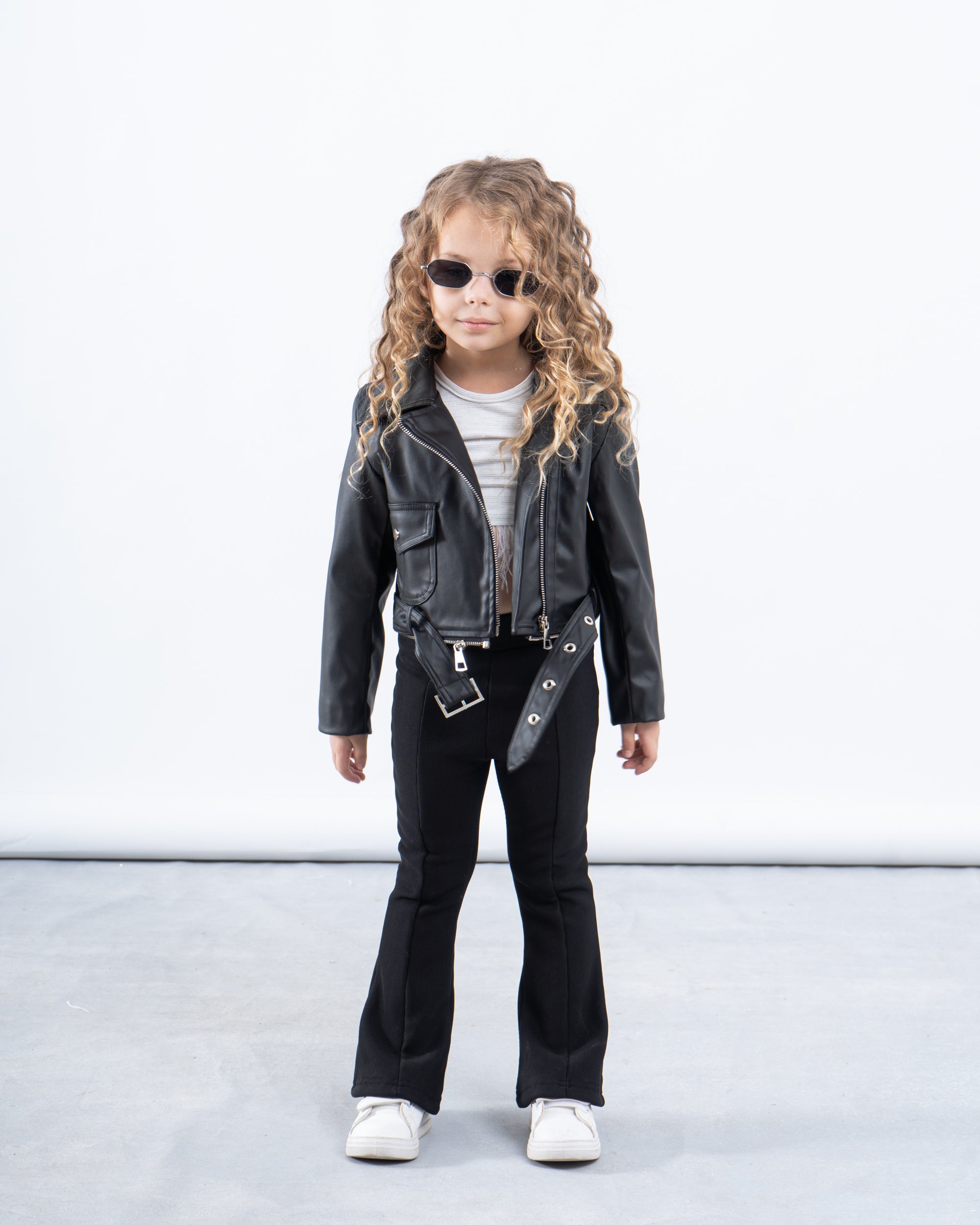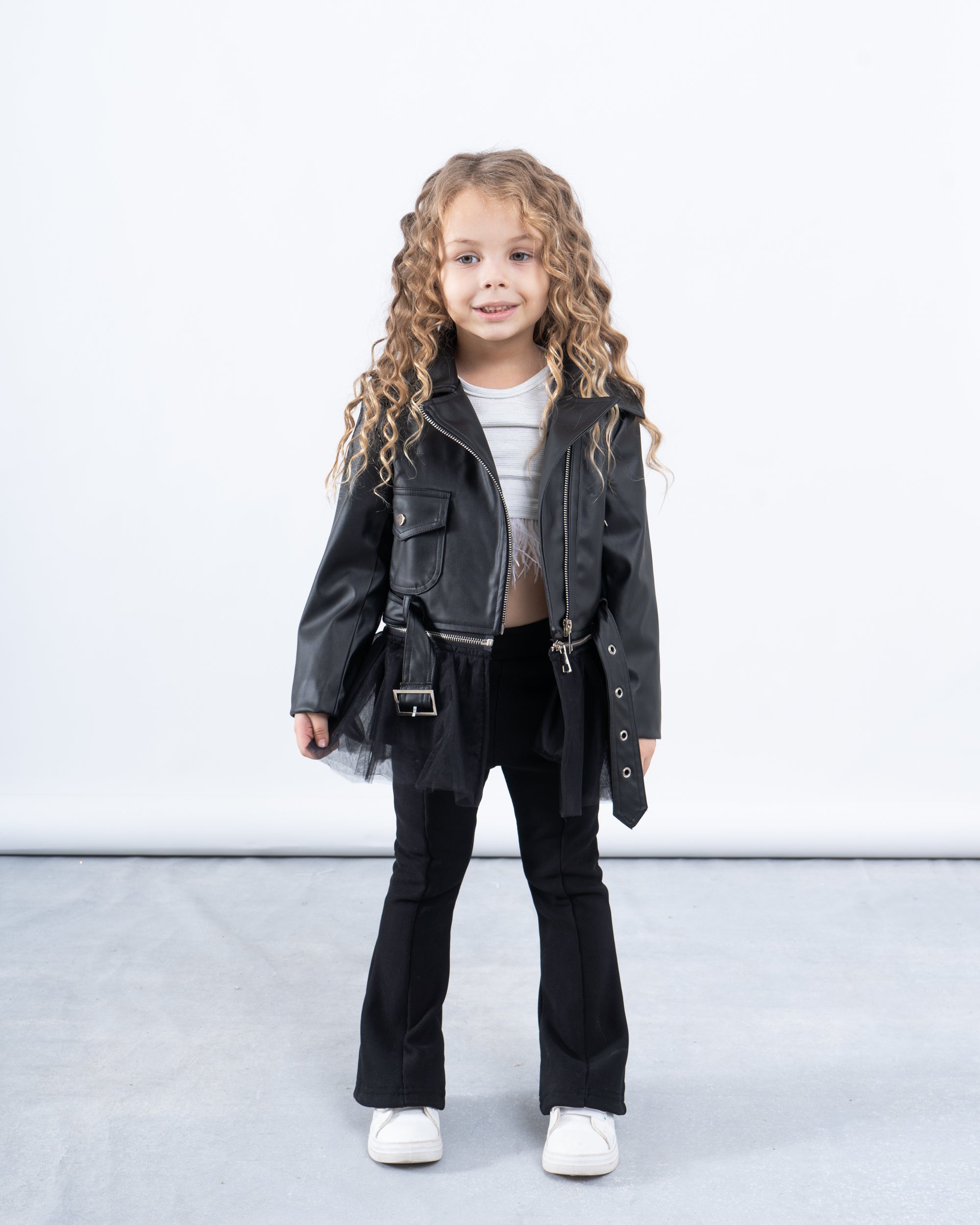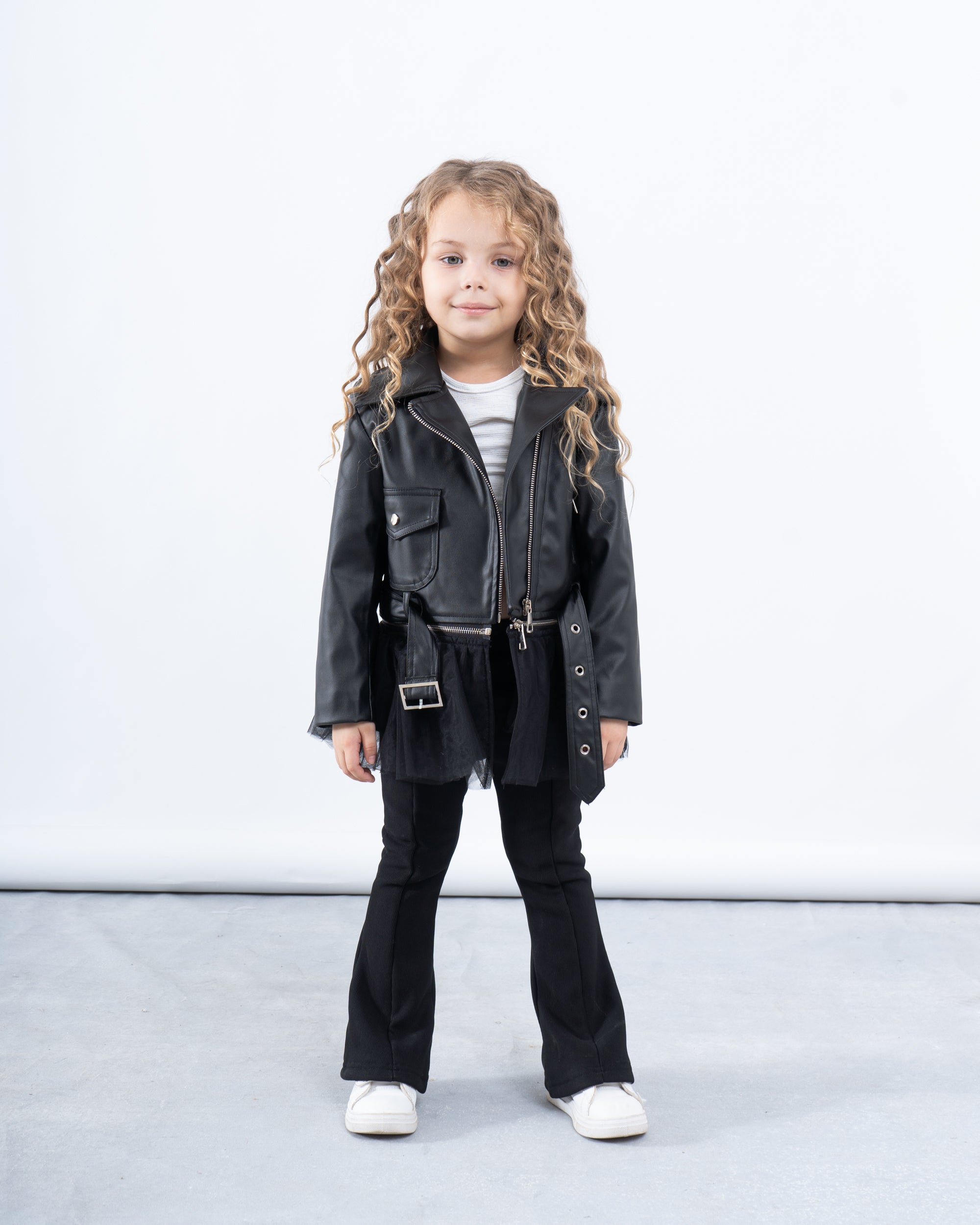 A bold and versatile take on the classic biker jacket. This faux leather piece features a unique detachable lower panel, allowing you to transform it into a cropped style by unzipping the section. Designed with silver-tone hardware, an asymmetrical front zip, and a sleek, structured fit, this jacket is perfect for adding an edge to any outfit.