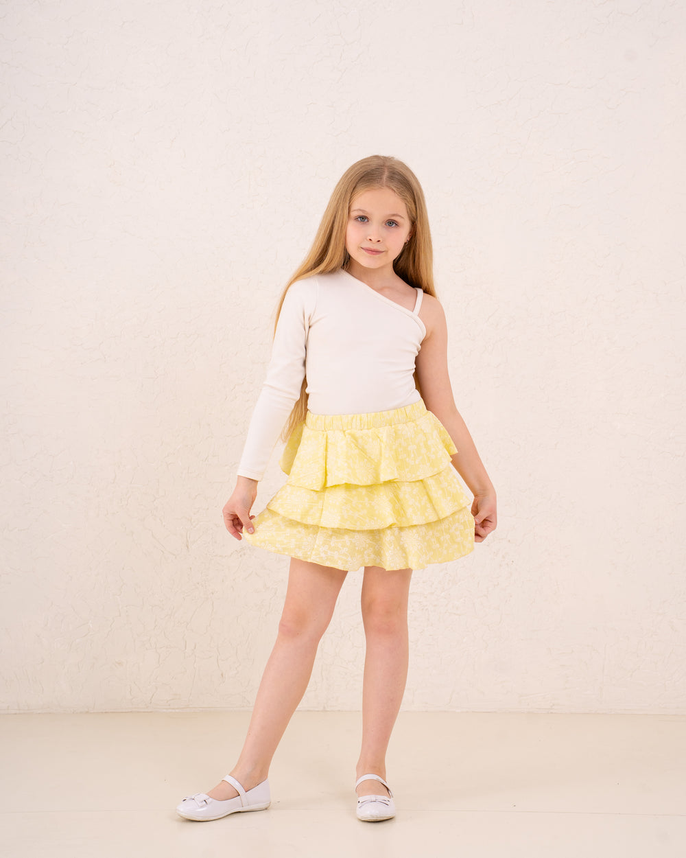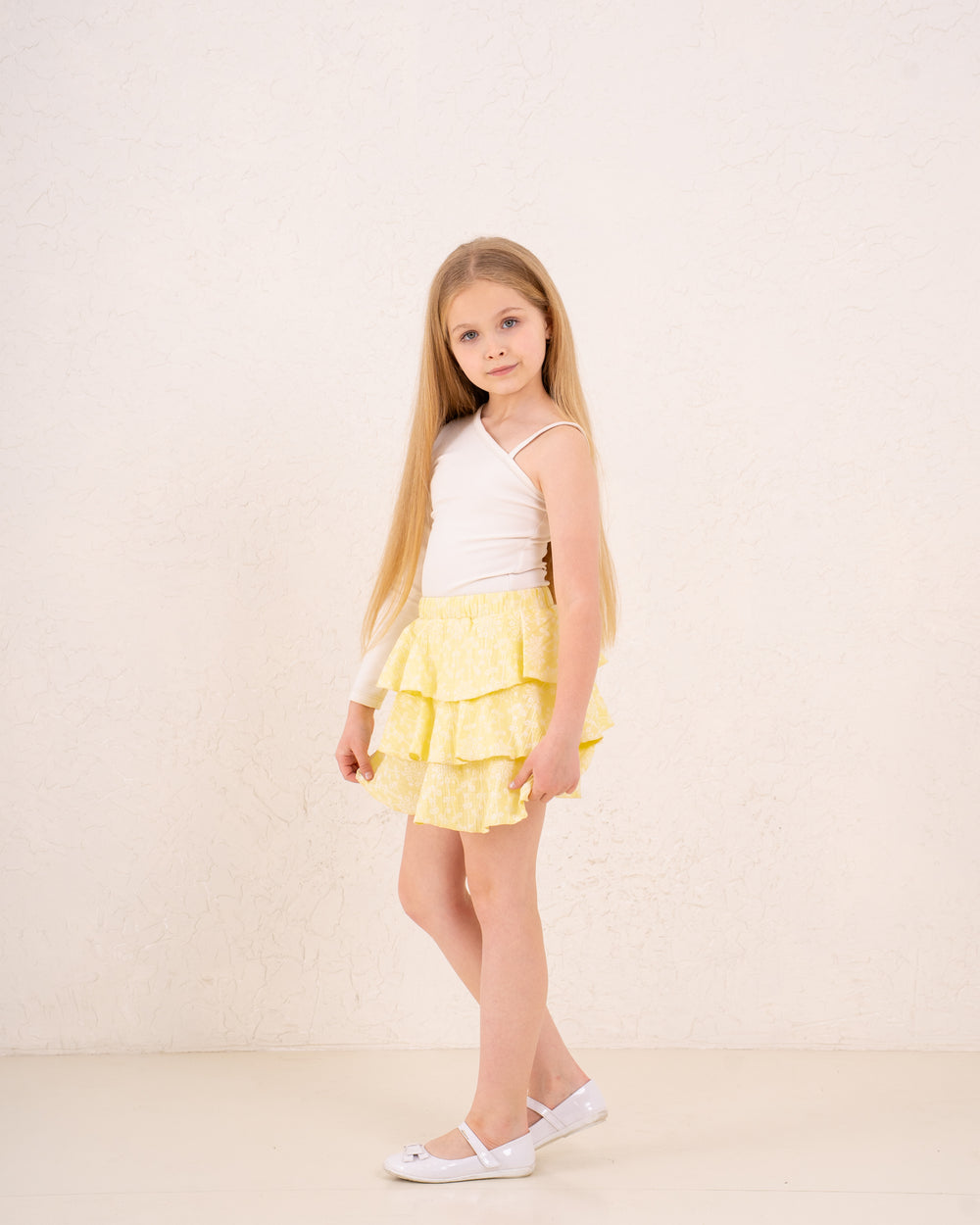 Playful layered skirt designed with soft ruffles and a delicate all-over print.
