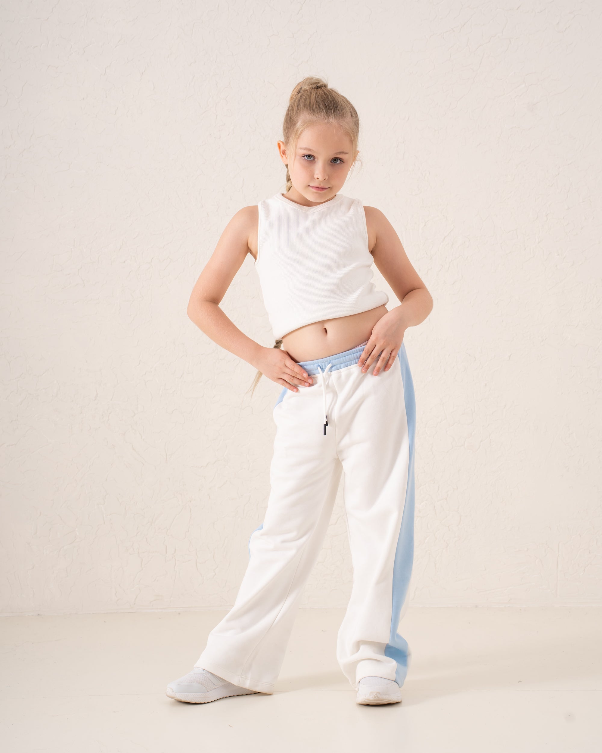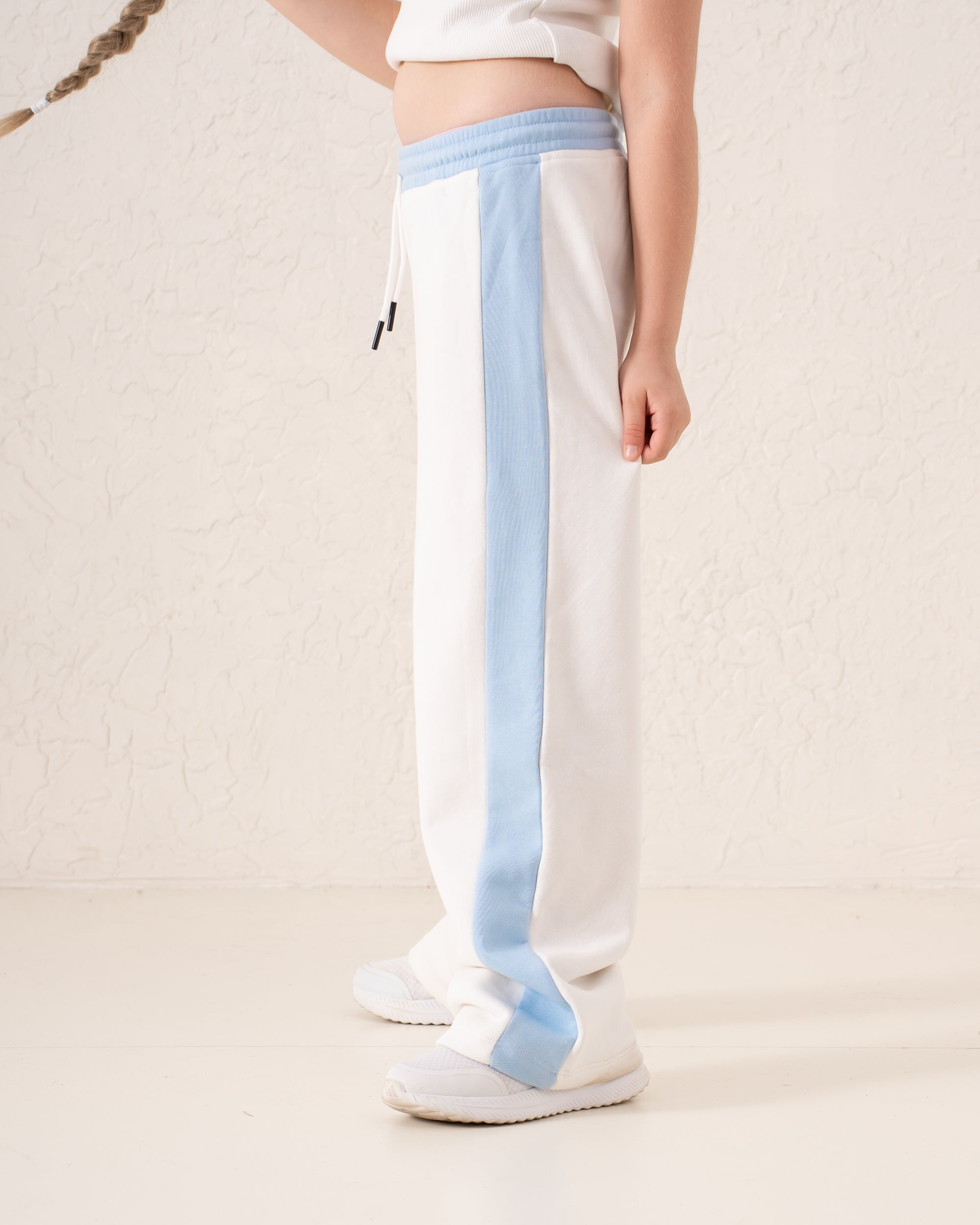 A playful yet stylish pair of wide-leg pants with a contrasting side stripe for a sporty-chic vibe. Designed with a double boxer-style waistband for added comfort and secure fit during play.
