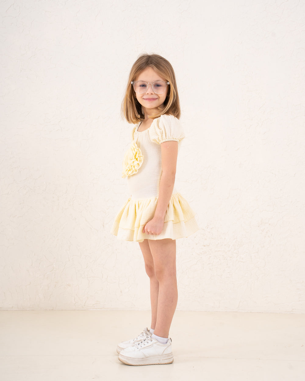 The standout pop-out flower adds a sweet statement, while the ruffled skirt brings a fun, feminine touch that little girls love.