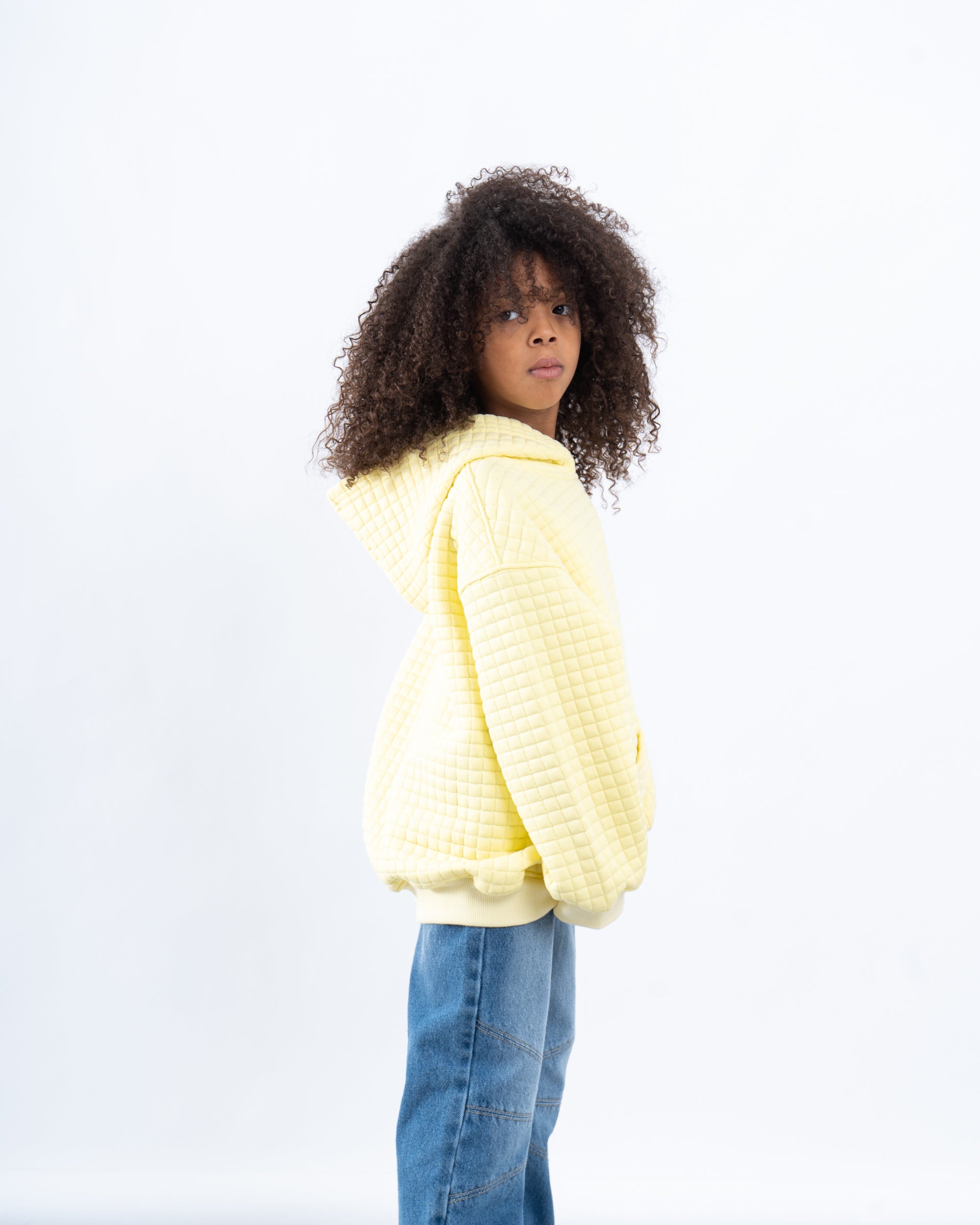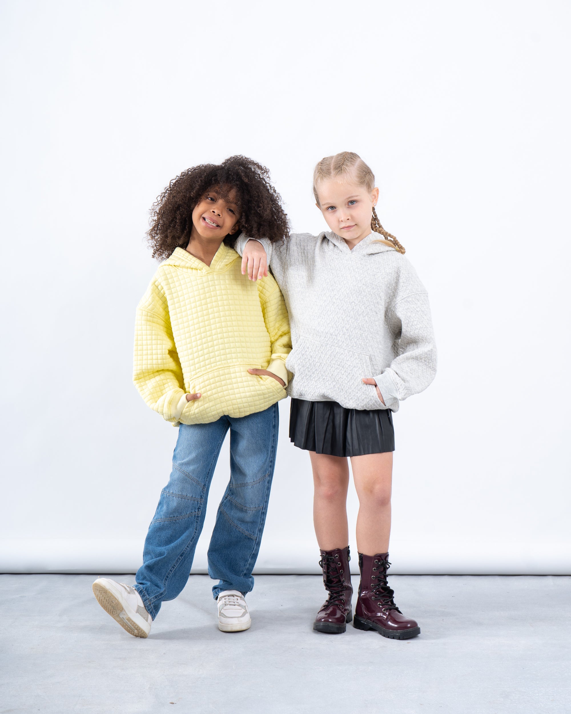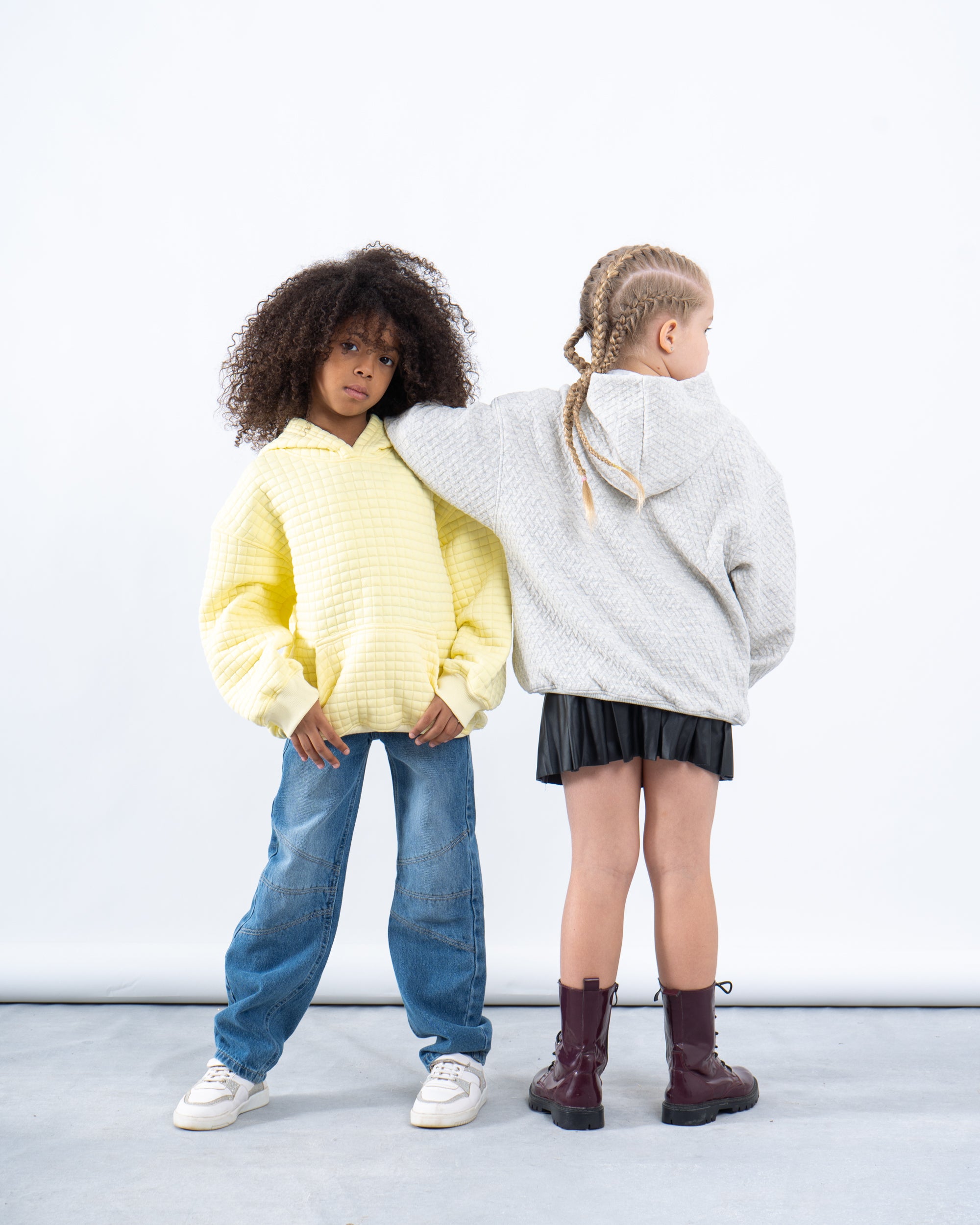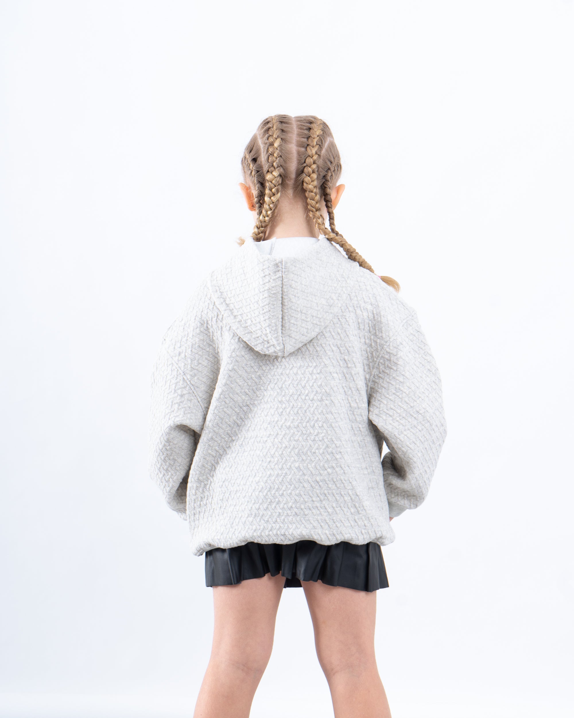 This oversized hoodie features a textured waffle knit design that blends style and comfort effortlessly. Designed with a roomy fit, a front pocket, and a cozy hood, it’s perfect for layering on cooler days. The soft fabric ensures warmth without compromising on breathability.