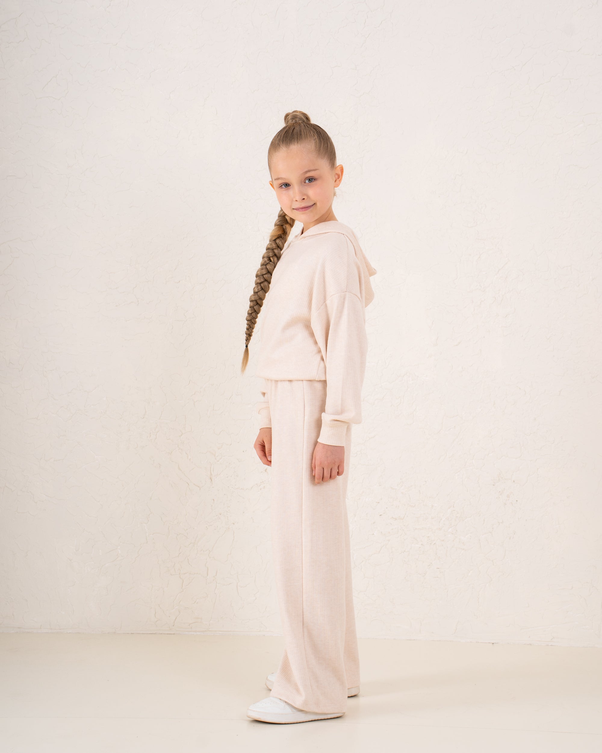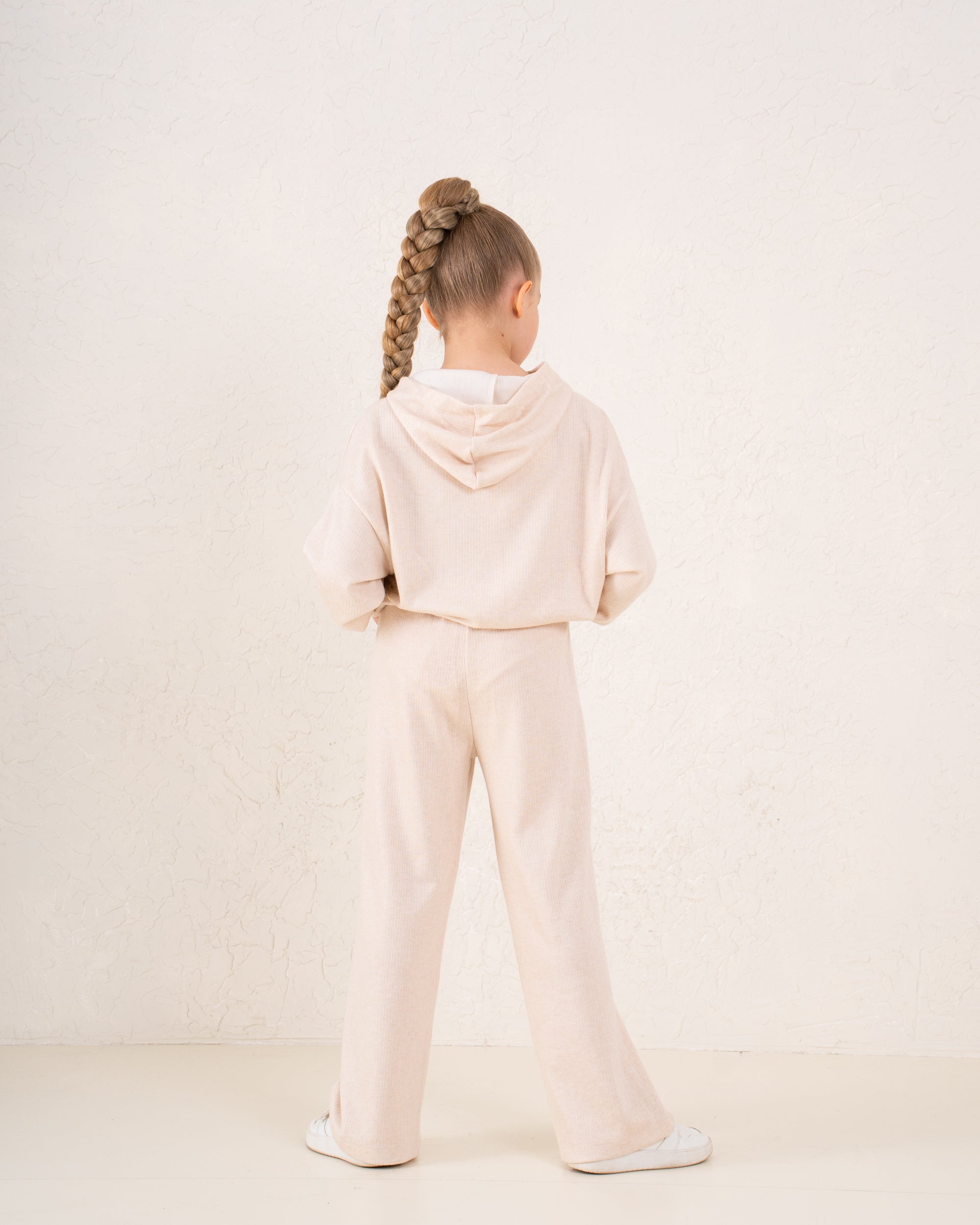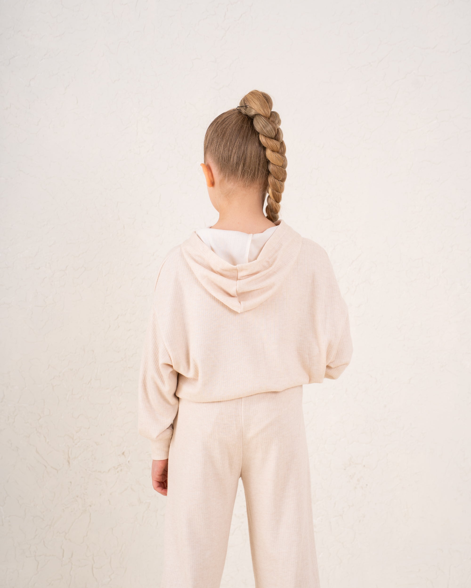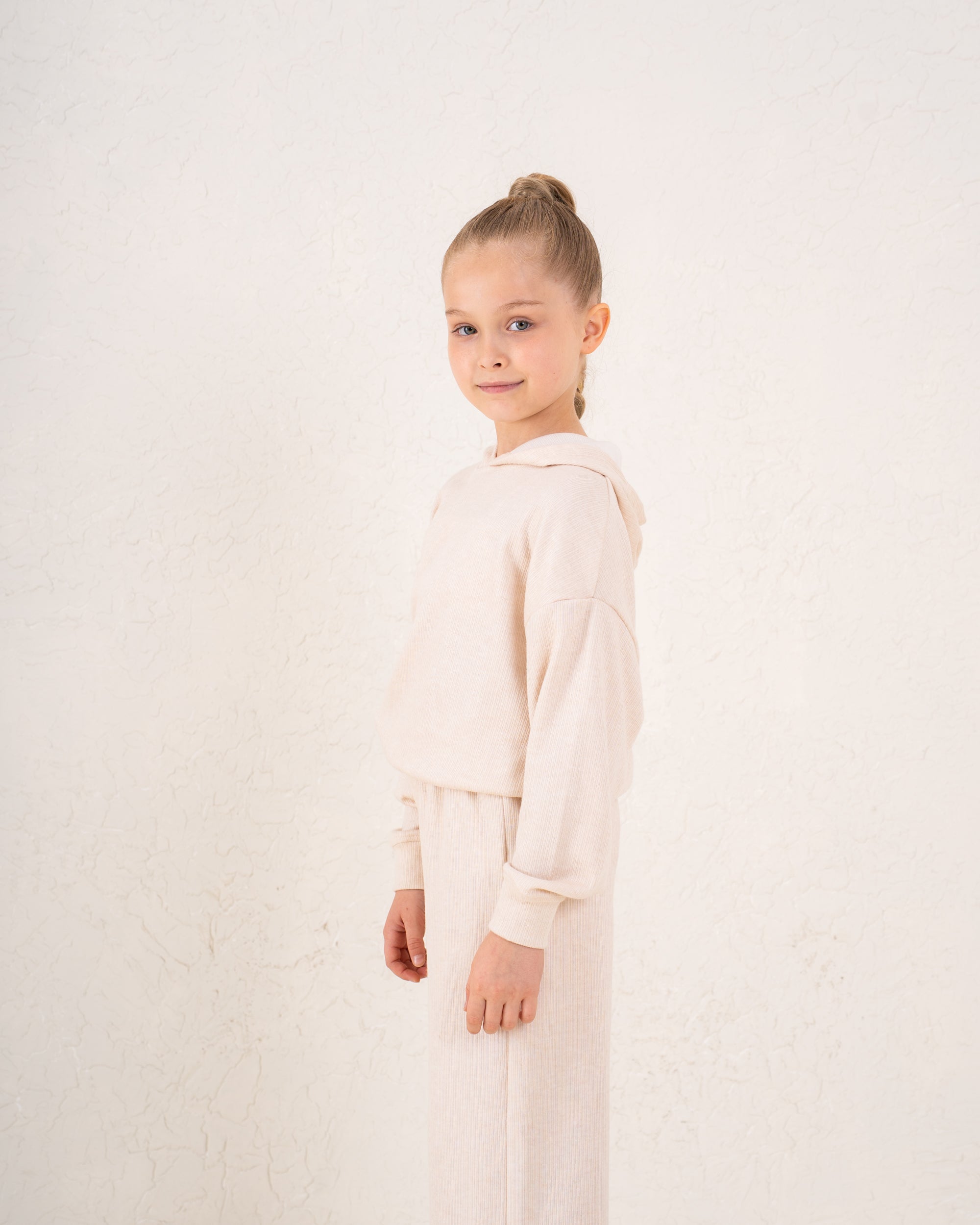 A relaxed hooded top made from soft fabric, designed for cozy everyday wear. With dropped shoulders and a loose silhouette, it’s perfect for effortless matching moments.