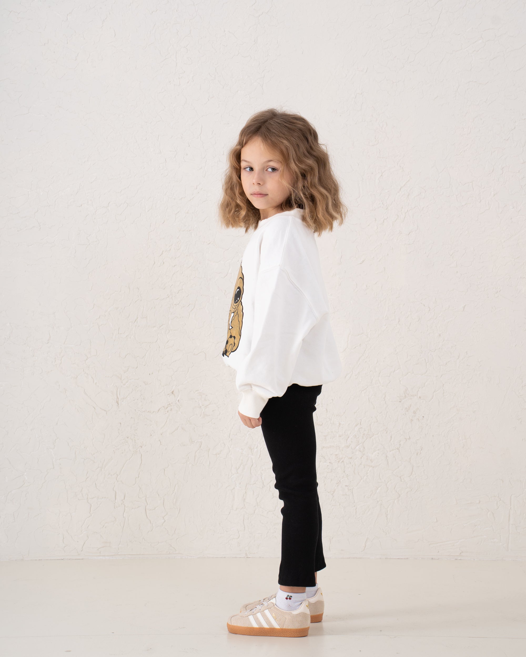 Soft everyday ribbed leggings designed for comfort and easy styling. A stretchy fit that works with sweatshirts, hoodies, tops, and coats – perfect for casual days and school looks.