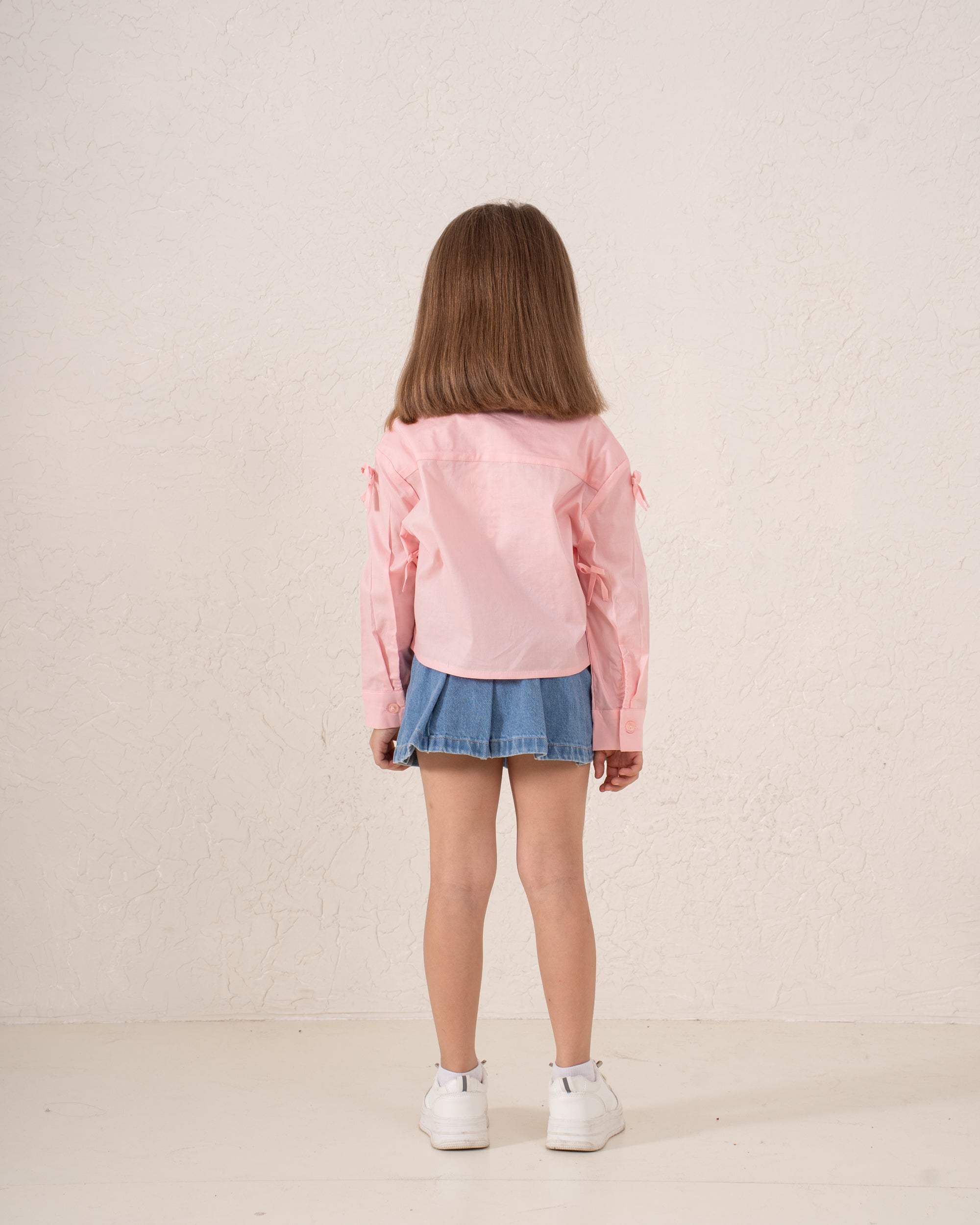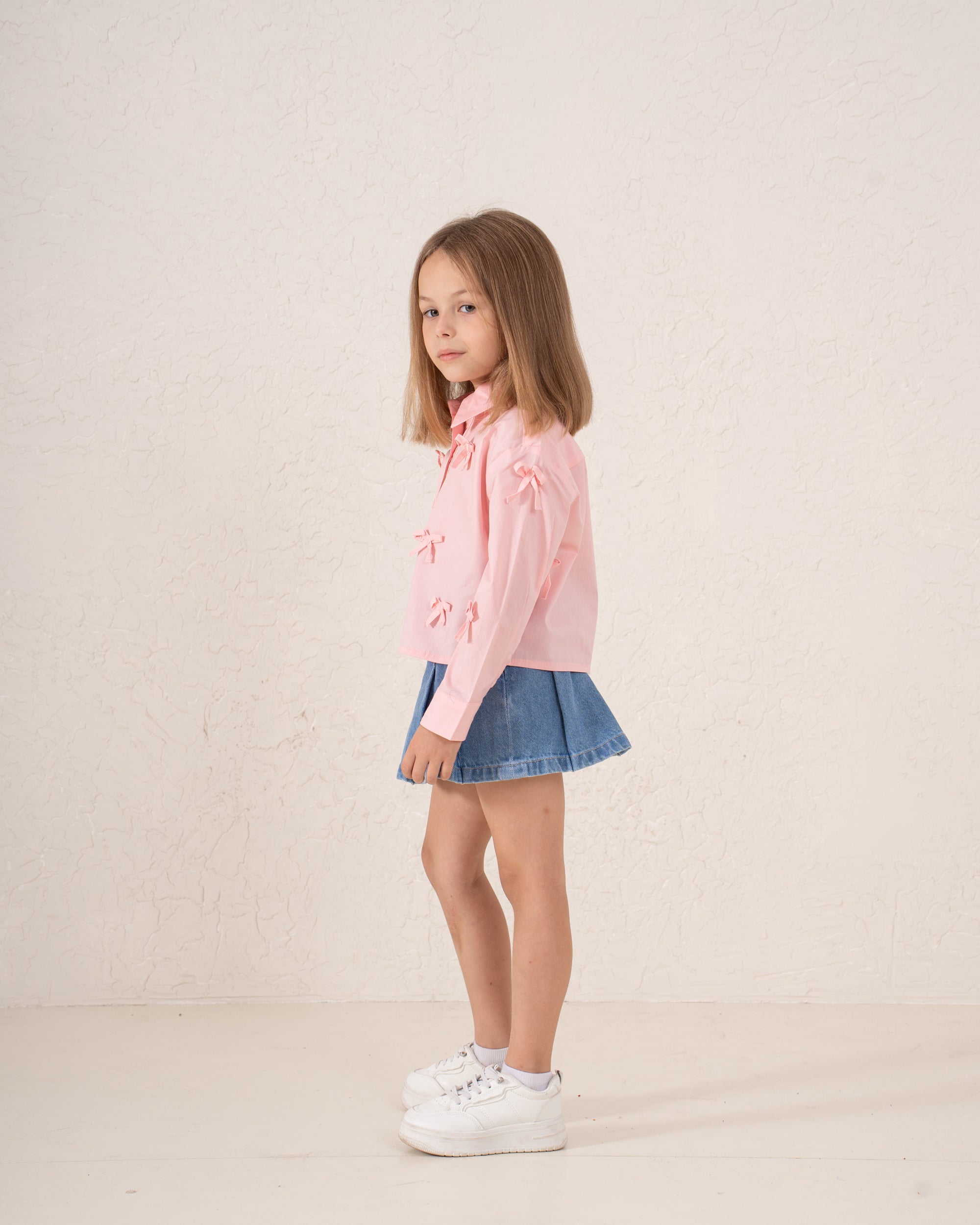 A playful twist on a classic shirt, designed with delicate ribbon appliqués for a charming, feminine touch. Cut in a relaxed silhouette with a crisp collar and button front, it’s perfect for stylish outings, birthdays, or layered winter looks.