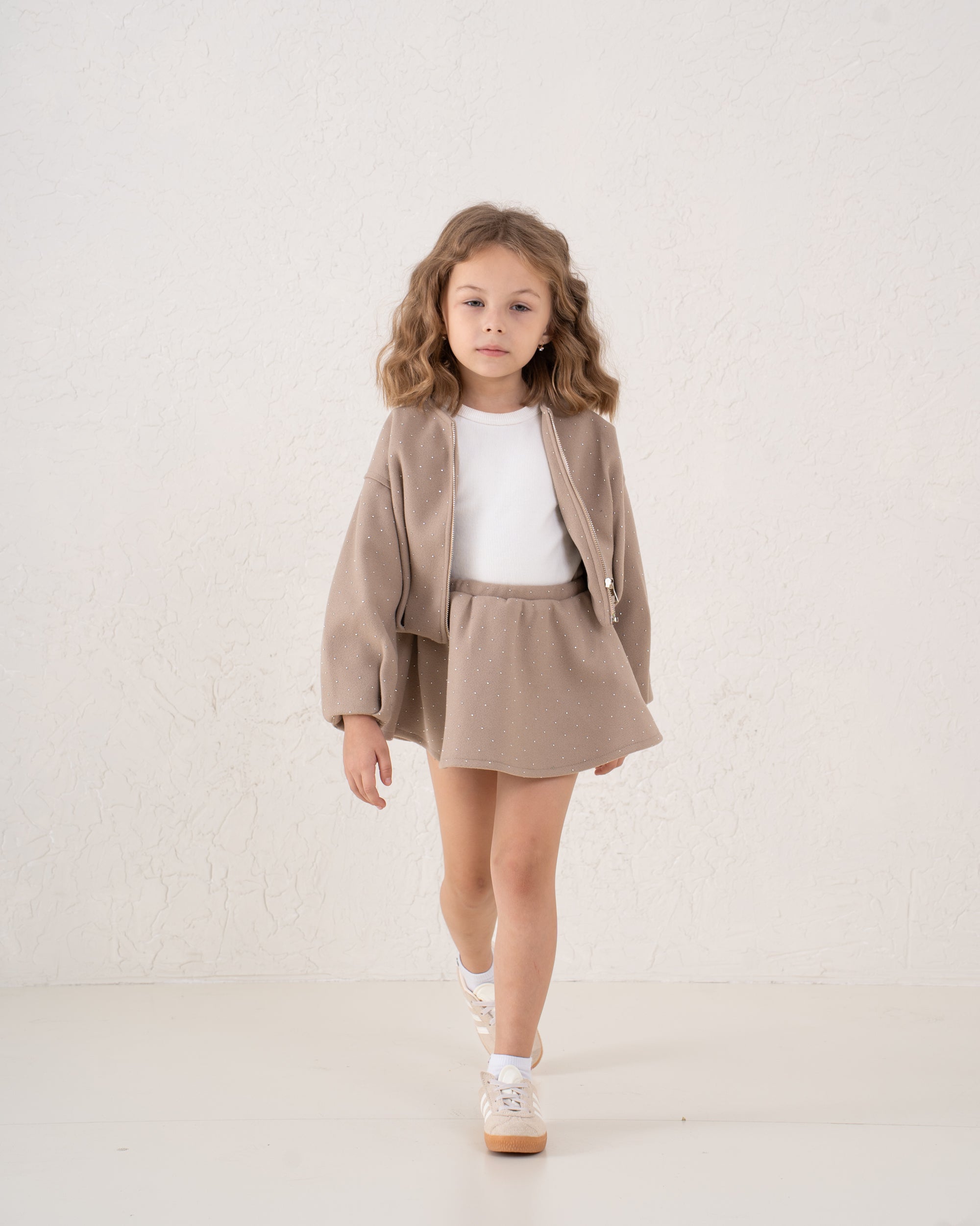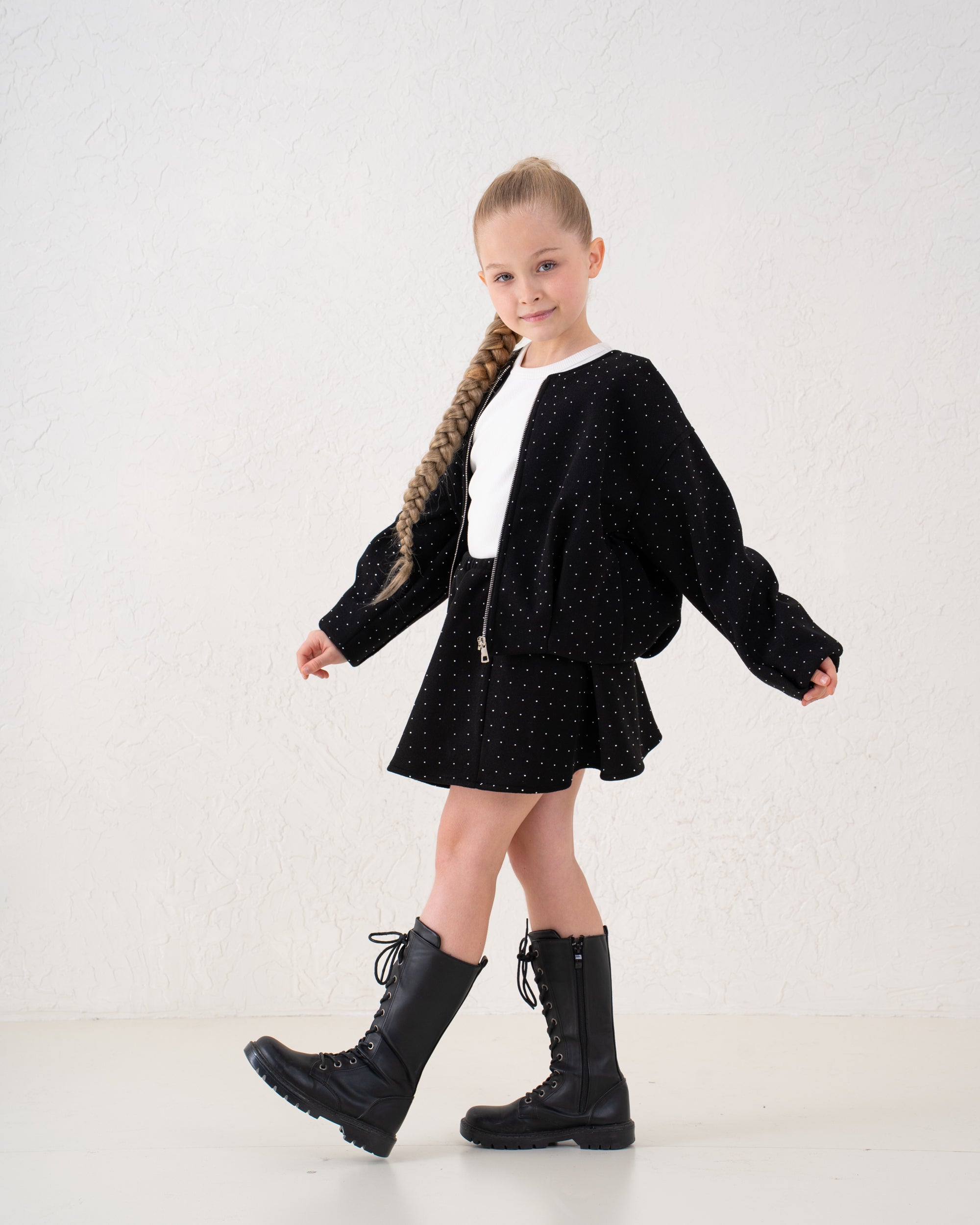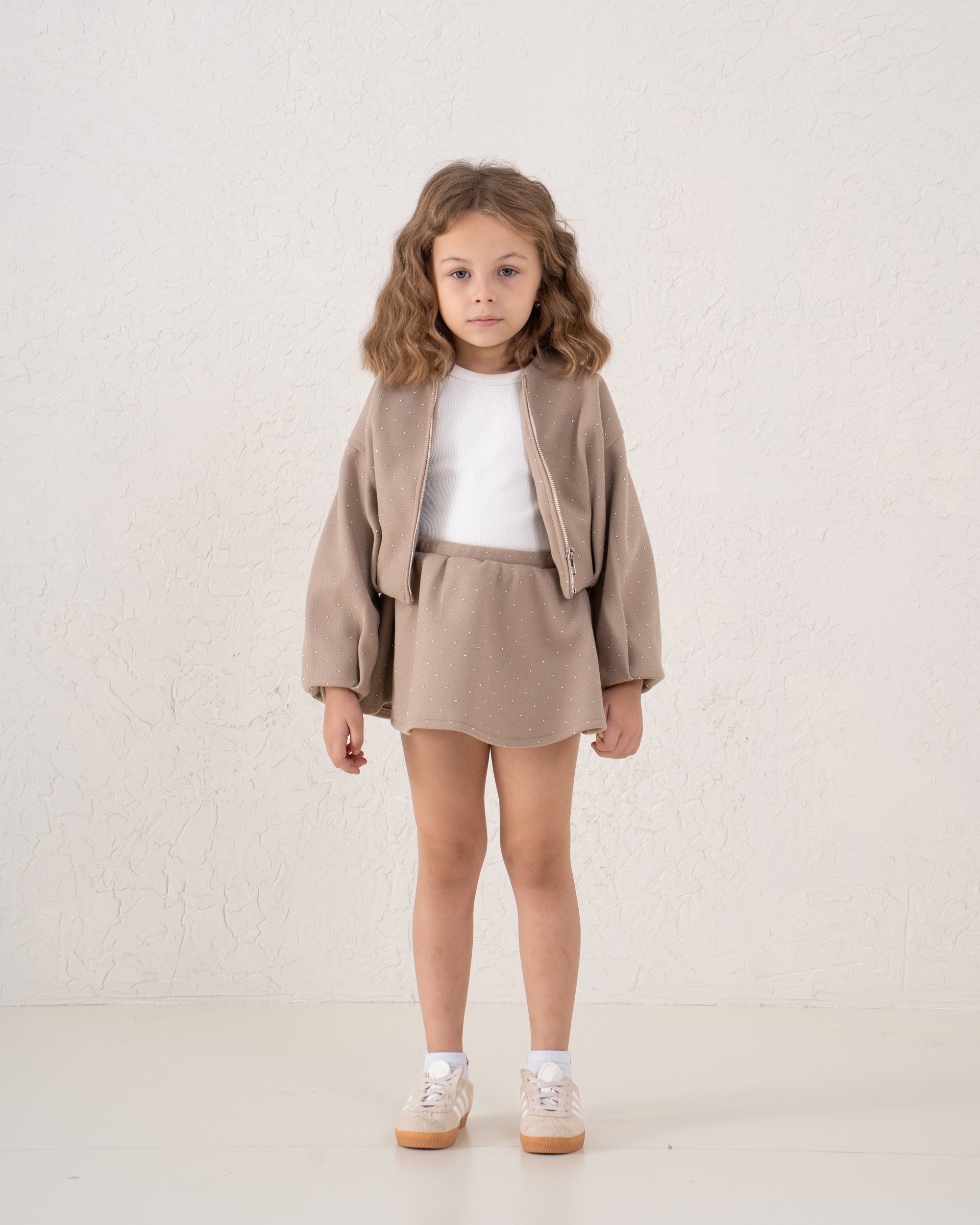 A chic cropped jacket adorned with subtle sparkling embellishments for a refined, elegant shine. Designed with a clean round neckline and relaxed sleeves, perfect for dressing up any outfit or twinning in style.