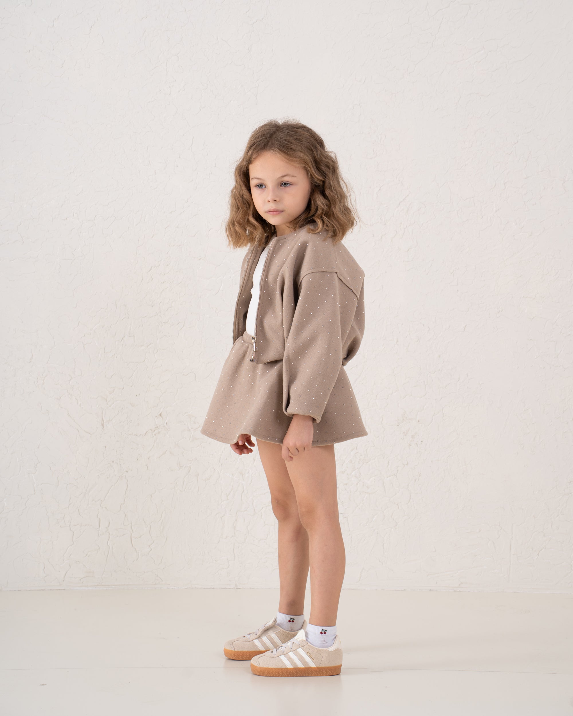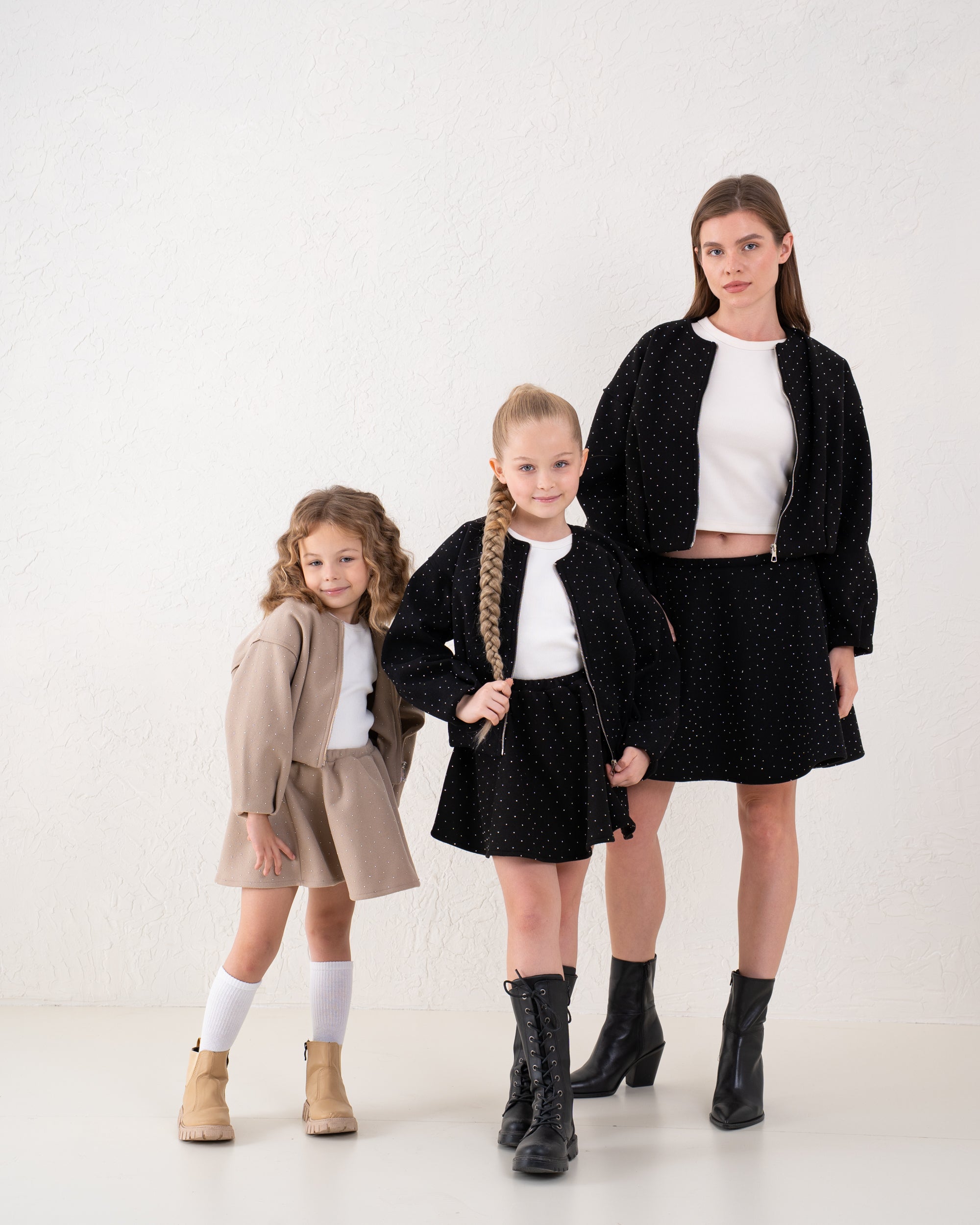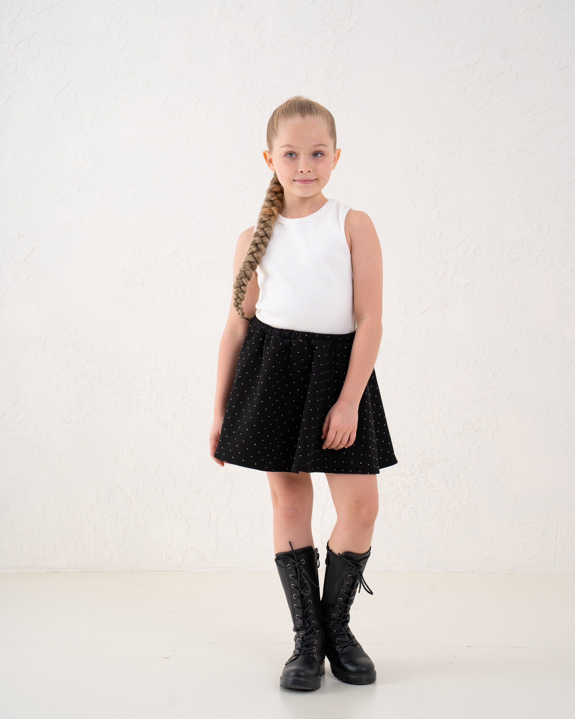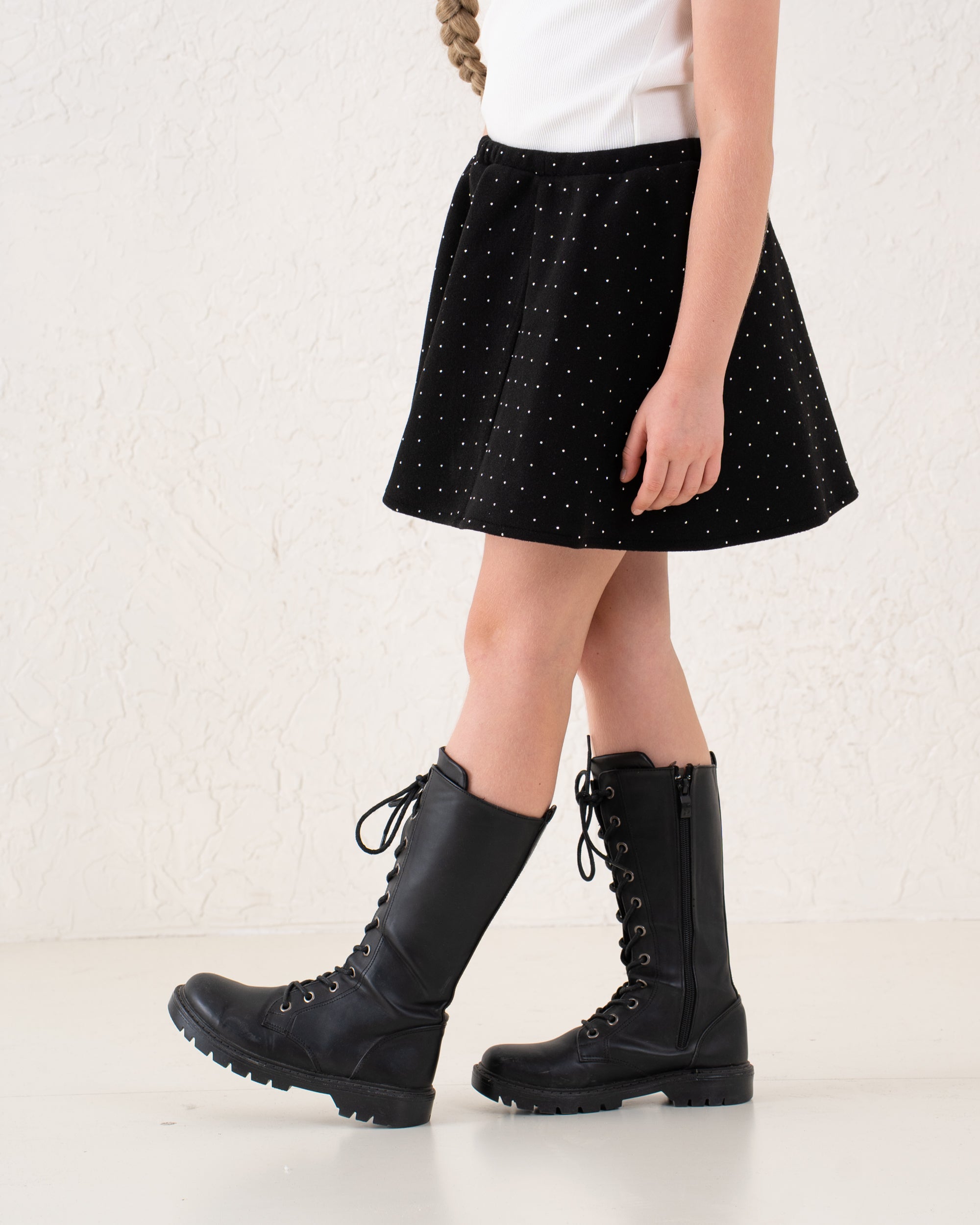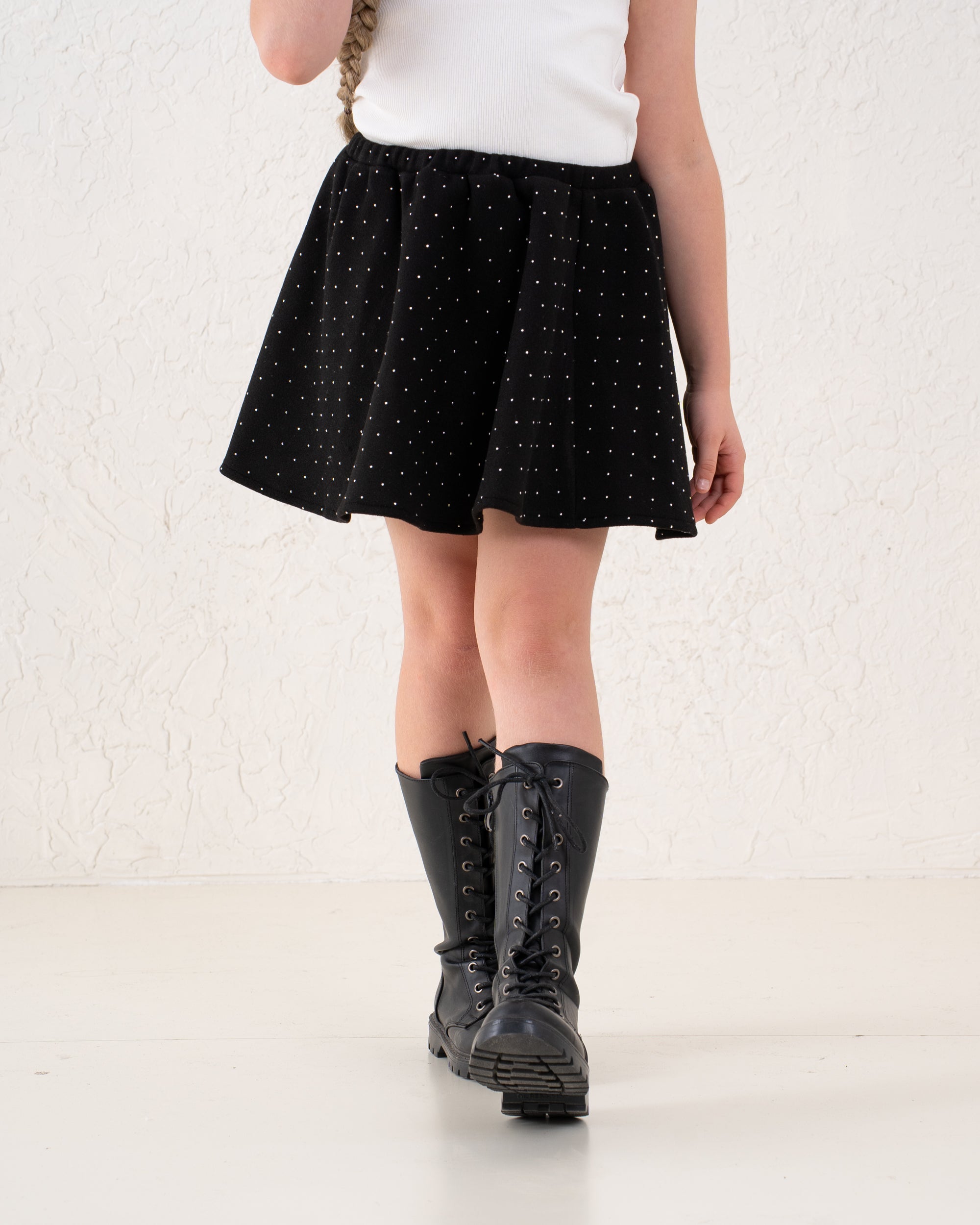 A classic A-line mini skirt with soft sparkle detailing for a touch of glamour. Flattering and easy to style, it’s the perfect piece for festive looks or coordinated outfits.