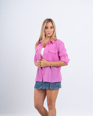 A lightweight essential with endless styling possibilities. This oversized linen shirt features a relaxed fit, classic collar, and utility pockets—perfect for layering over tanks, tees, or dresses for a casual, laid-back look.