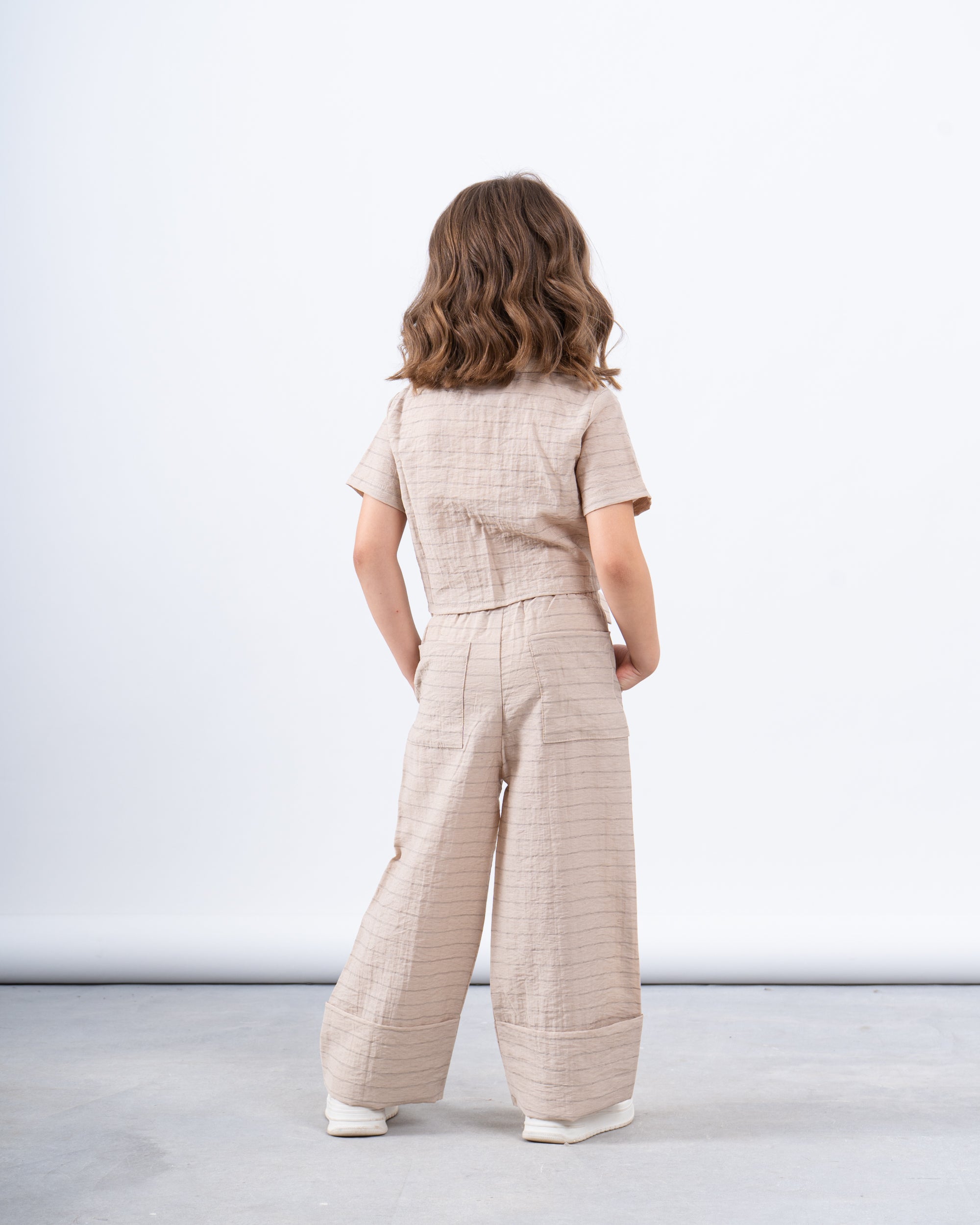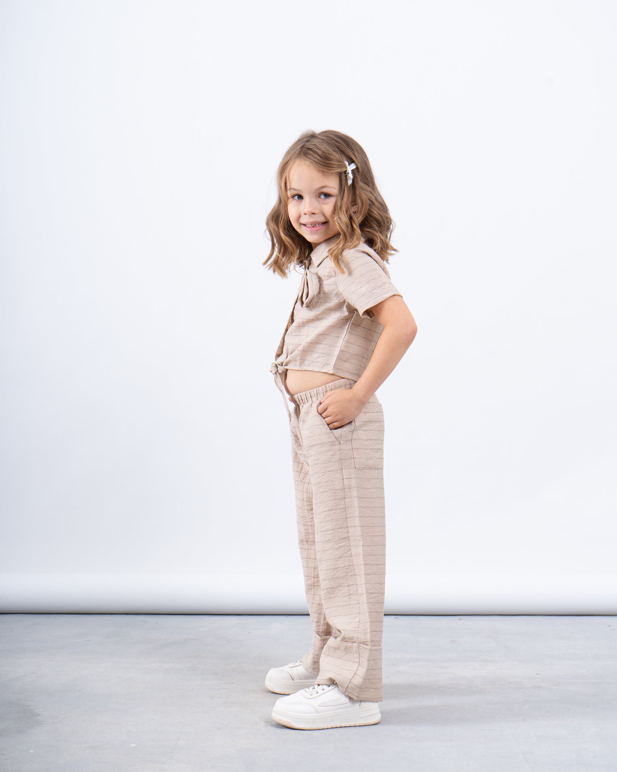 A laid-back shirt with subtle stripes and a front tie detail — designed for warm days and casual-cool looks.