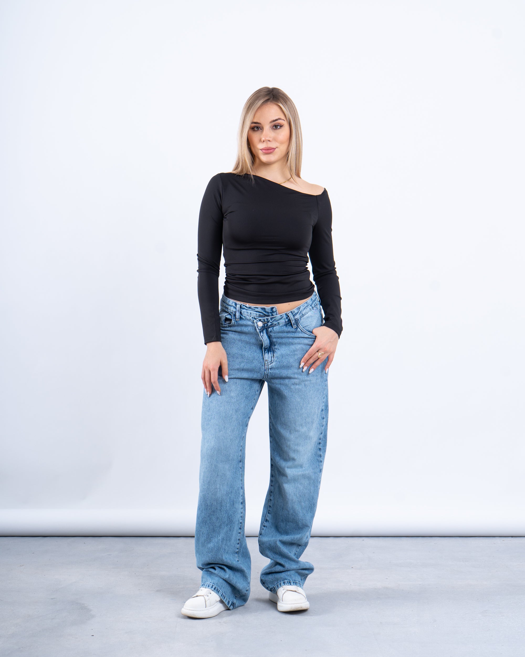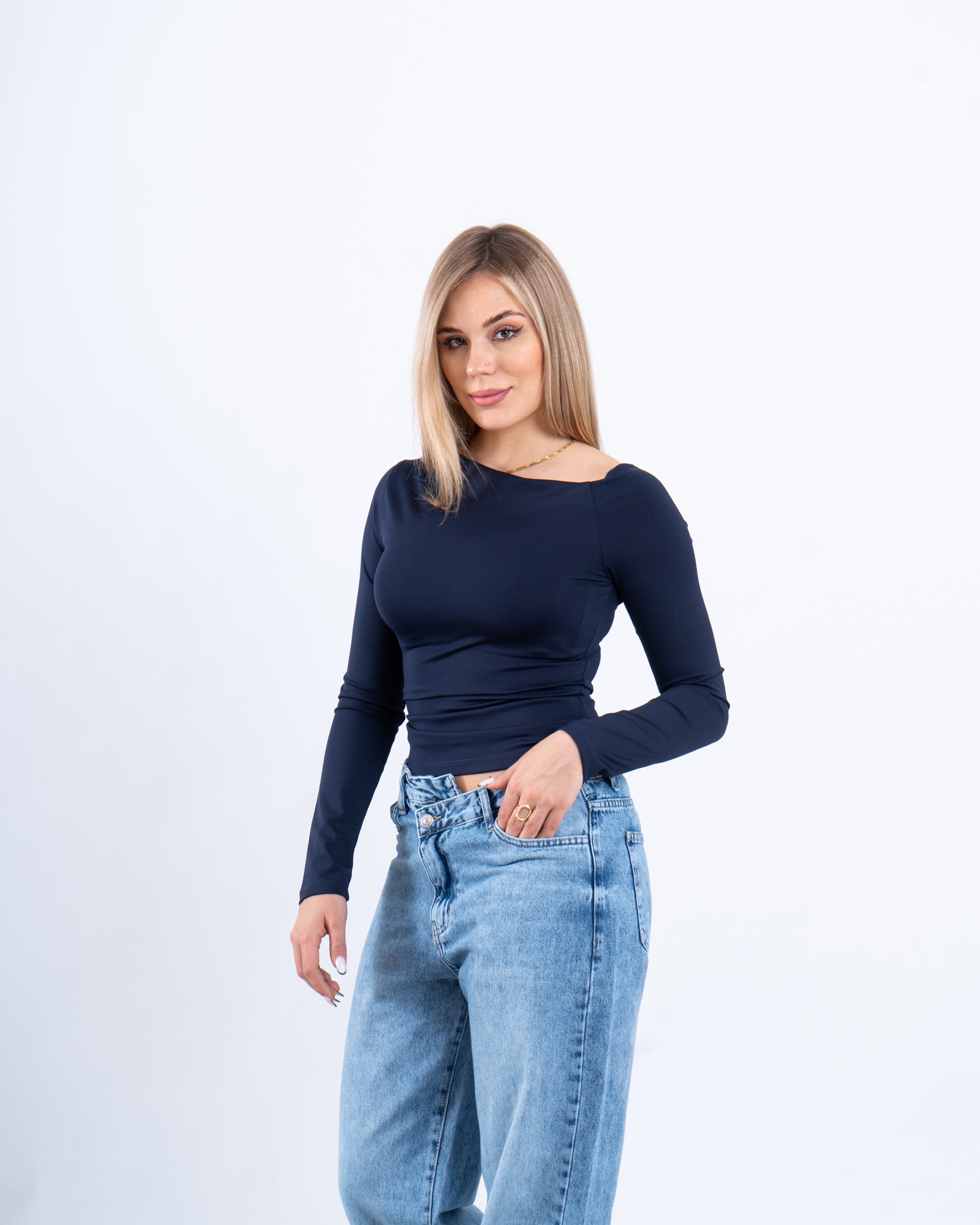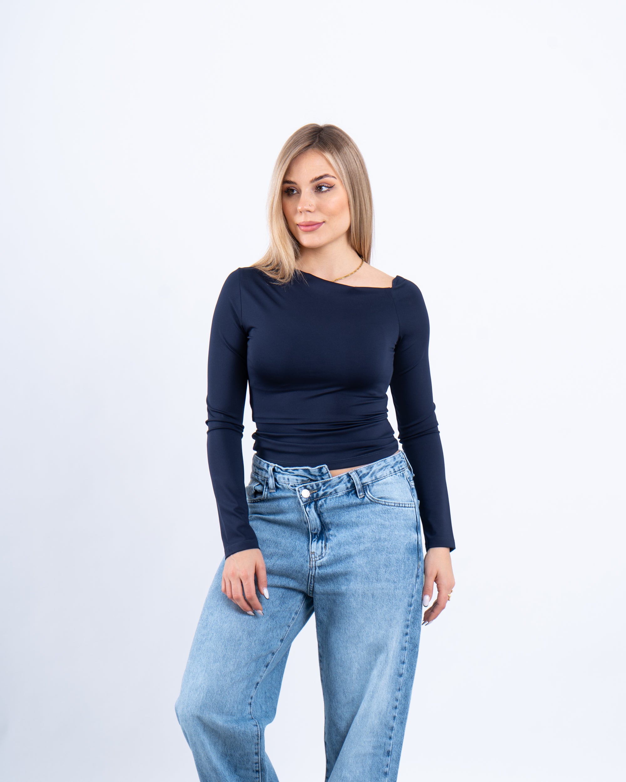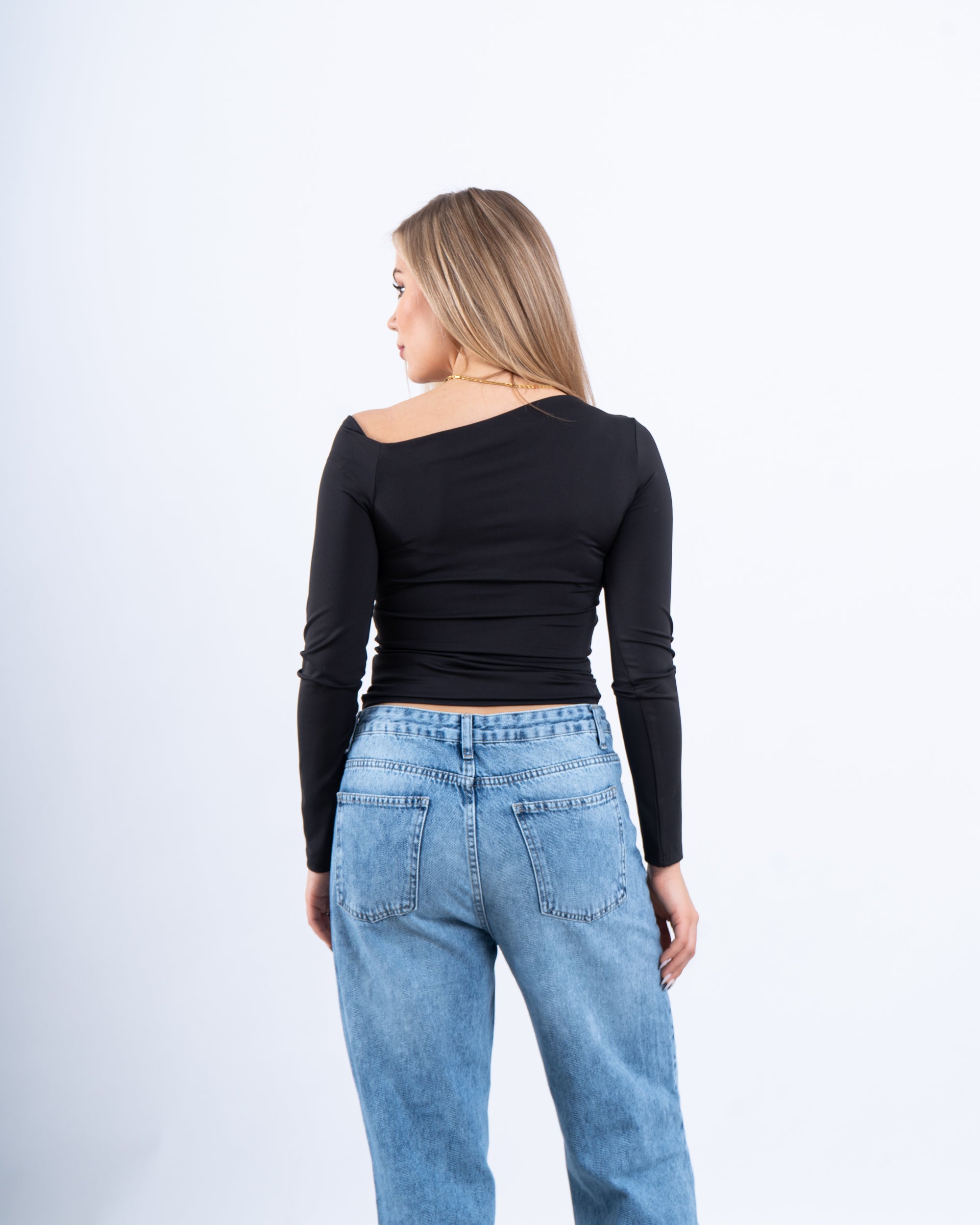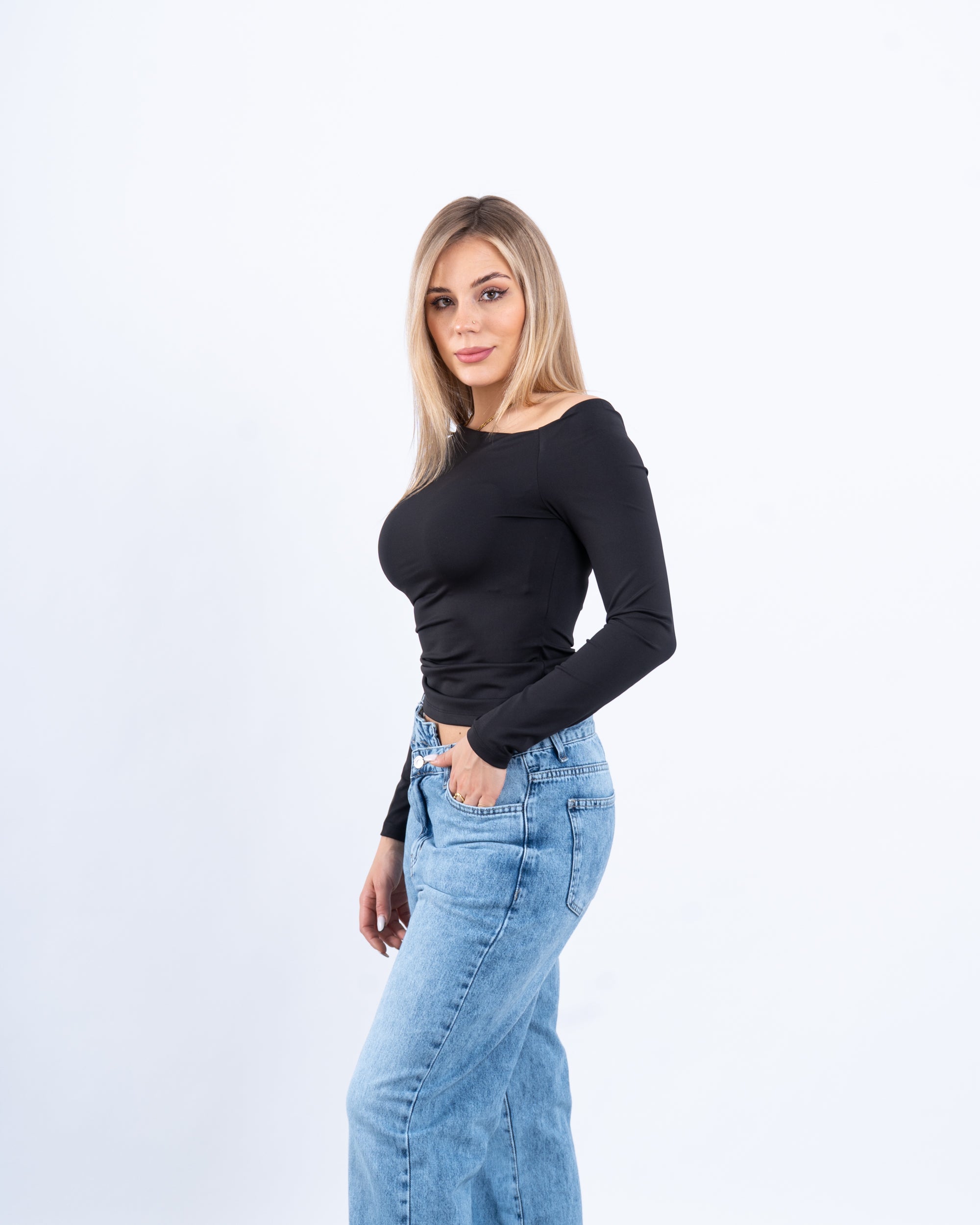 Long-sleeve top with an off-shoulder neckline and body-hugging fit. Made from a soft stretch fabric that moves with you while keeping its shape. A sleek essential for effortless layering or wearing solo.