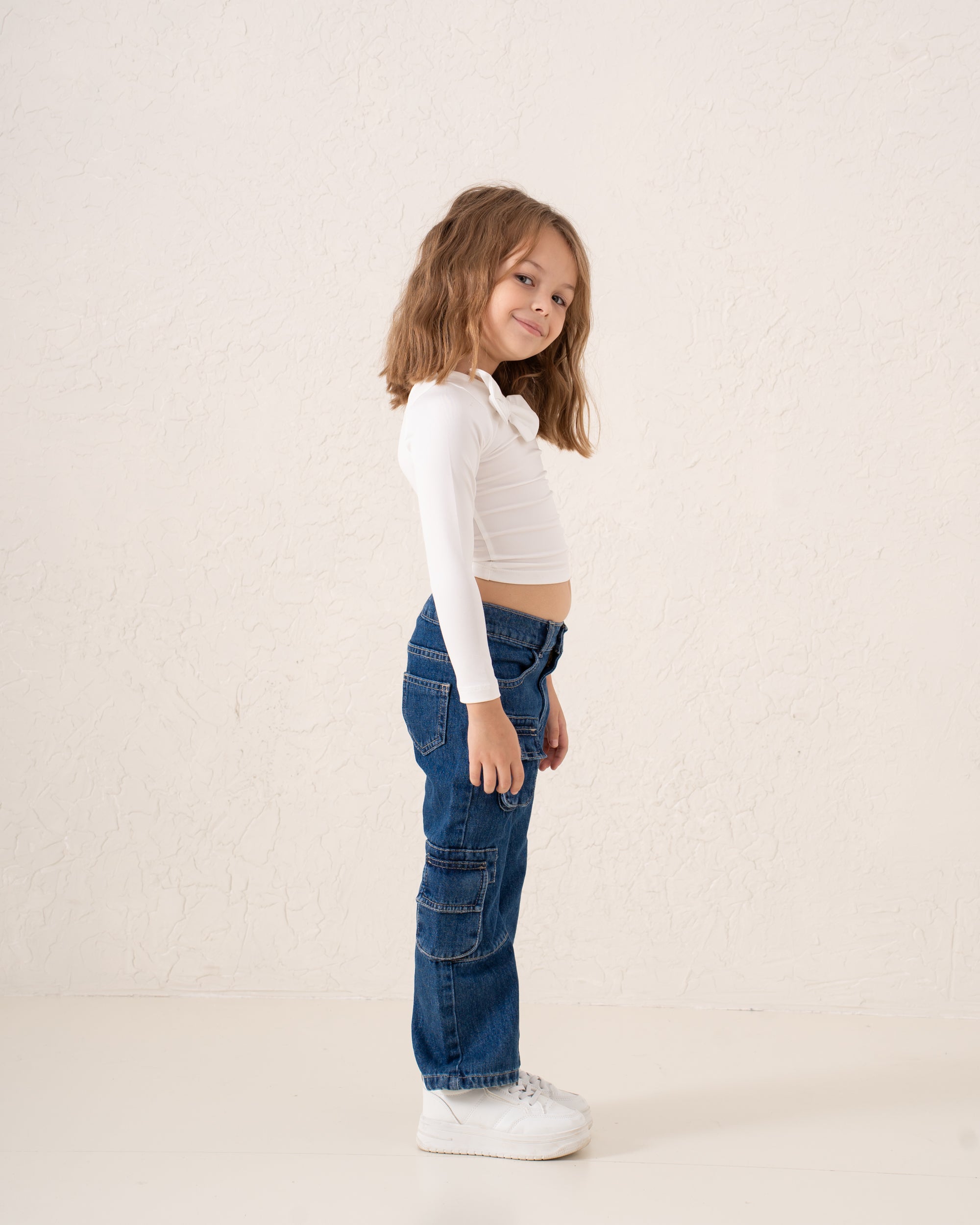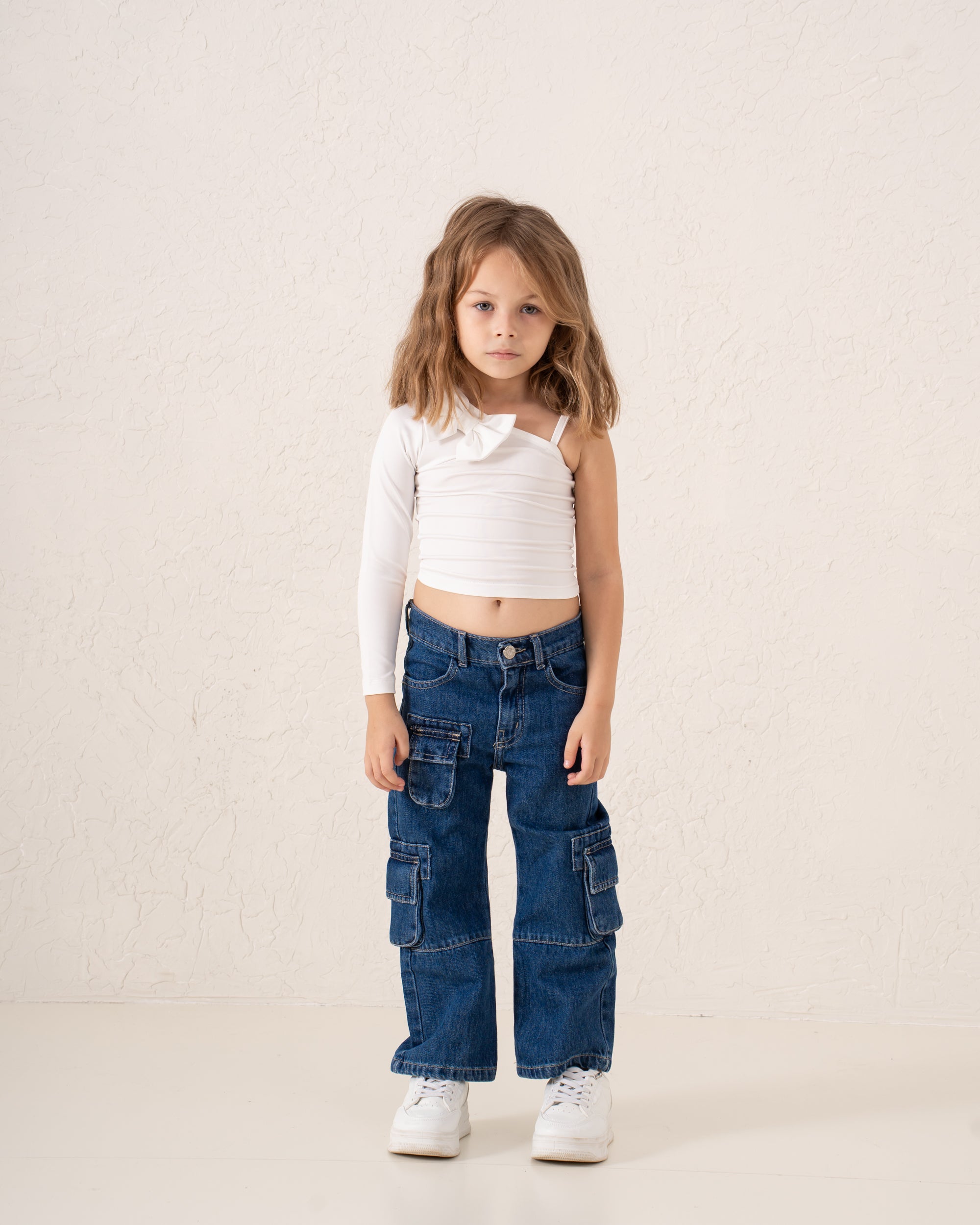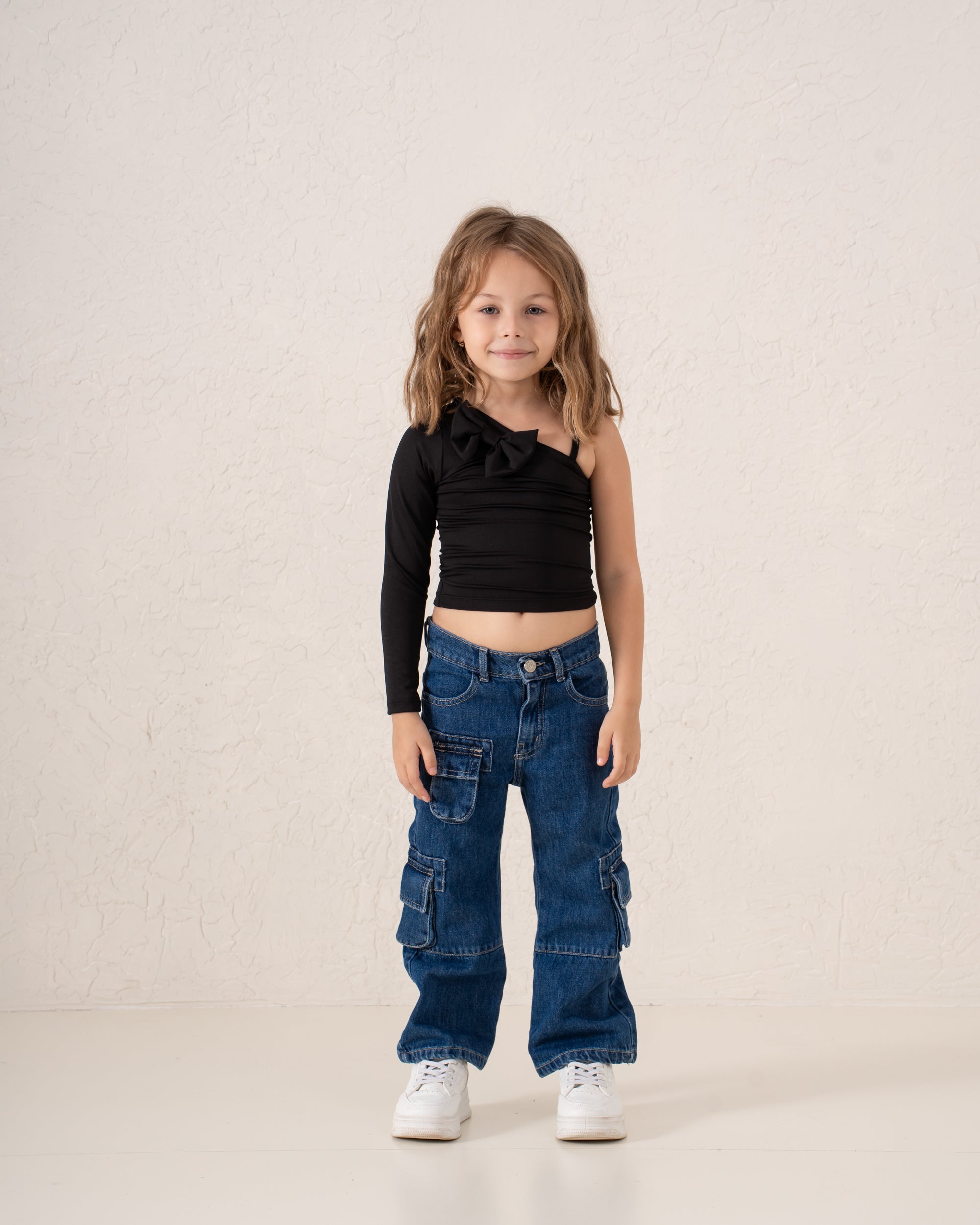 A playful, fashion-forward piece designed to stand out. This asymmetric top features a single long sleeve balanced with a statement bow on one shoulder. Its sleek, fitted cut flatters while staying comfortable for active little trendsetters — perfect for seasonal layering or worn solo.