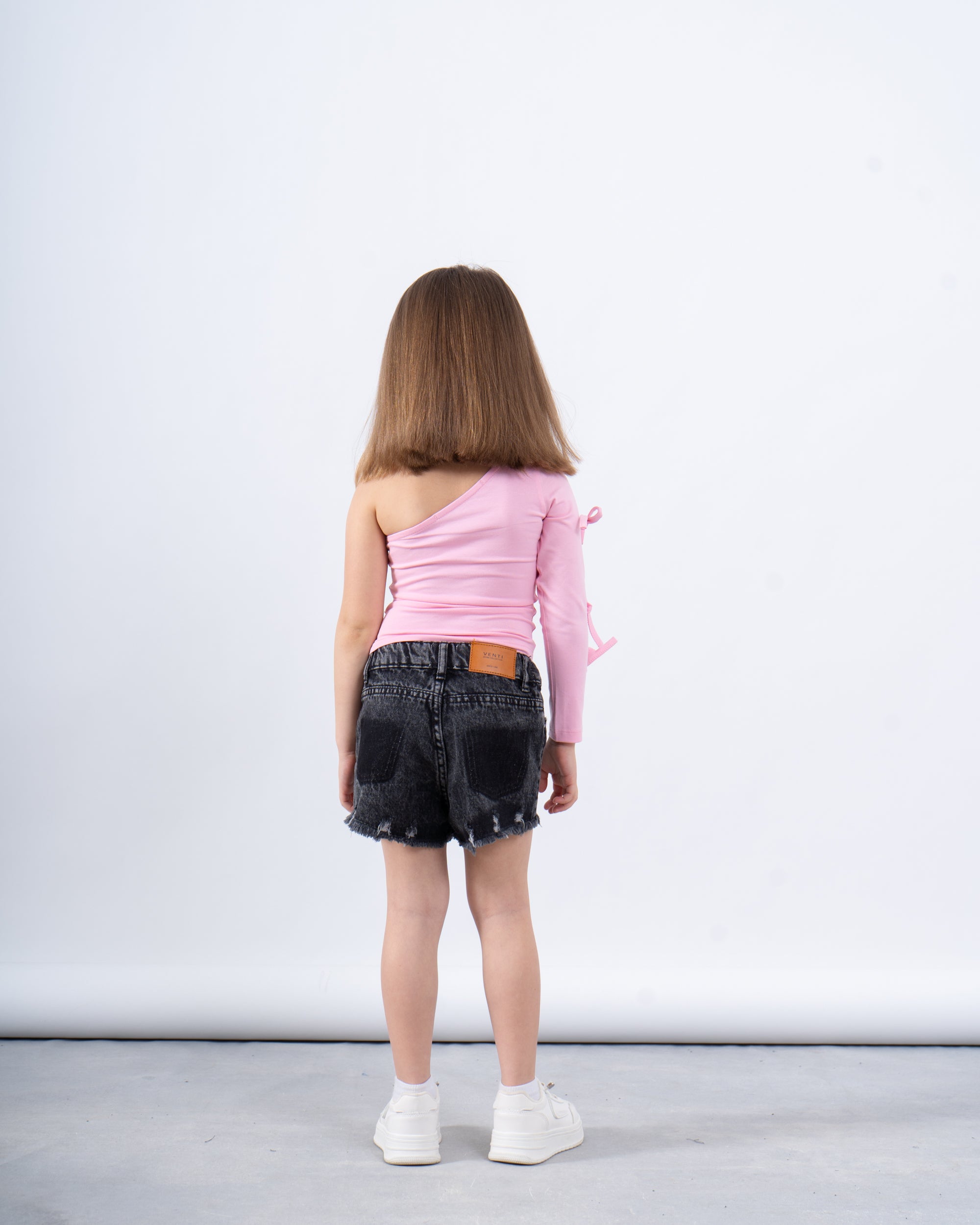 A statement top with a playful twist. Designed with a one-shoulder silhouette and bow tie details on the sleeve, it adds personality to any outfit. Perfect for dressing up denim shorts or layering under a jacket.