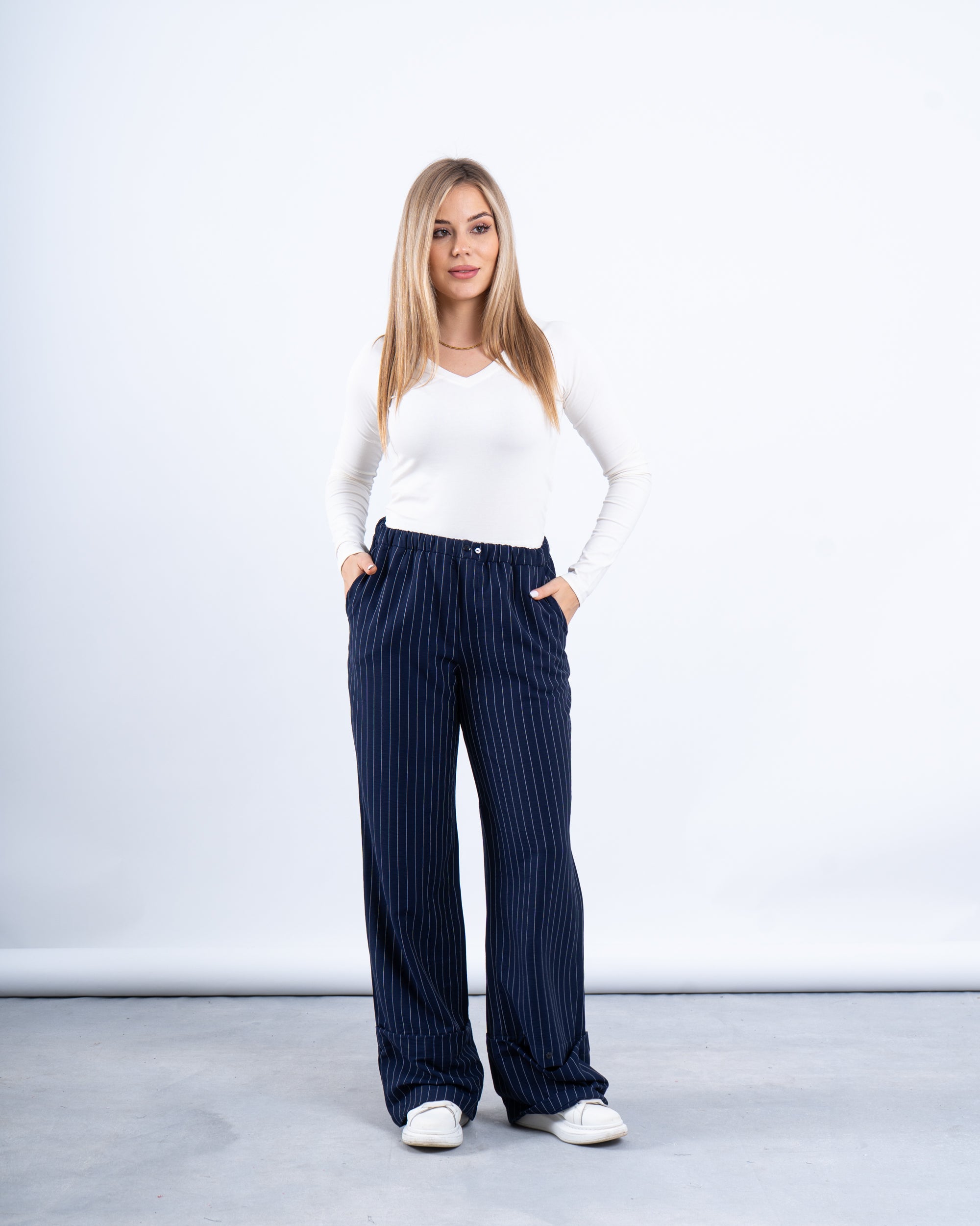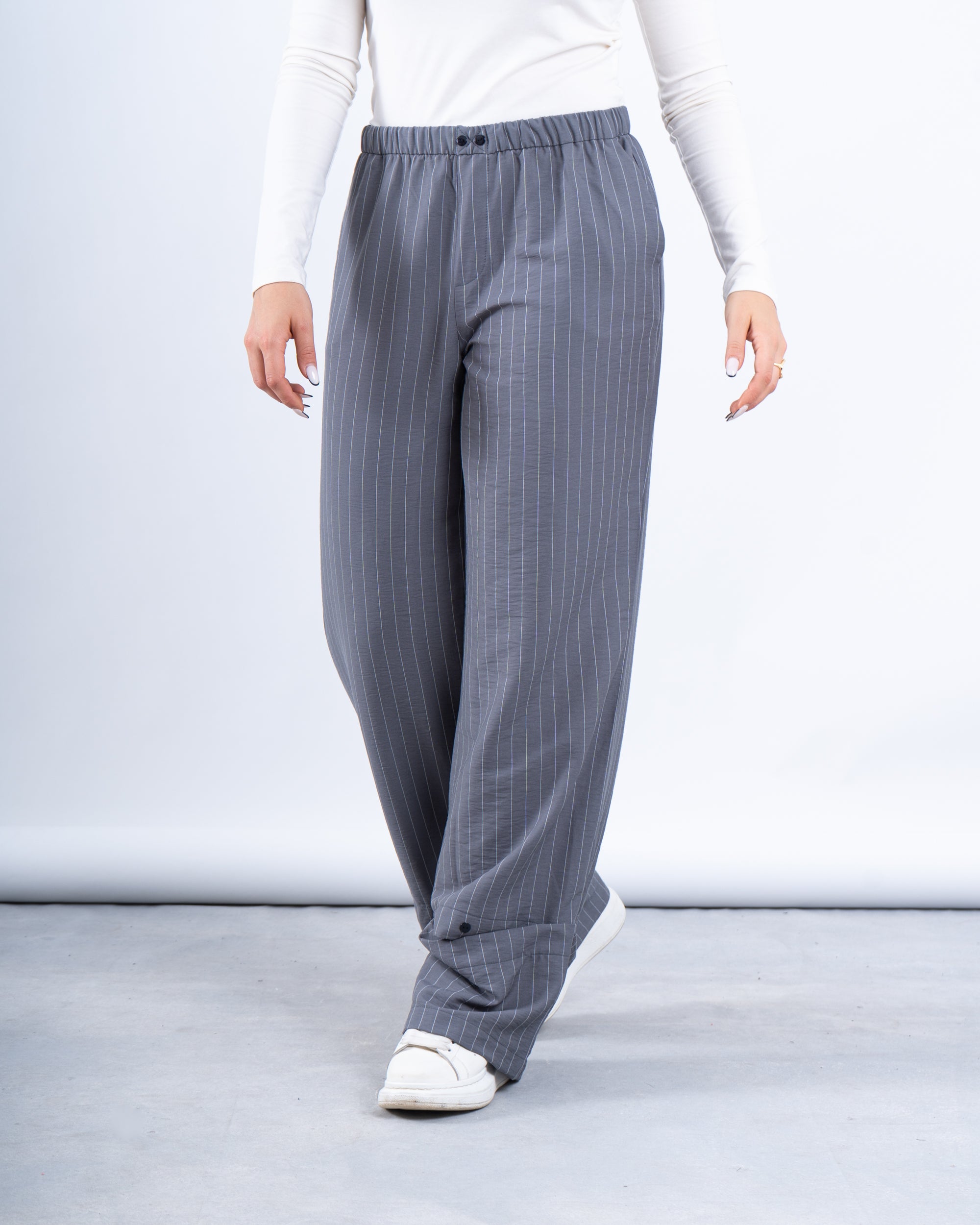 Effortlessly sleek and timeless, these pinstripe wide-leg pants bring a bold yet sophisticated touch to any wardrobe. Designed with a high-waisted fit and flowy silhouette, they elongate the legs while offering all-day comfort. The pinstripe pattern adds a refined, tailored aesthetic, making them perfect for both casual and dressy occasions.