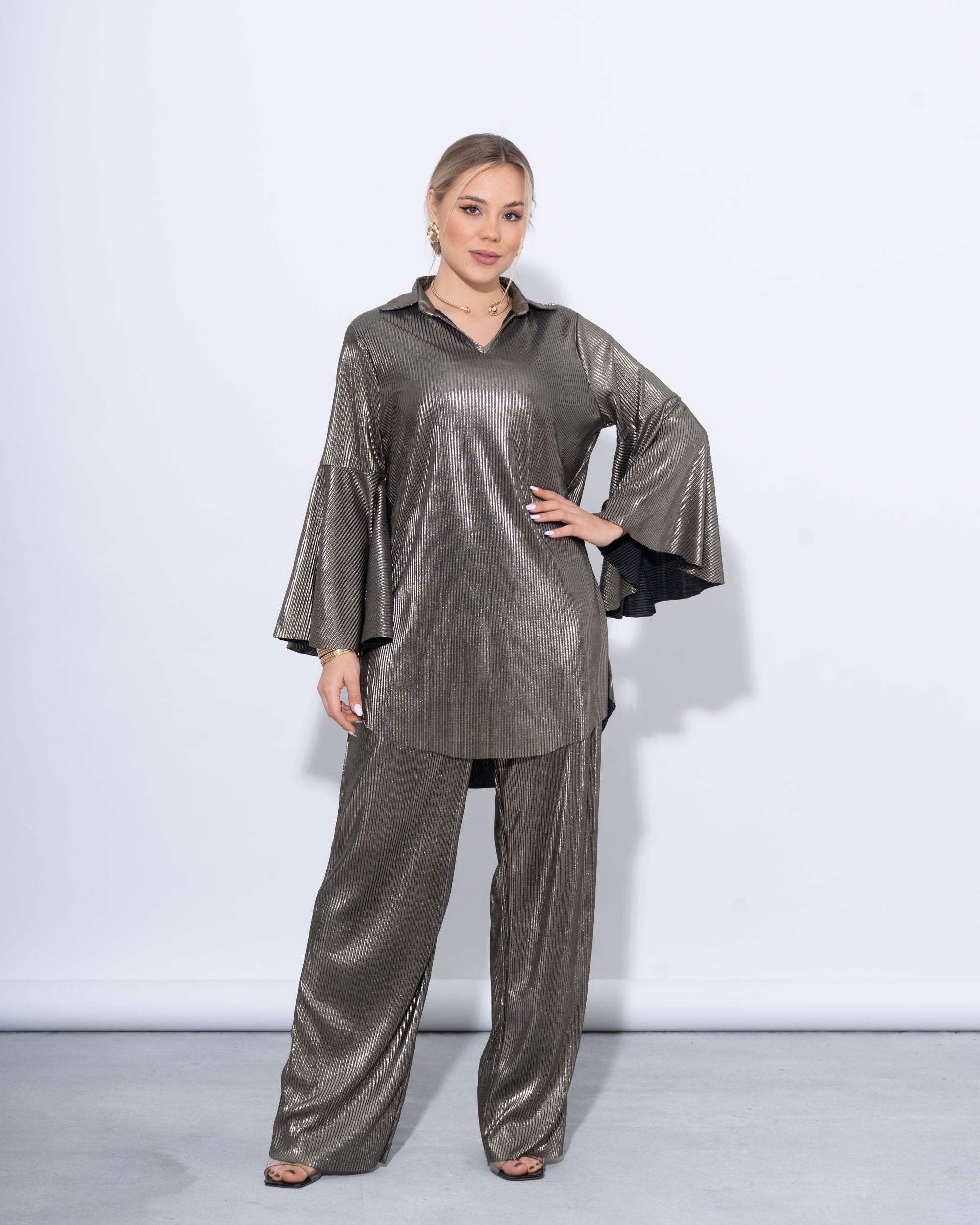 Elevate your style with these metallic wide-leg pants. Featuring a relaxed fit and a fluid drape, these...