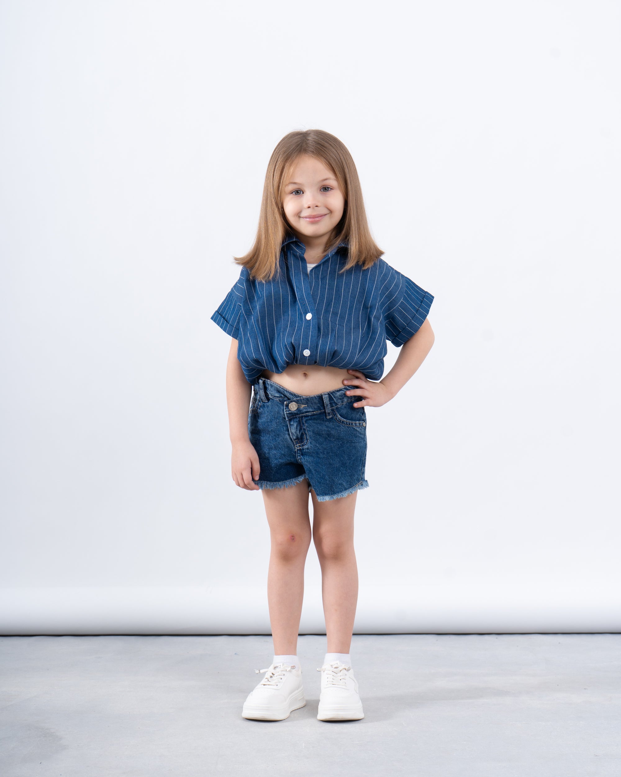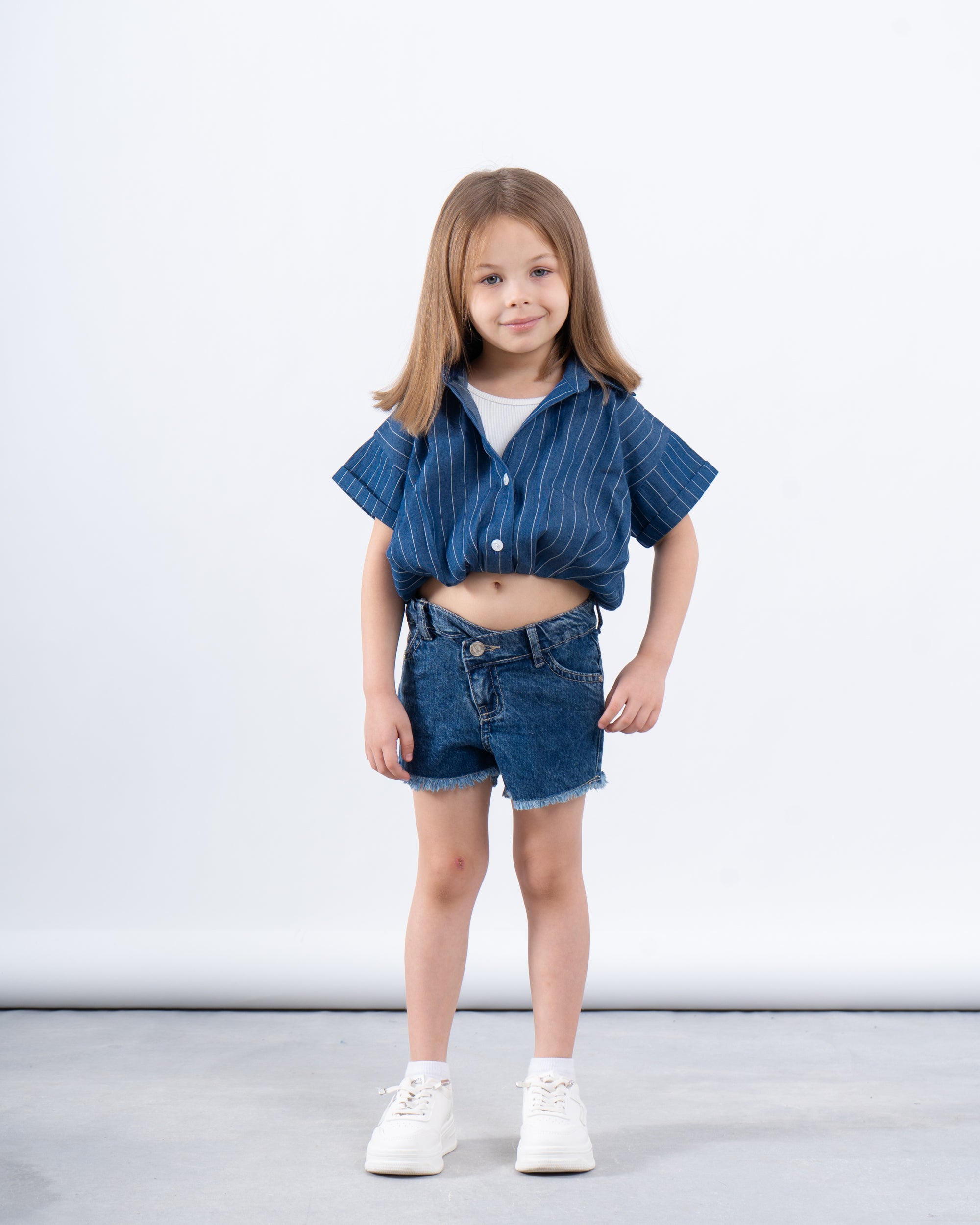 Boxy-fit short-sleeve shirt in striped cotton with subtle puff sleeves and a relaxed silhouette. Comes with a soft white tank top underneath for versatile styling. A fresh, playful set that’s perfect for warmer days.