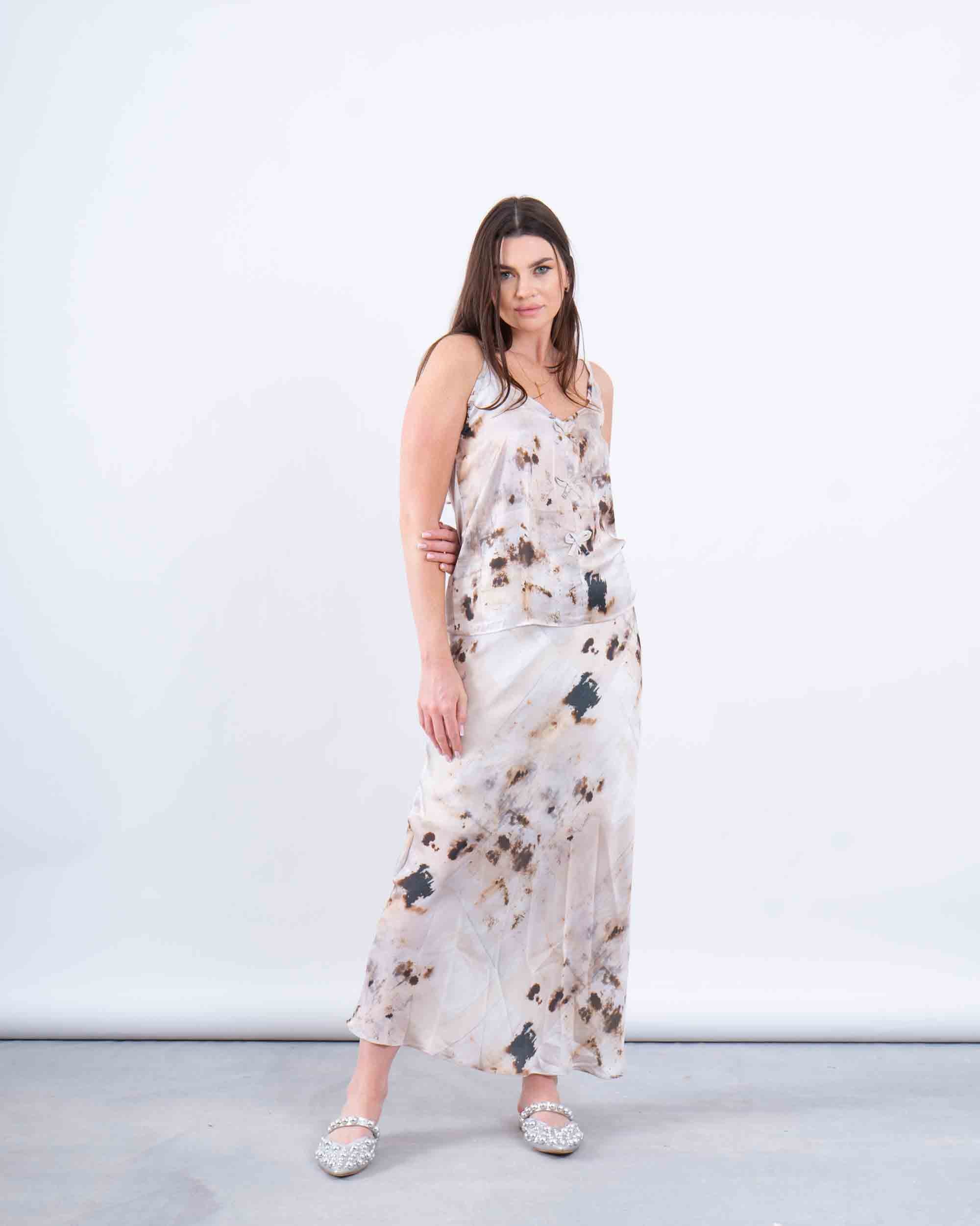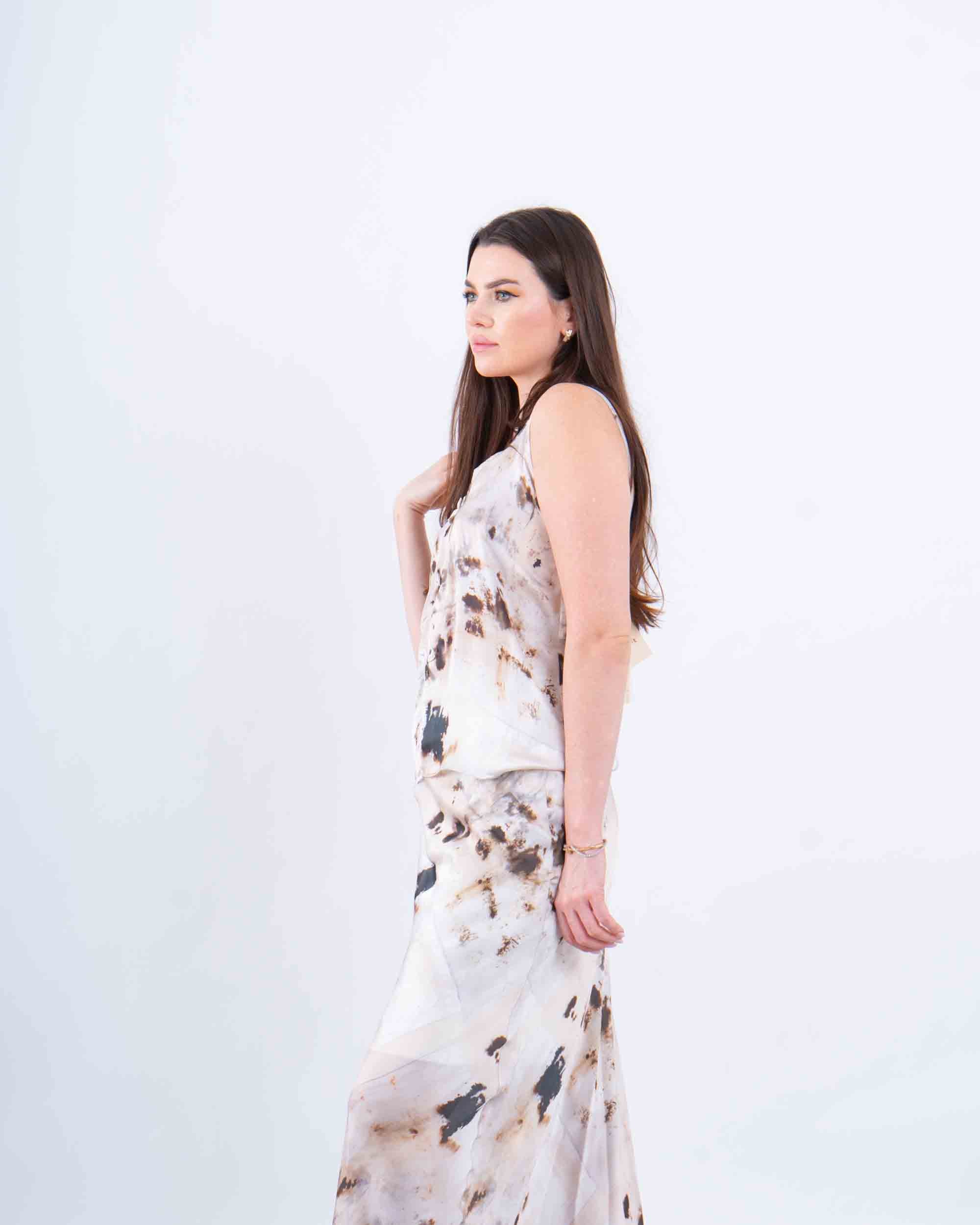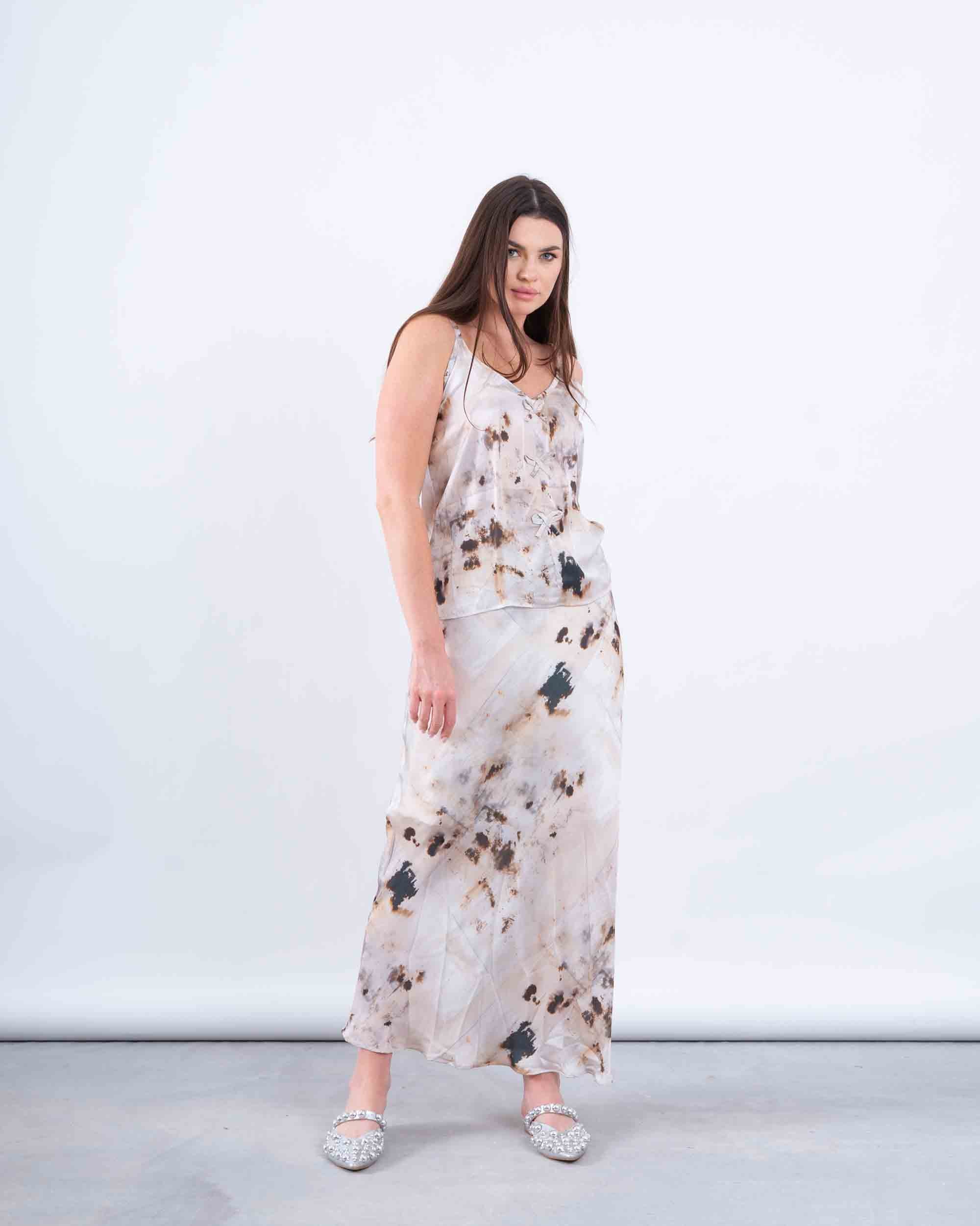 A dreamy satin cami with a soft, fluid drape and delicate bow details. With its subtle shine and flattering cut, this top adds effortless elegance to any look—style it solo or pair it with the matching skirt for a full set moment (sold separately).
