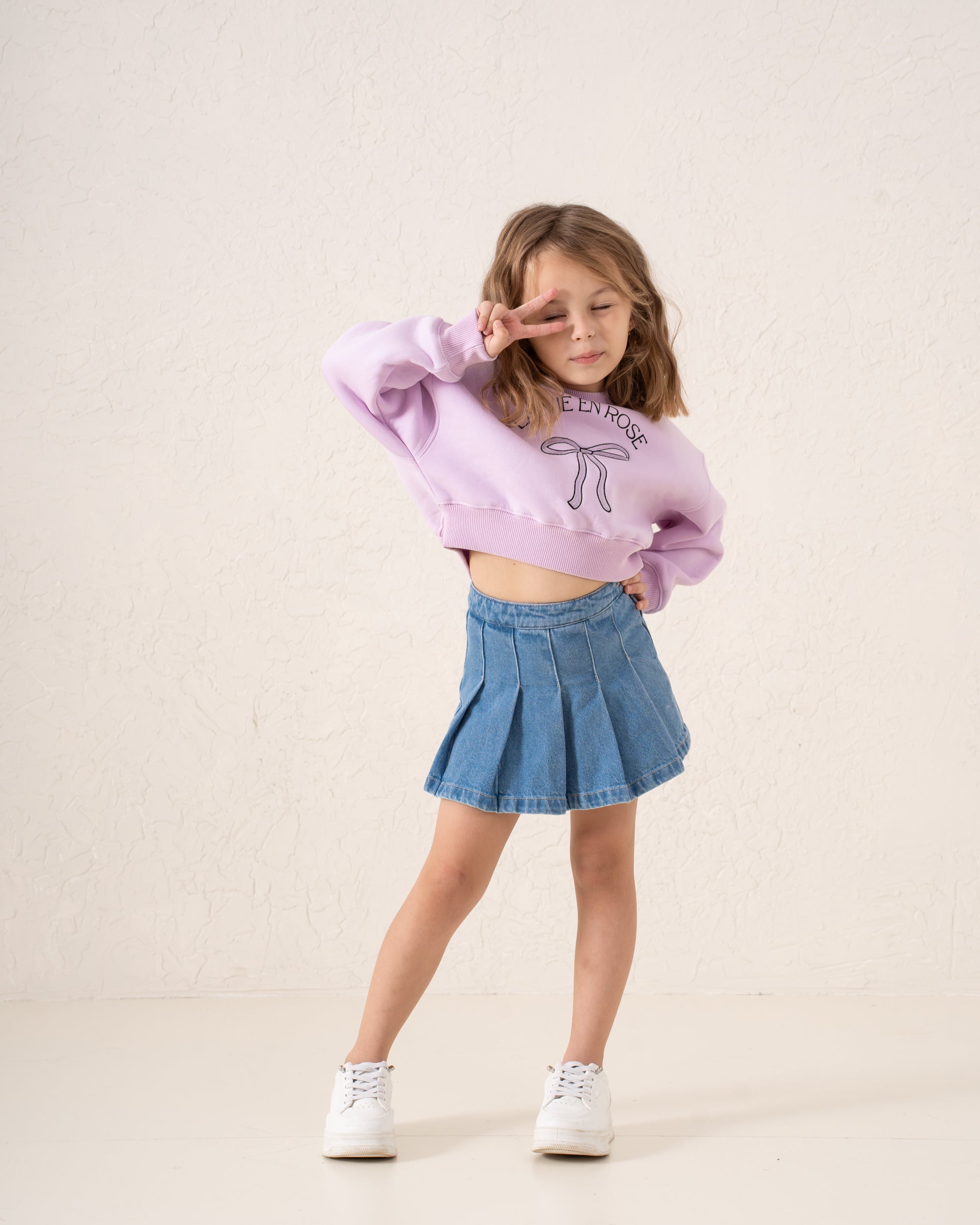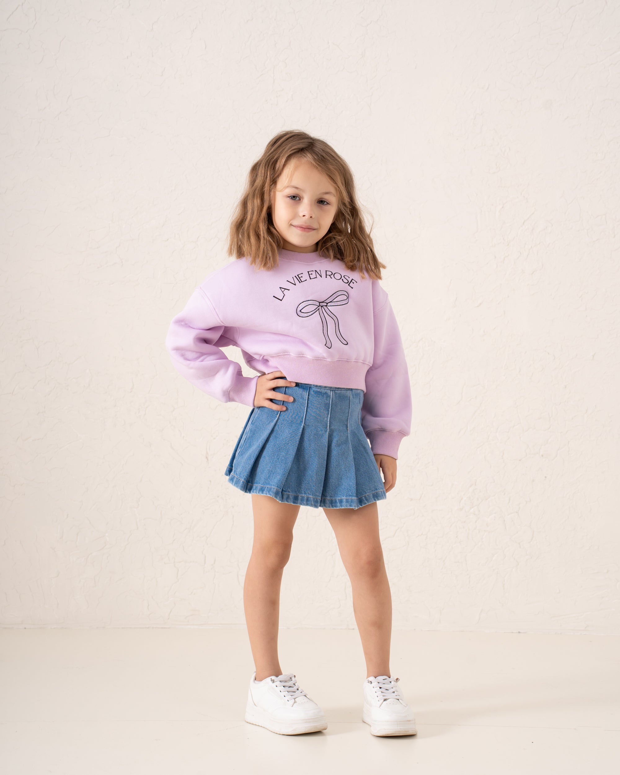 Sweet and playful with a Parisian twist, this sweatshirt features a chic bow illustration and “La Vie En Rose” script. Its relaxed cropped shape makes it a stylish everyday piece with a feminine edge.