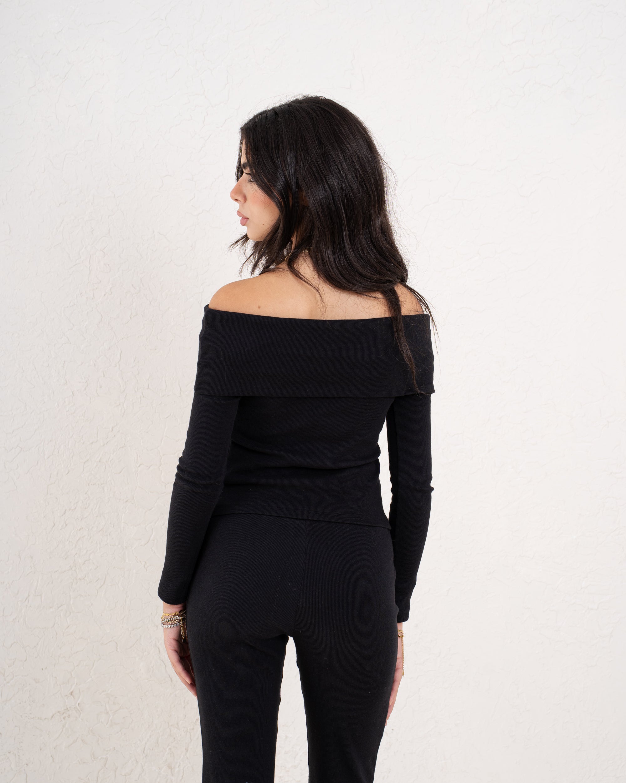 A soft ribbed top designed with an elegant off-shoulder neckline and a fitted silhouette. Minimal, flattering, and perfect for everyday styling or dressed-up looks. Matching pants available but sold separately.