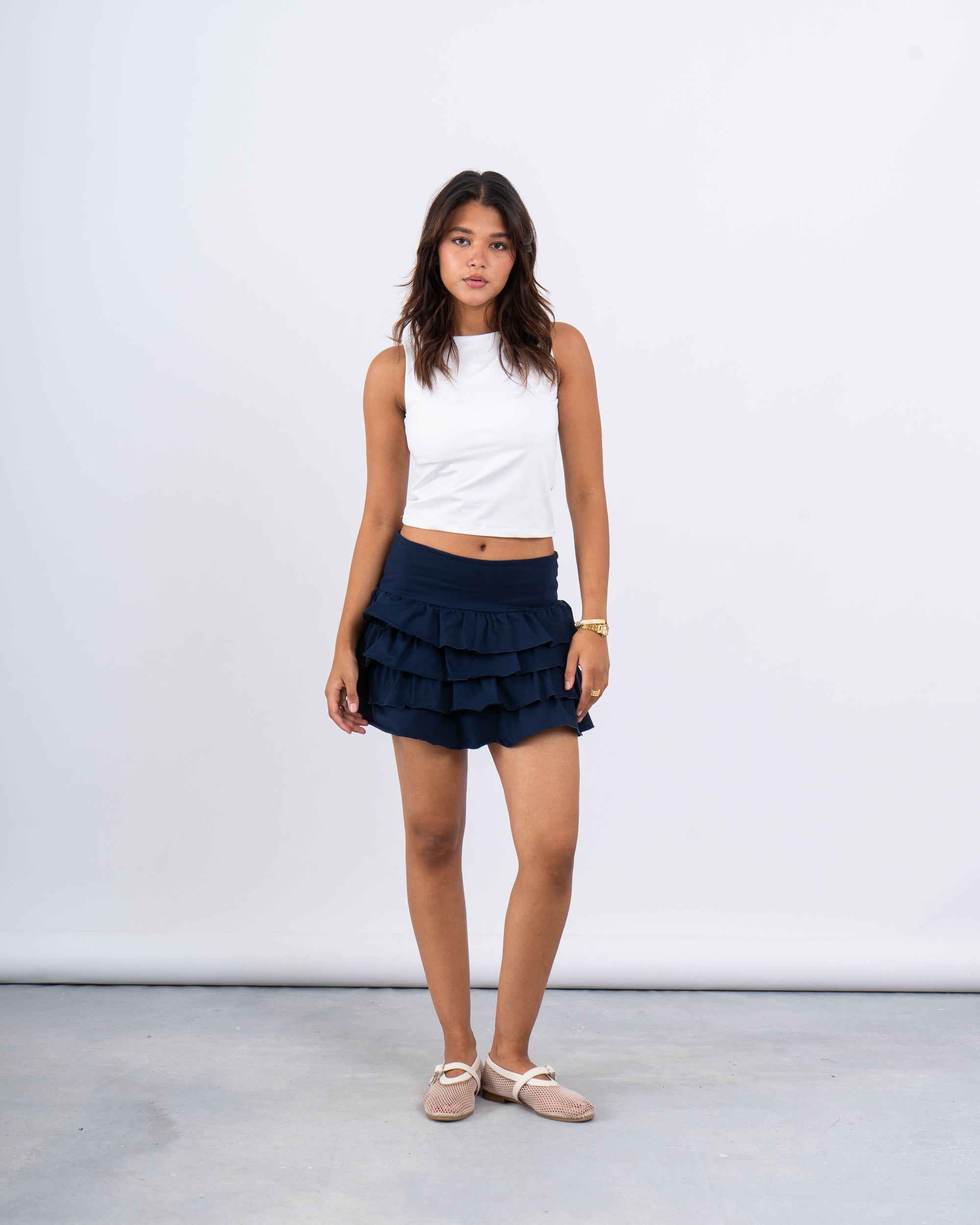 A fun and easy-going mini skirt with layered ruffles that bring movement and style to any outfit. Designed for everyday wear with a flattering fit and lightweight feel.