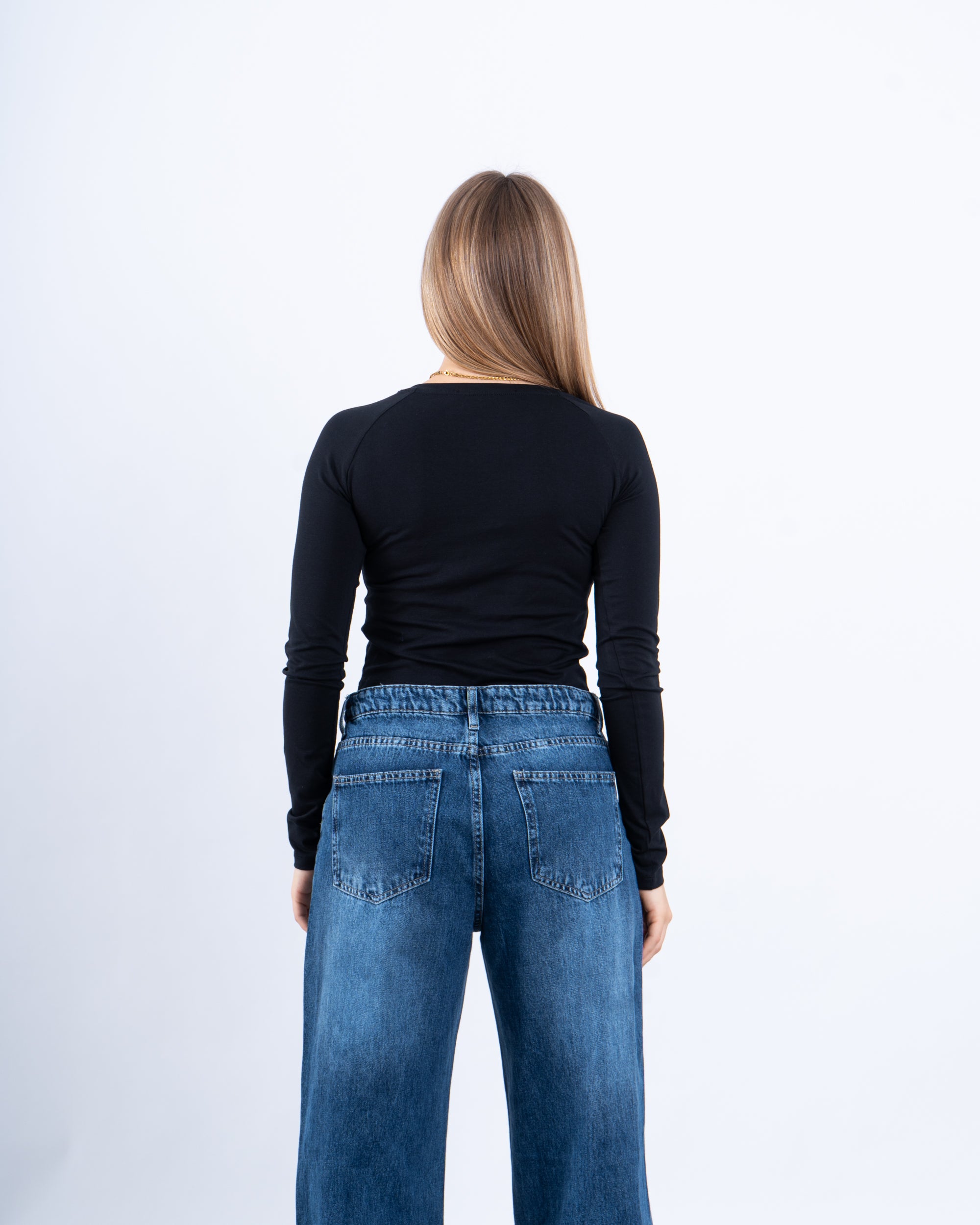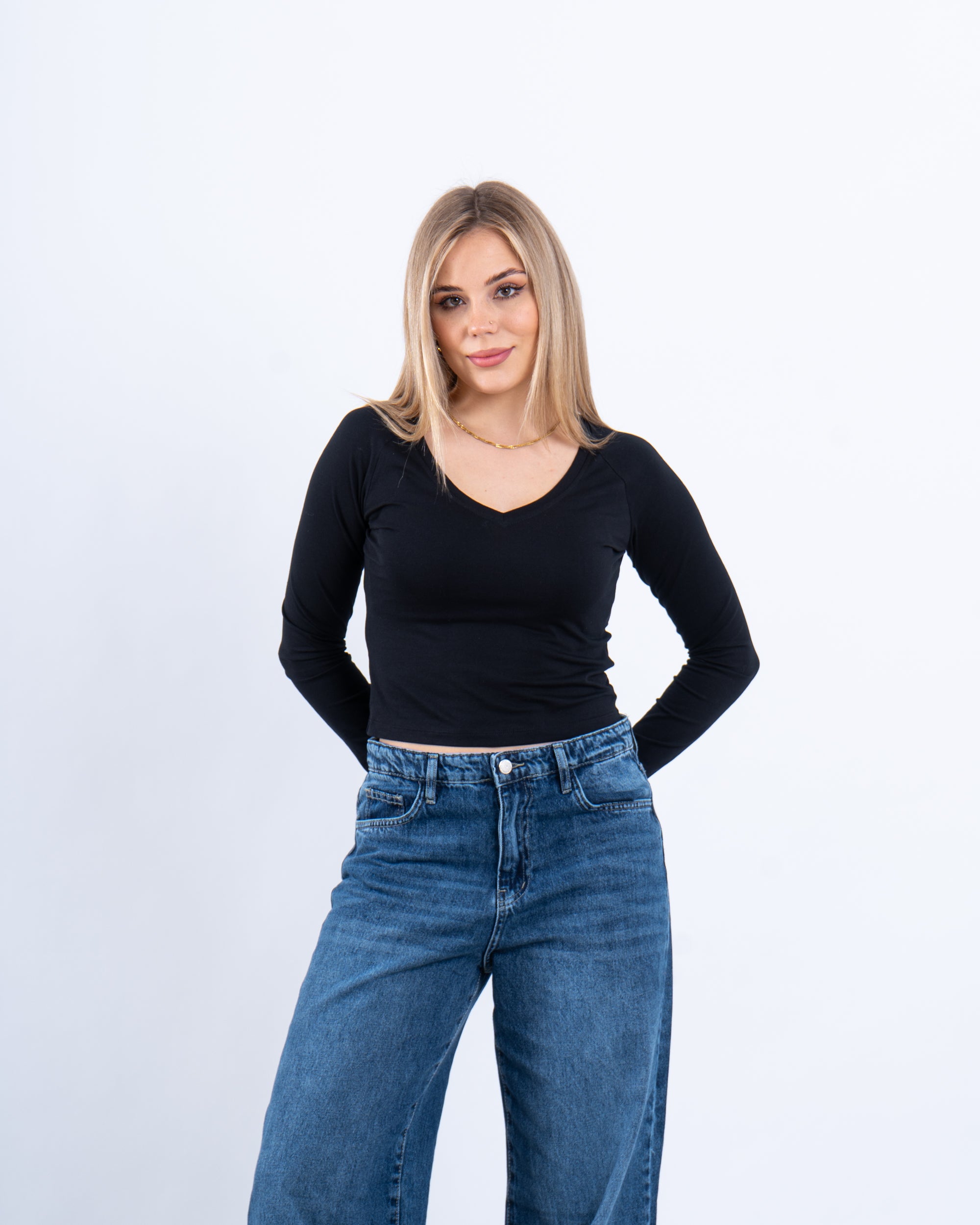 A wardrobe essential with a feminine twist. This V-neck long sleeve top is made from soft cotton...
