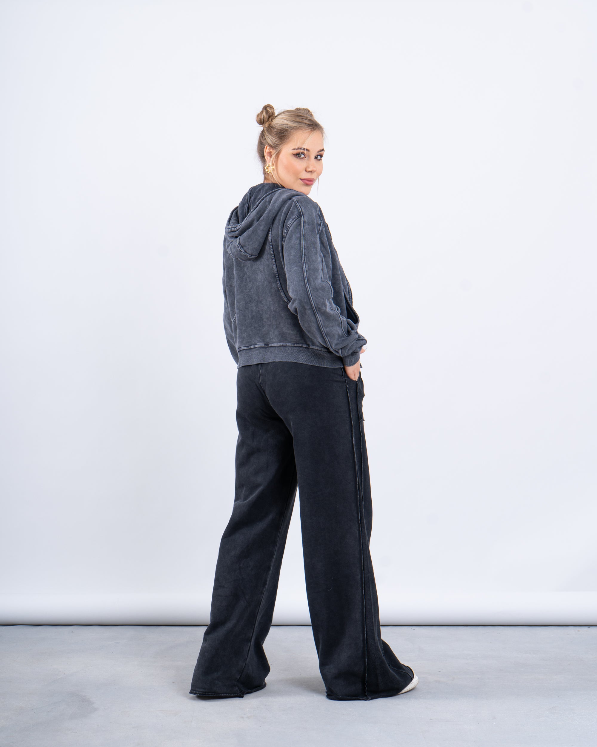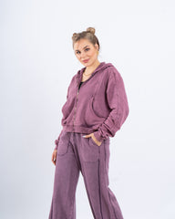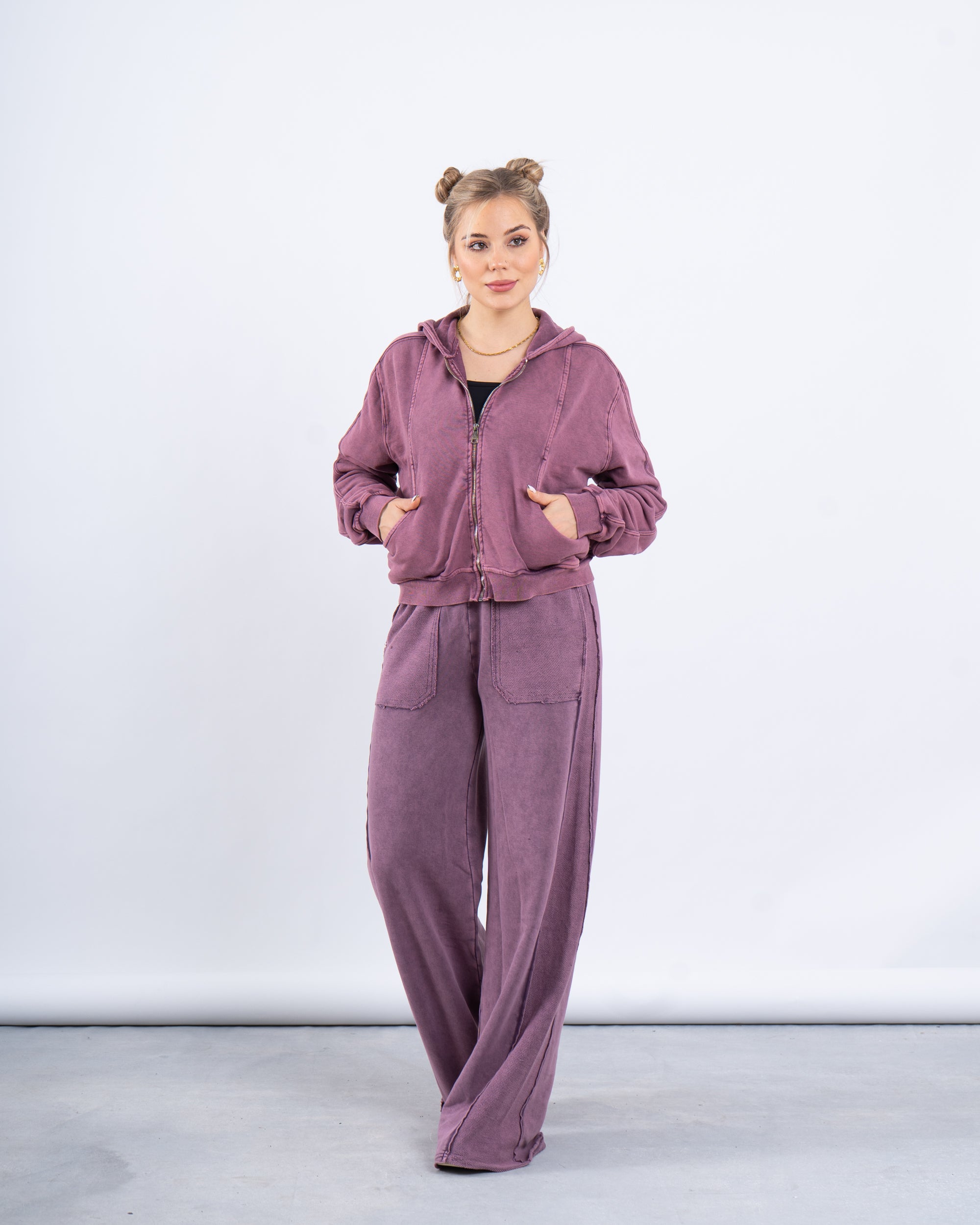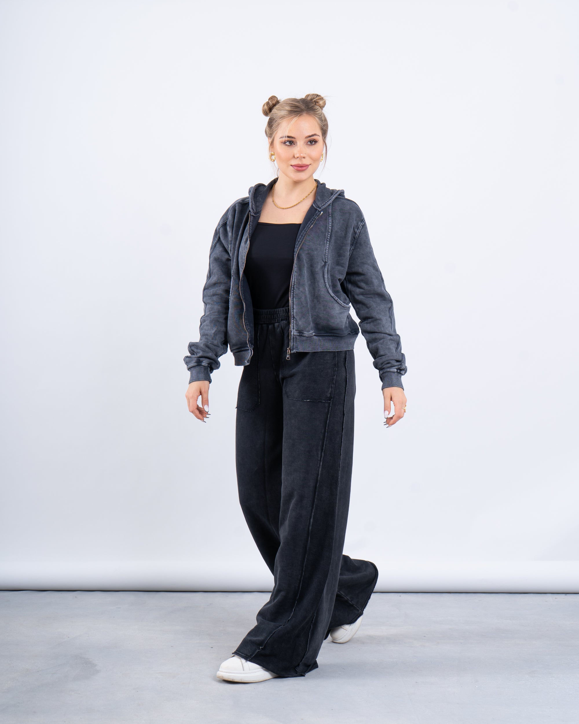 Laid-back meets effortlessly cool with this acid-wash zip-up hoodie. Designed with an oversized fit and a washed vintage look, this hoodie is a must-have for casual, everyday wear. The soft fabric and relaxed silhouette make it ultra-comfortable, while the zip-front closure adds versatility. Pair it with the matching acid-wash wide-leg pants for a coordinated set or style it with your favorite jeans for an easy, trendy vibe.