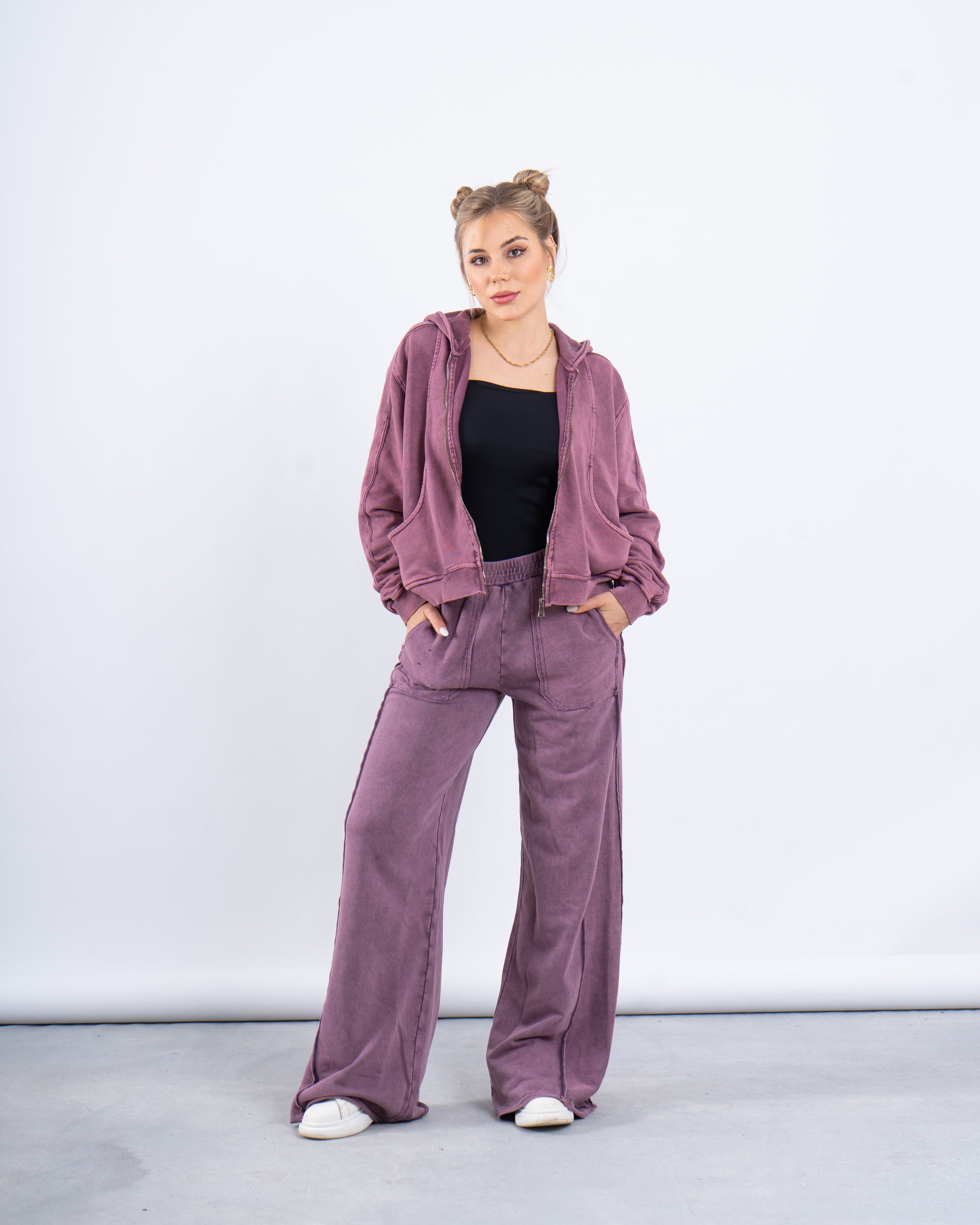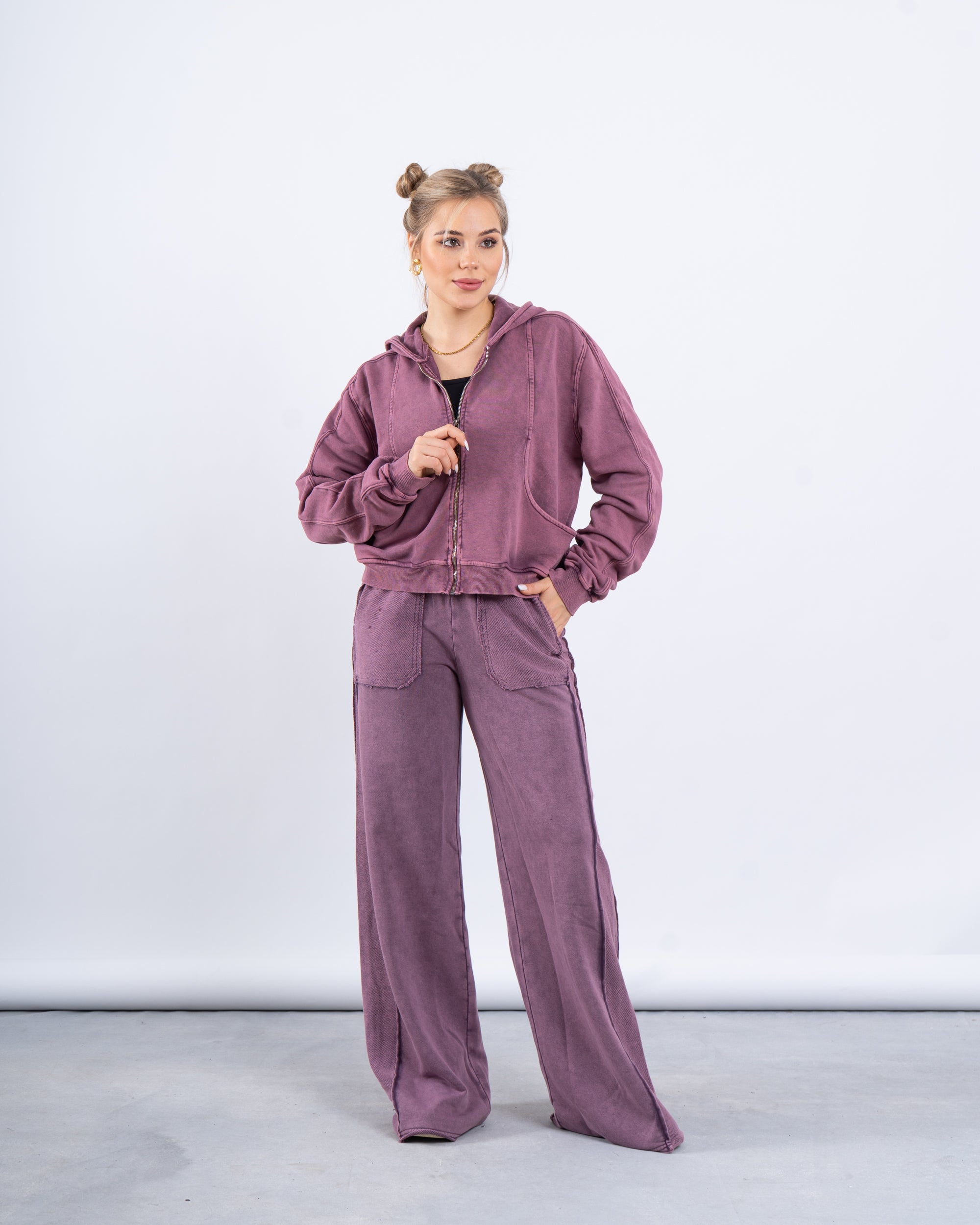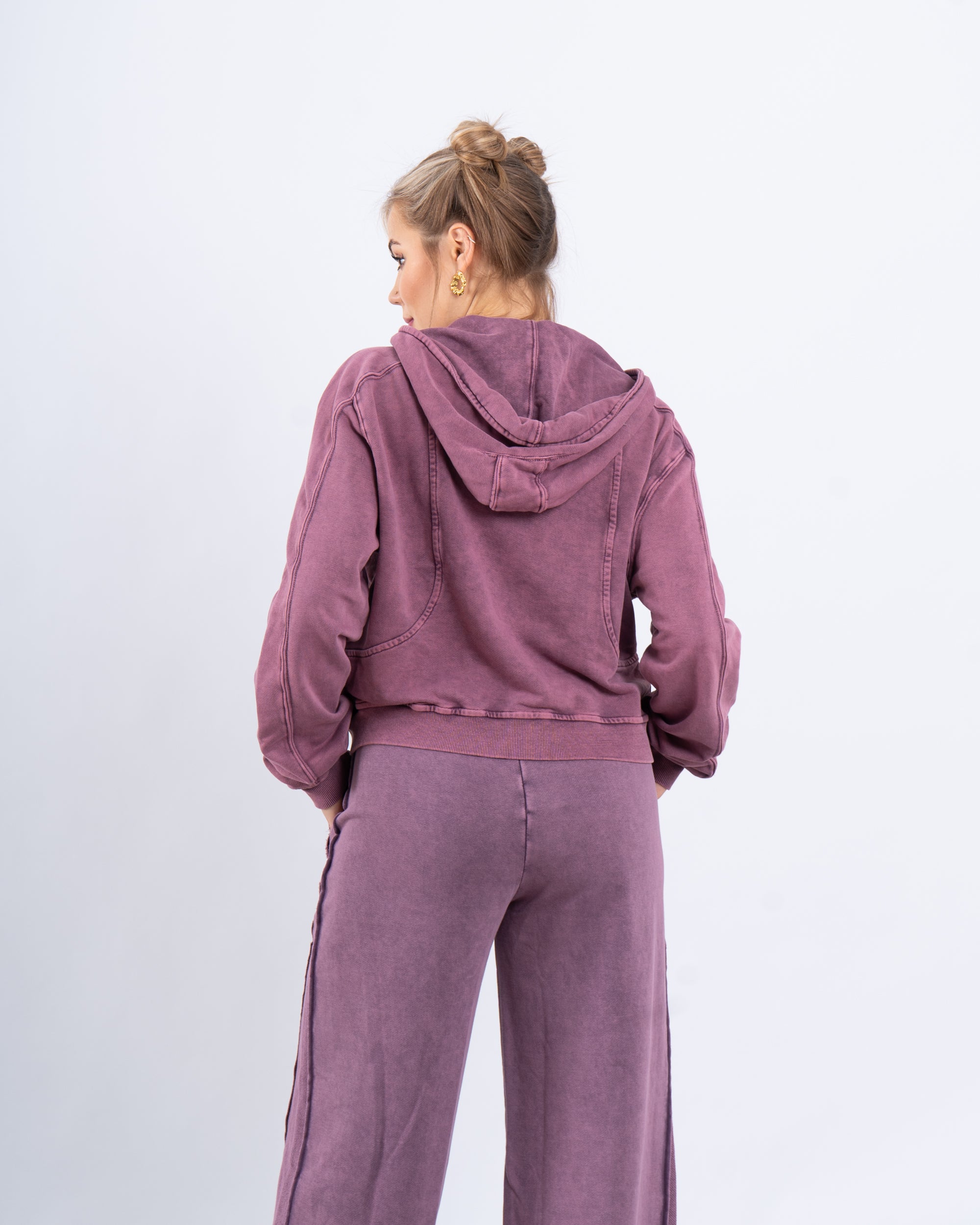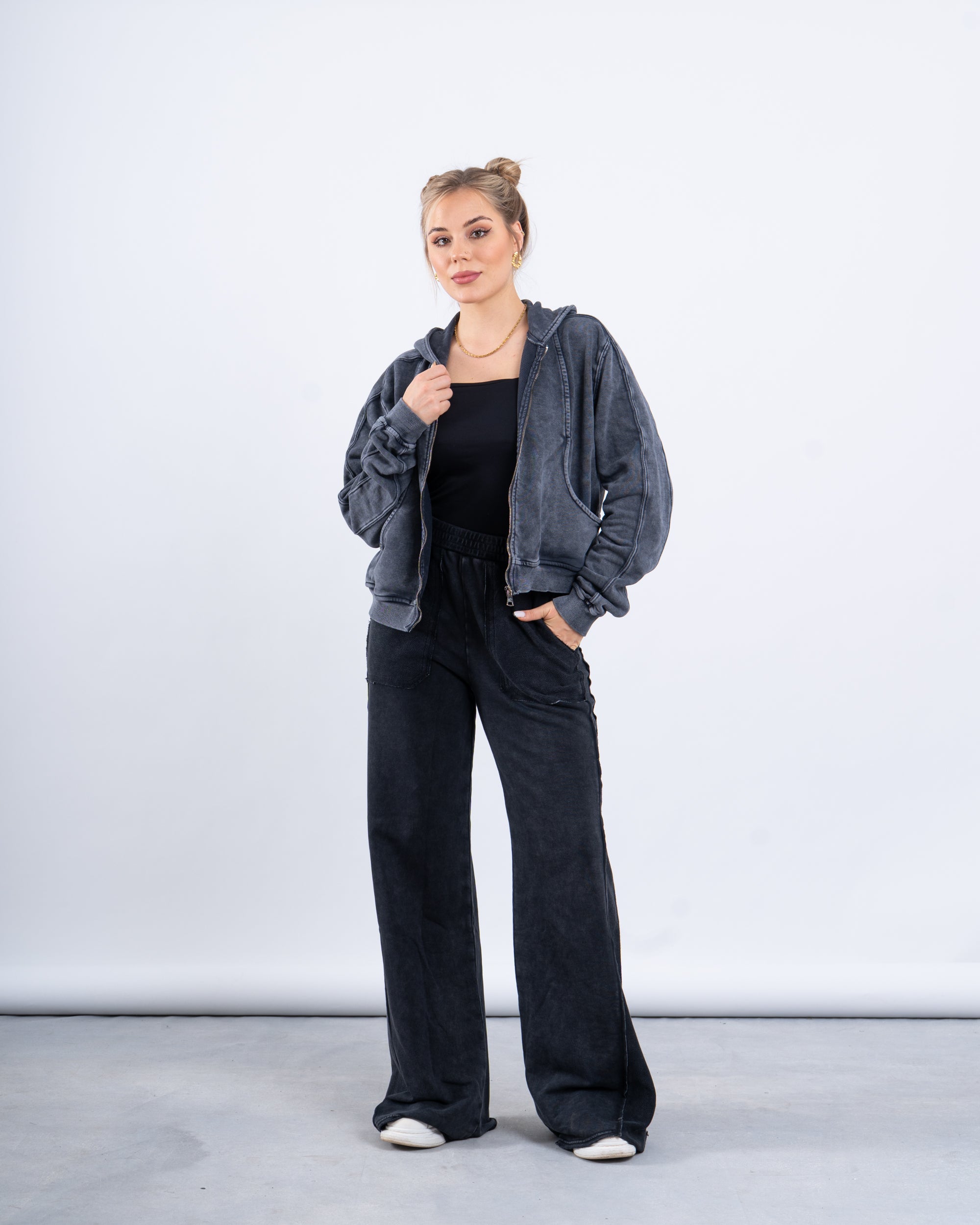 Laid-back meets effortlessly cool with this acid-wash zip-up hoodie. Designed with an oversized fit and a washed vintage look, this hoodie is a must-have for casual, everyday wear. The soft fabric and relaxed silhouette make it ultra-comfortable, while the zip-front closure adds versatility. Pair it with the matching acid-wash wide-leg pants for a coordinated set or style it with your favorite jeans for an easy, trendy vibe.