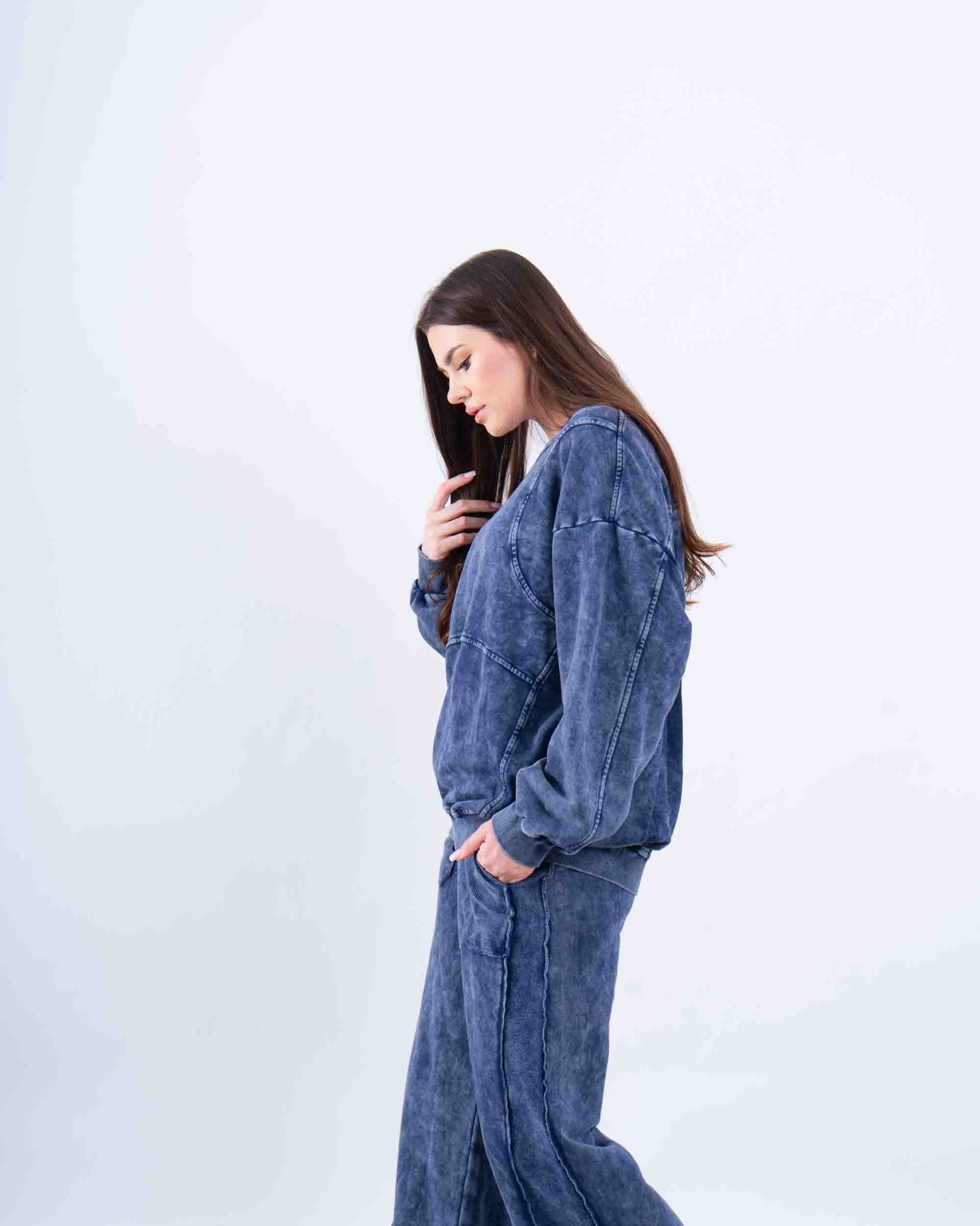 A cozy, oversized sweatshirt with a cool acid wash finish that gives it a vintage edge. Soft, relaxed, and effortlessly stylish—this piece is made for off-duty days or laid-back layering.