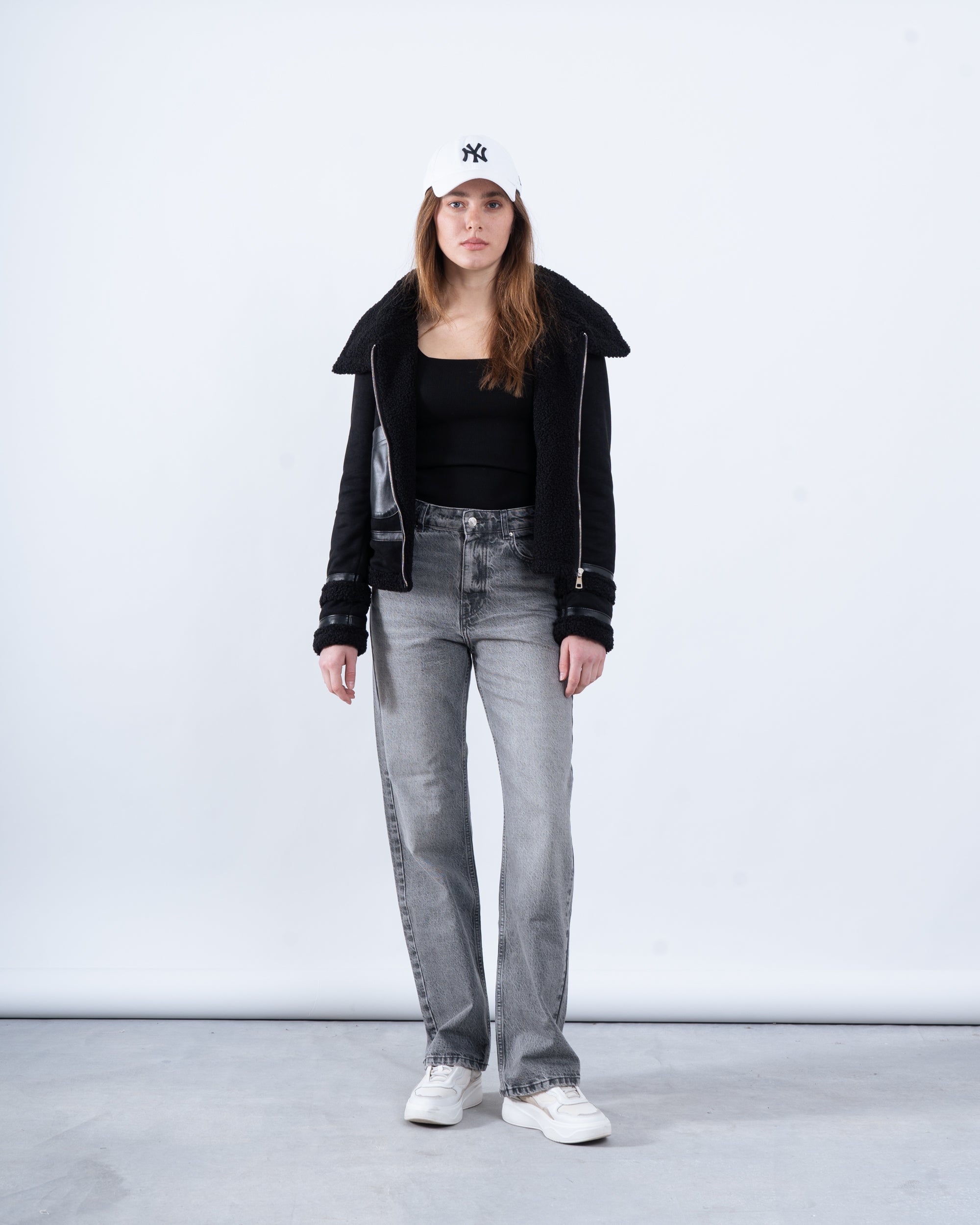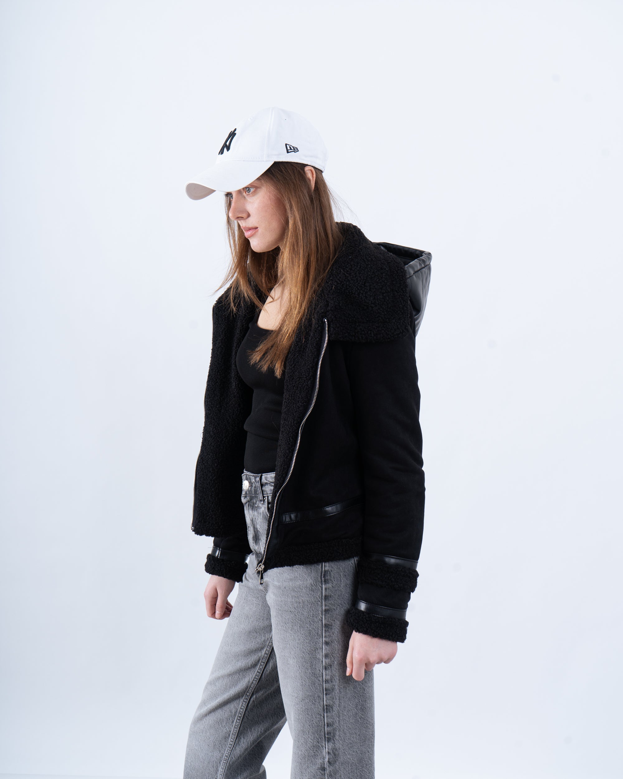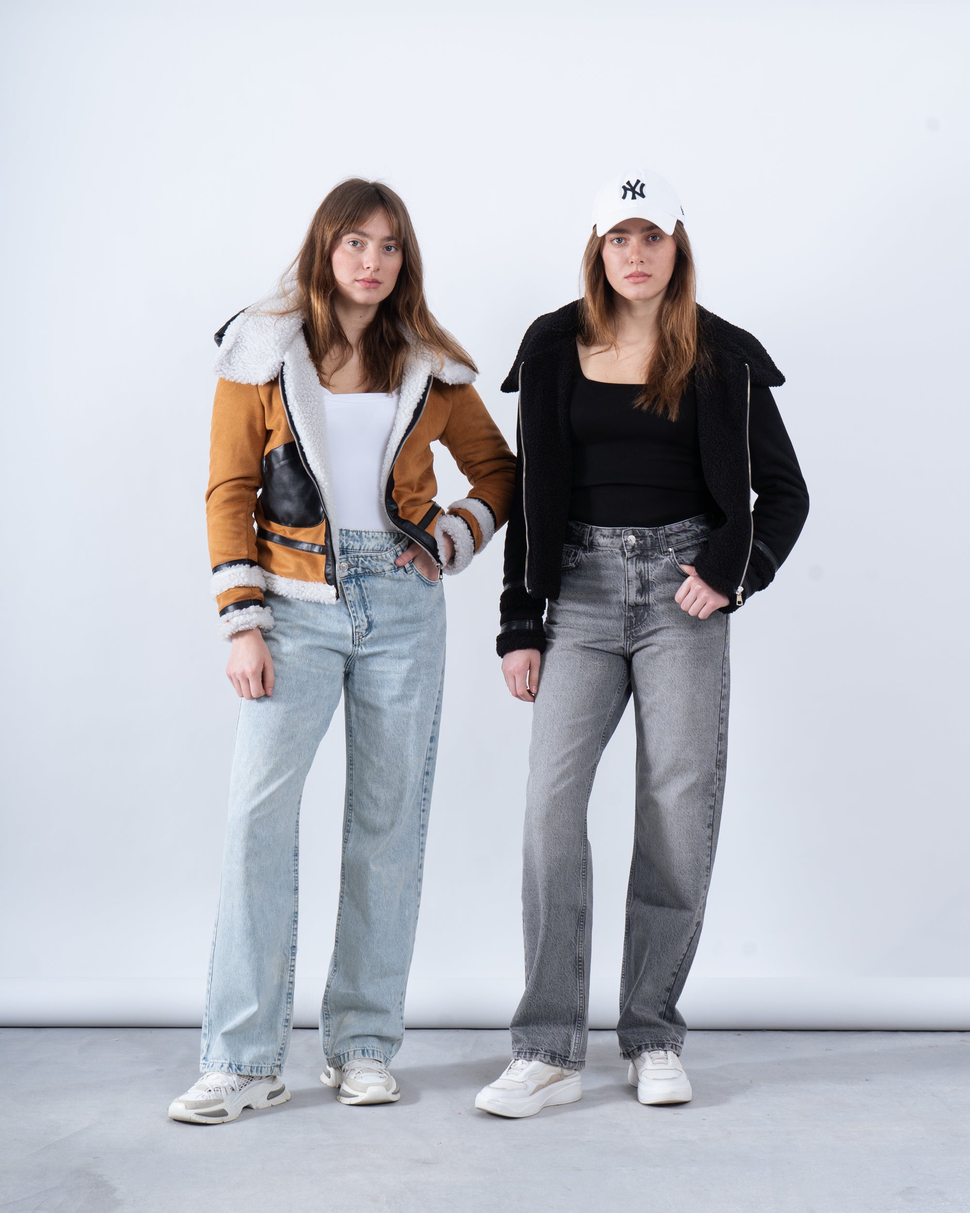 Channel vintage vibes with this faux shearling aviator jacket, available in classic black and warm camel. Featuring a cozy shearling collar, zip-up front, and buckle detailing, this jacket is your go-to for staying warm while looking effortlessly cool.