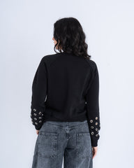 This studded sleeve sweatshirt is the perfect blend of comfort and style, making it a versatile addition to any wardrobe. Available in neutral tones, it’s ideal for creating effortlessly cool outfits for any occasion.