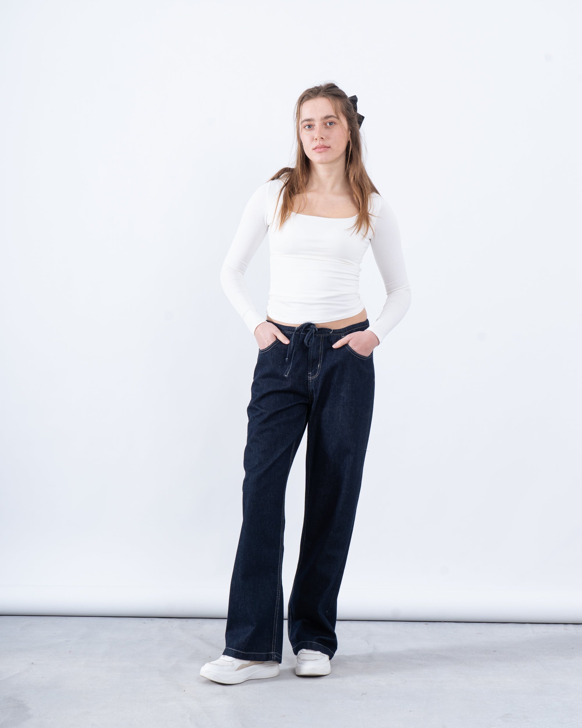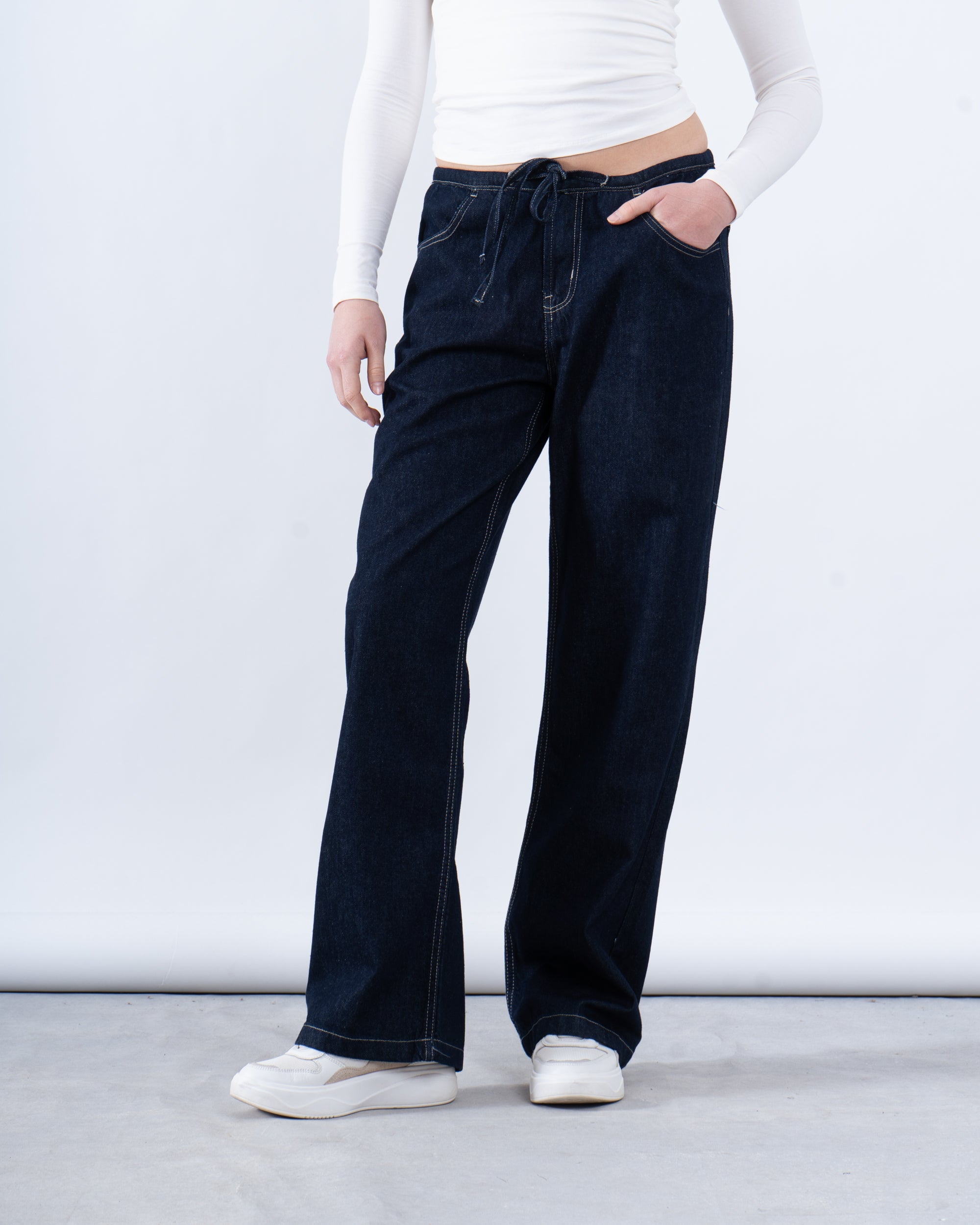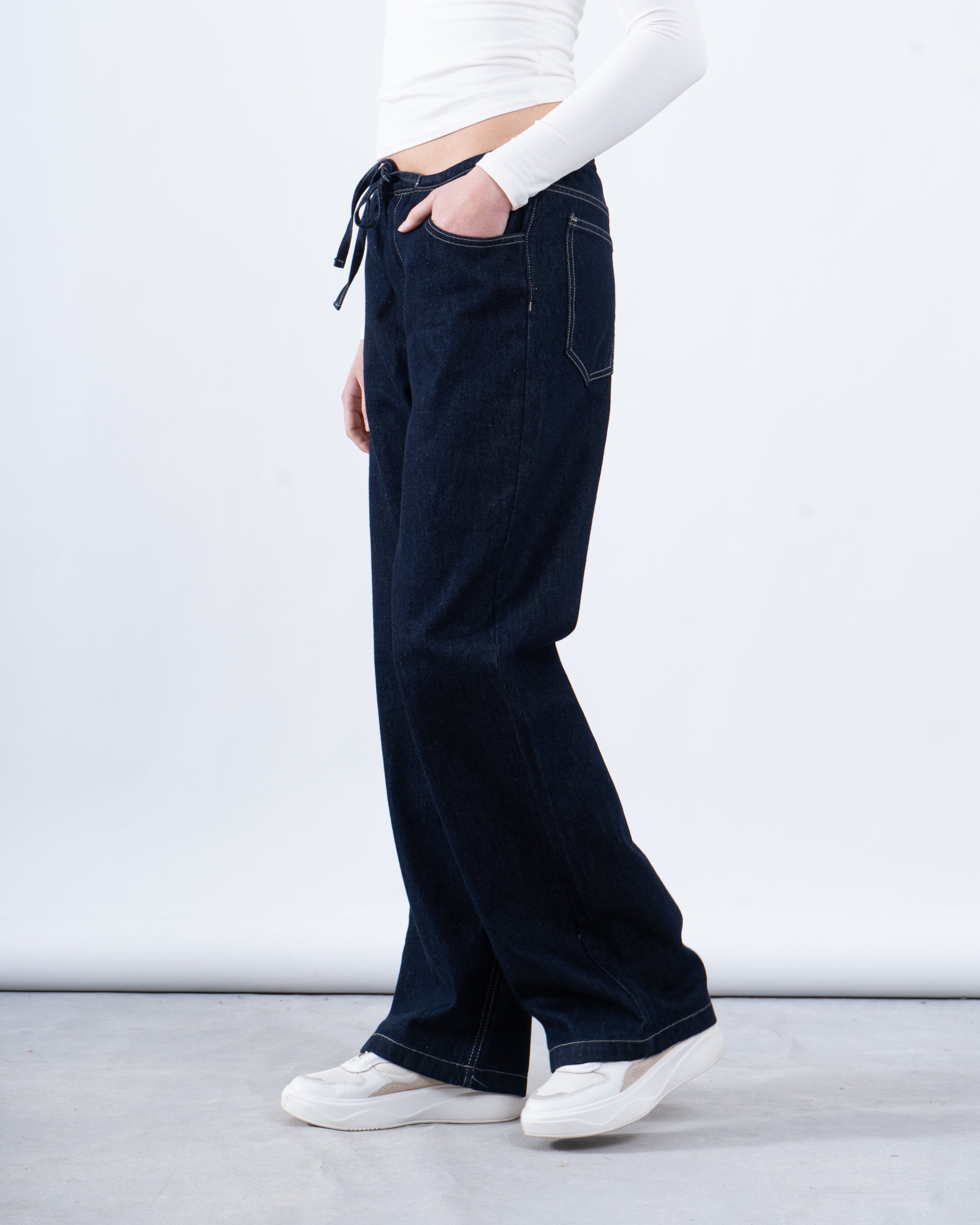 A fresh take on denim, these drawstring denim pants combine a laid-back vibe with a structured look. Designed for ultimate comfort, they feature a relaxed, straight-leg fit with an adjustable drawstring waist for a customizable fit. Crafted from premium denim, offering durability while maintaining a soft feel.