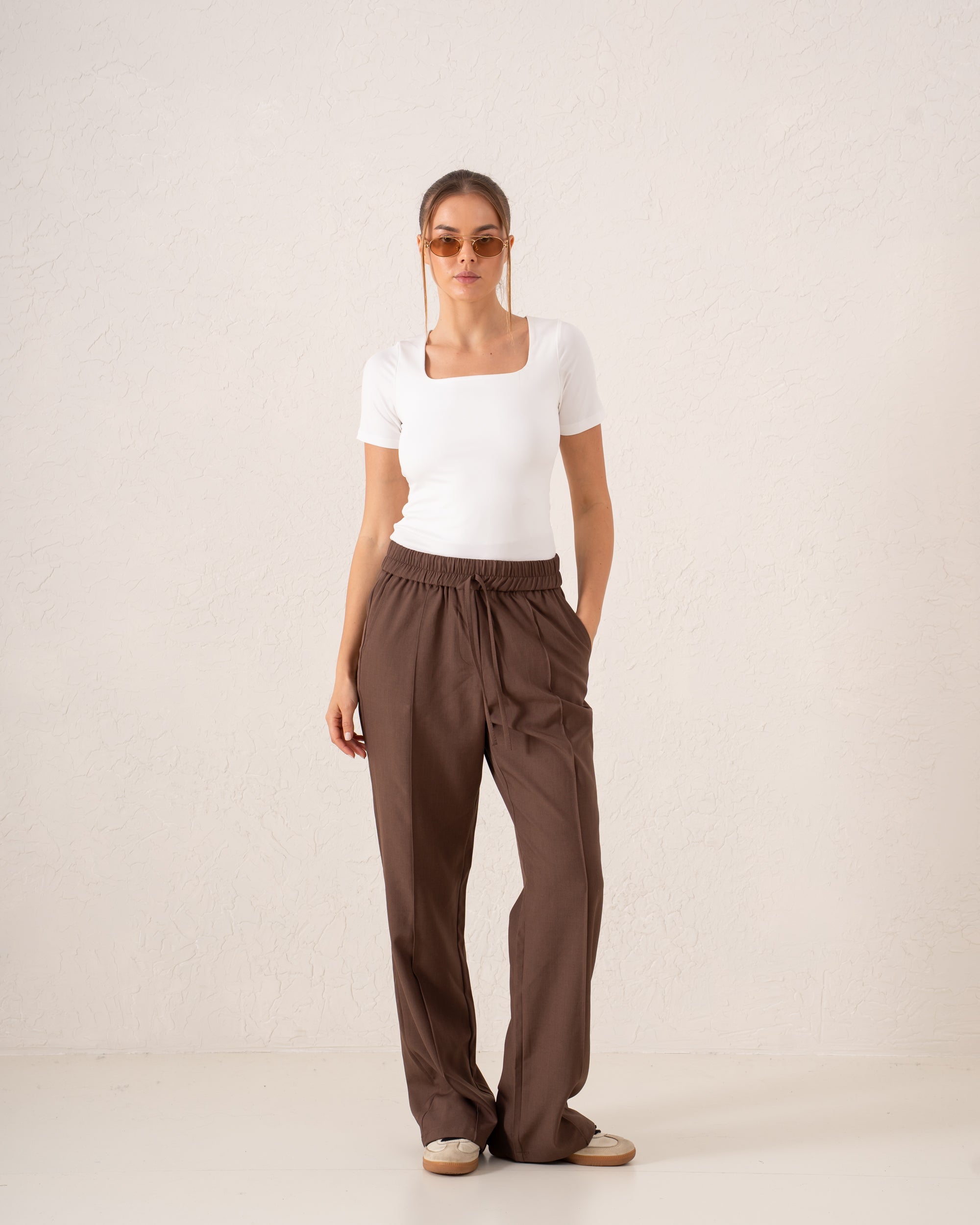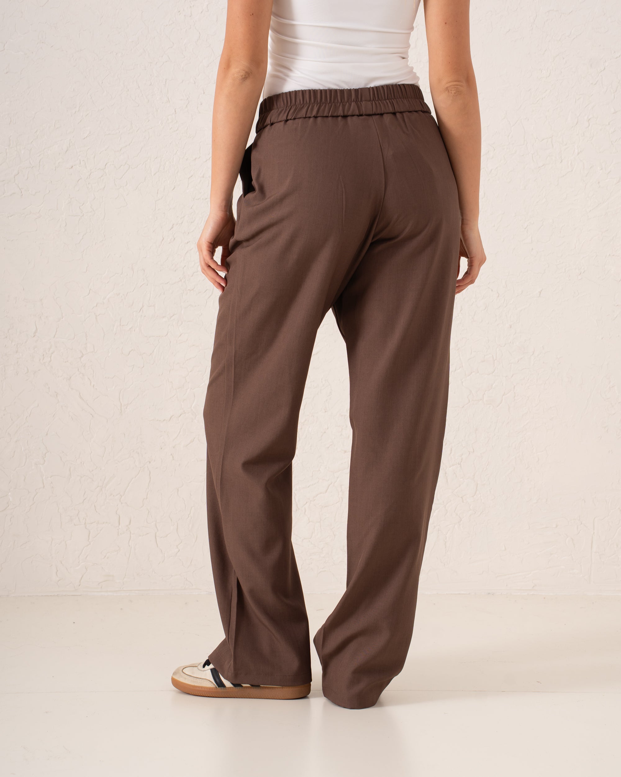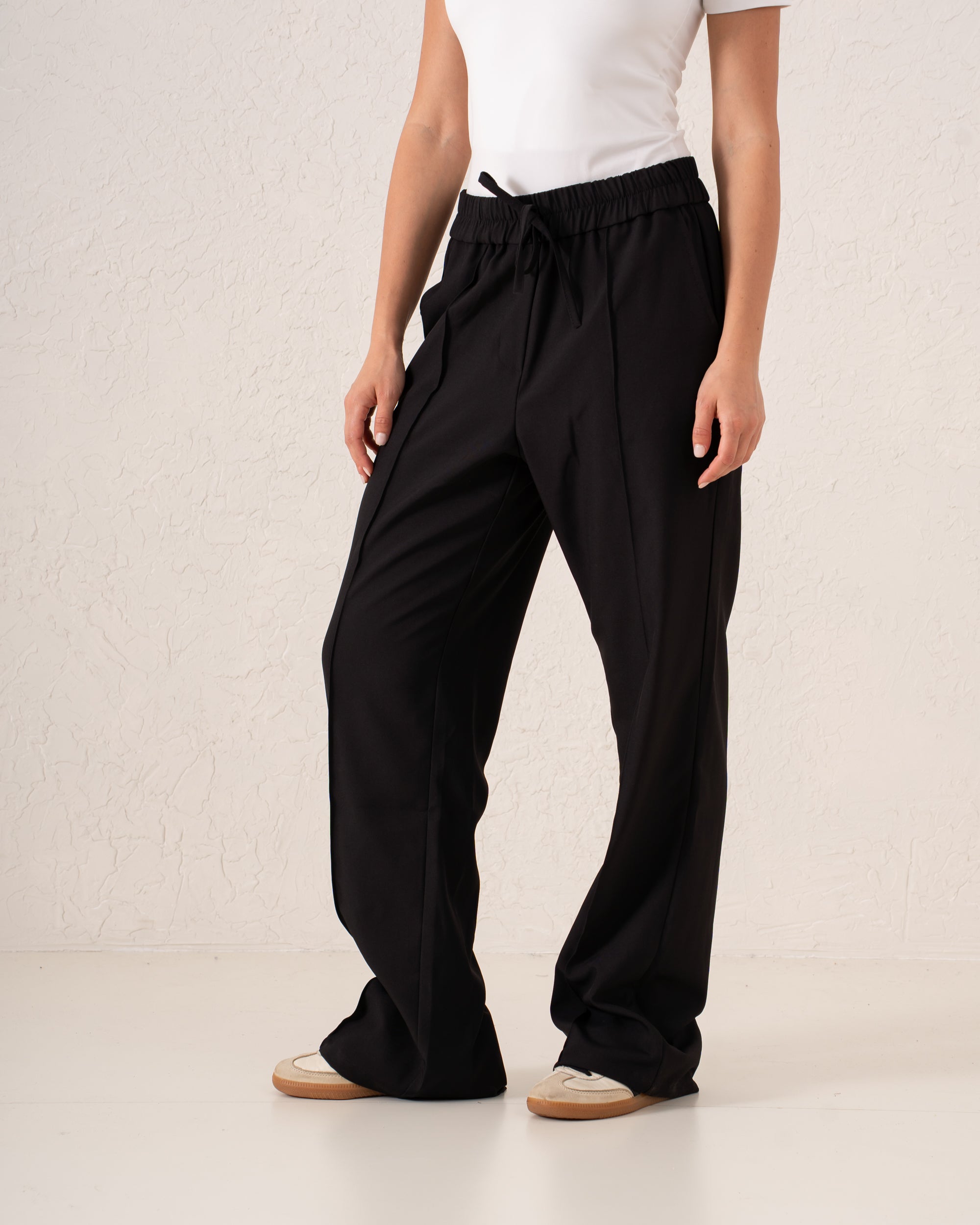 Tailored yet comfortable wide-leg pants with a flattering elastic back waistband and a relaxed drape.