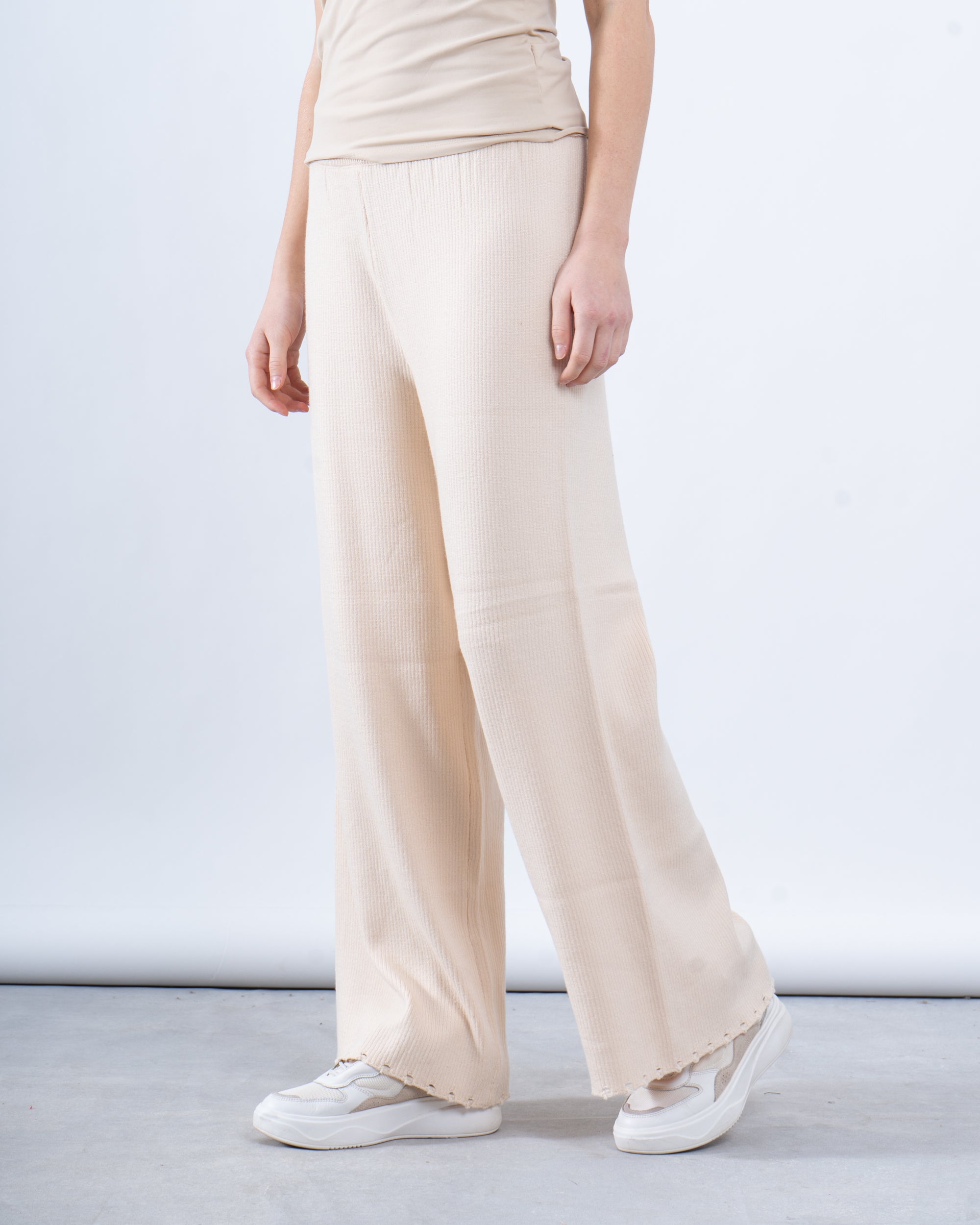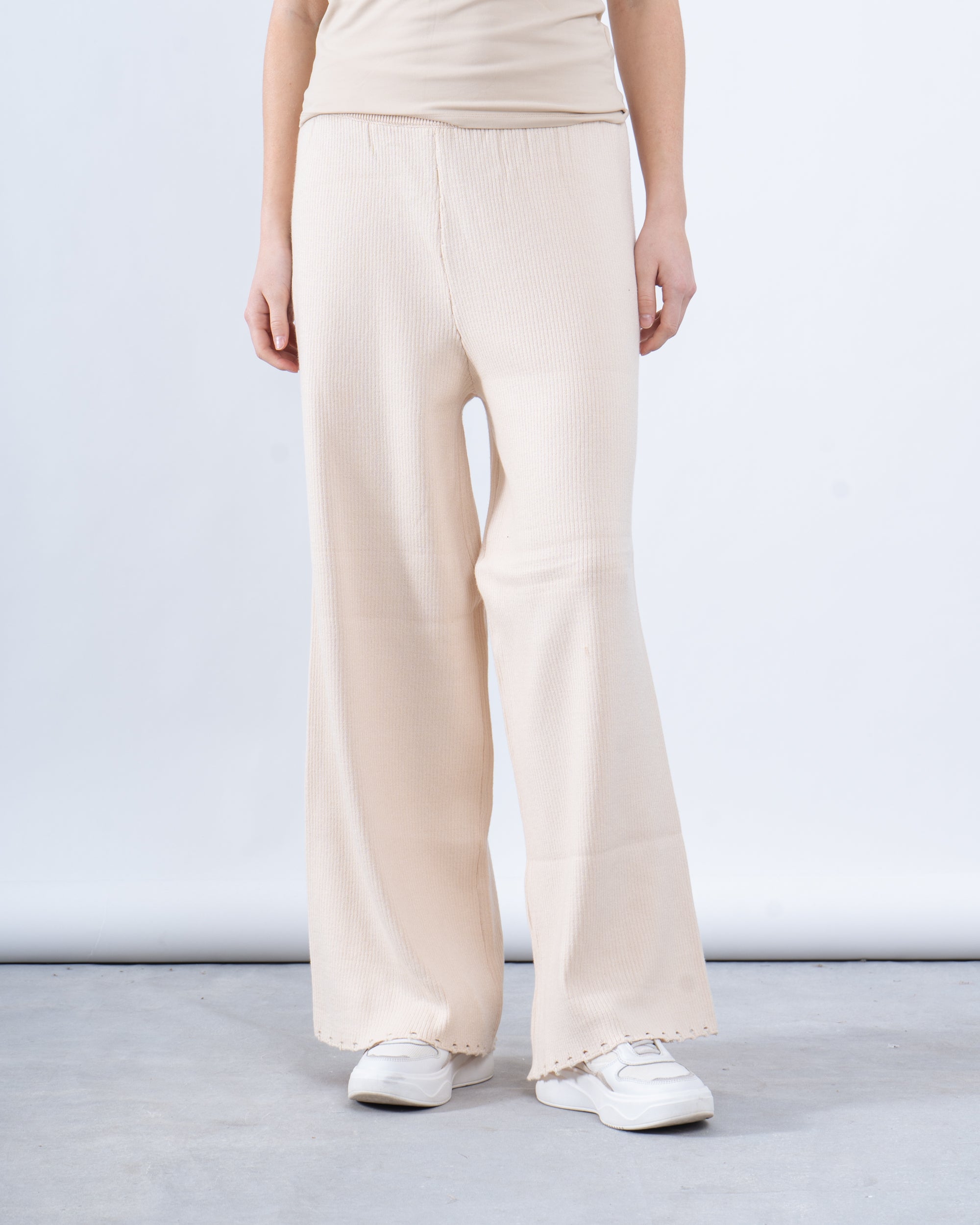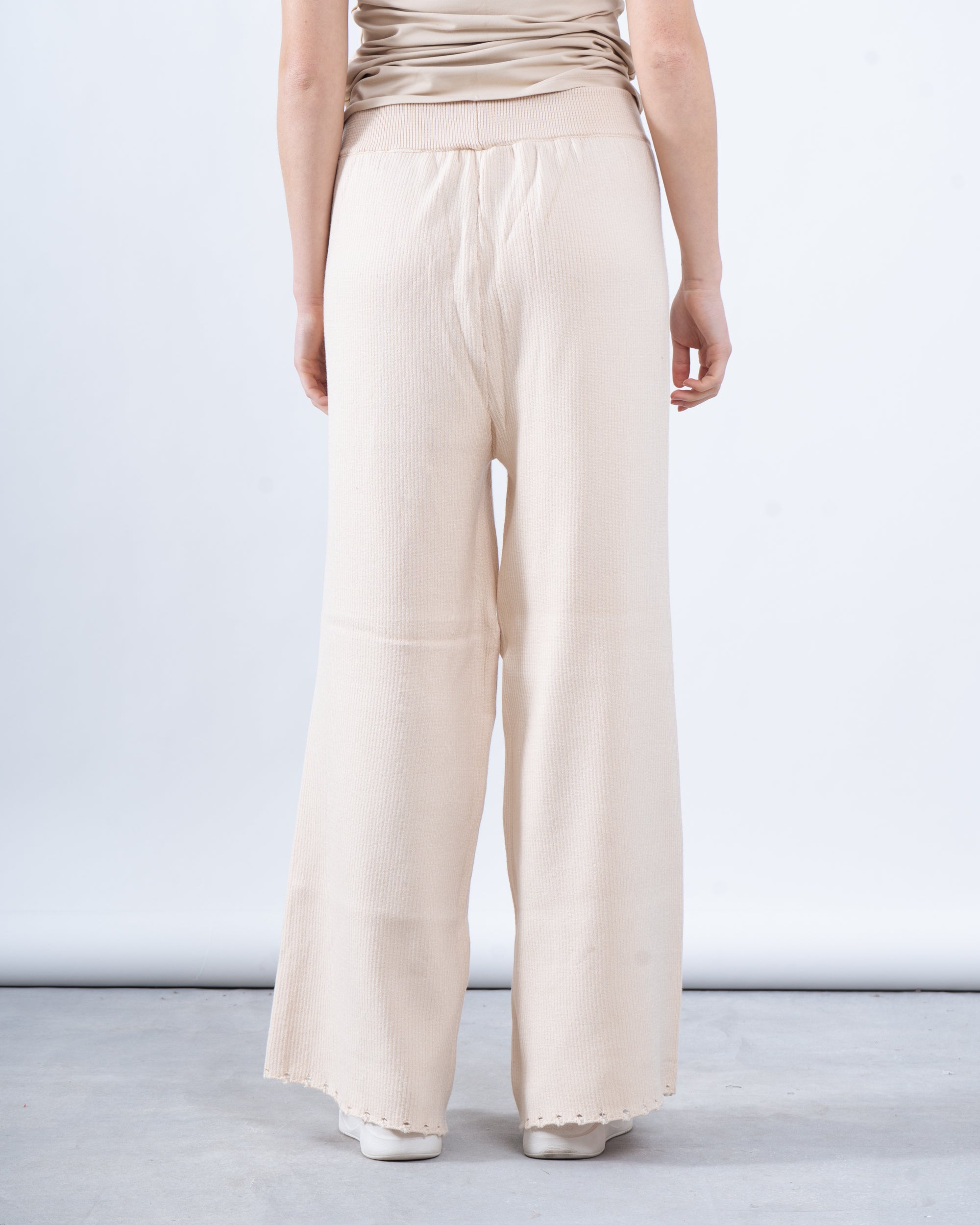Fit: Wide-leg fit with a mid-rise elastic waistband.