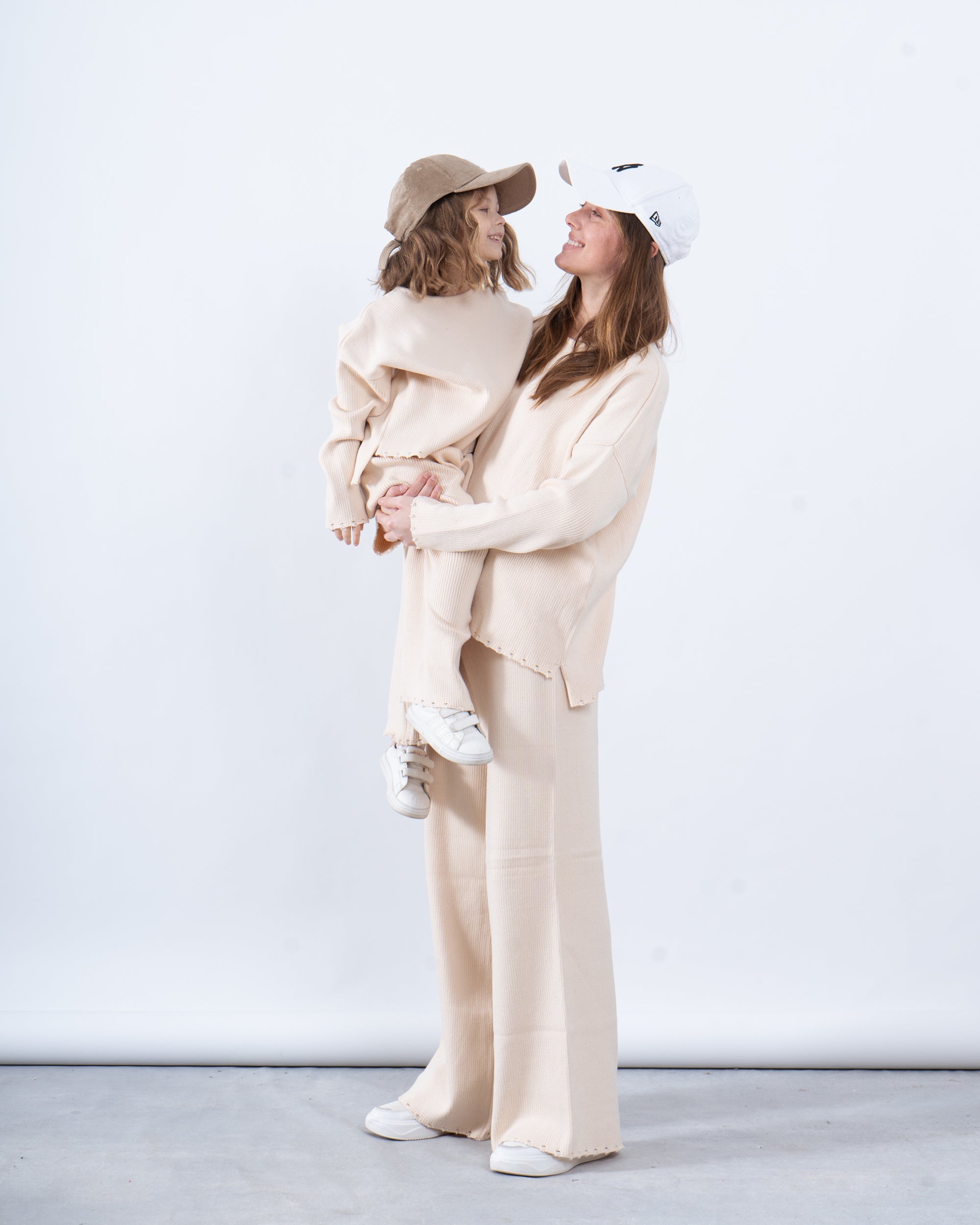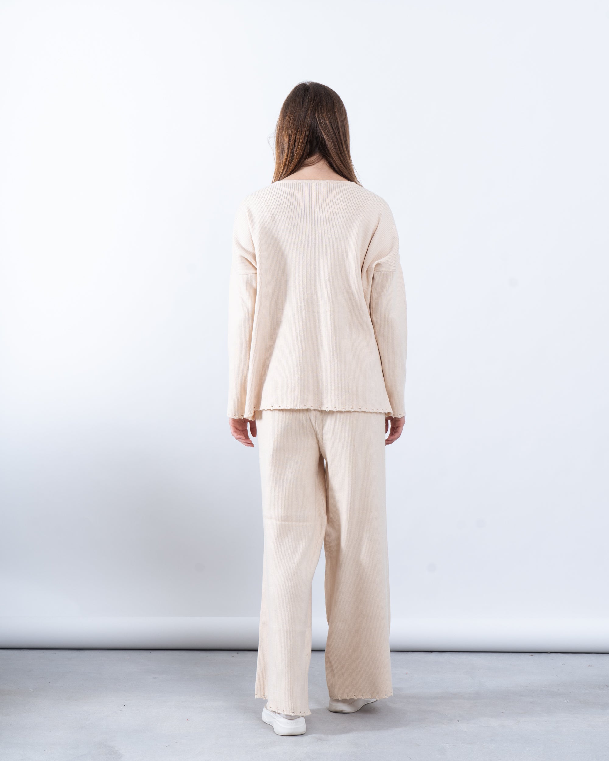 Stay effortlessly chic with this oversized waffle knit top, featuring a relaxed fit and raw-edge hem for a modern touch. Soft and breathable, its perfect for laid-back days or casual outings. Pair it with the matching knit pants for a coordinated look.