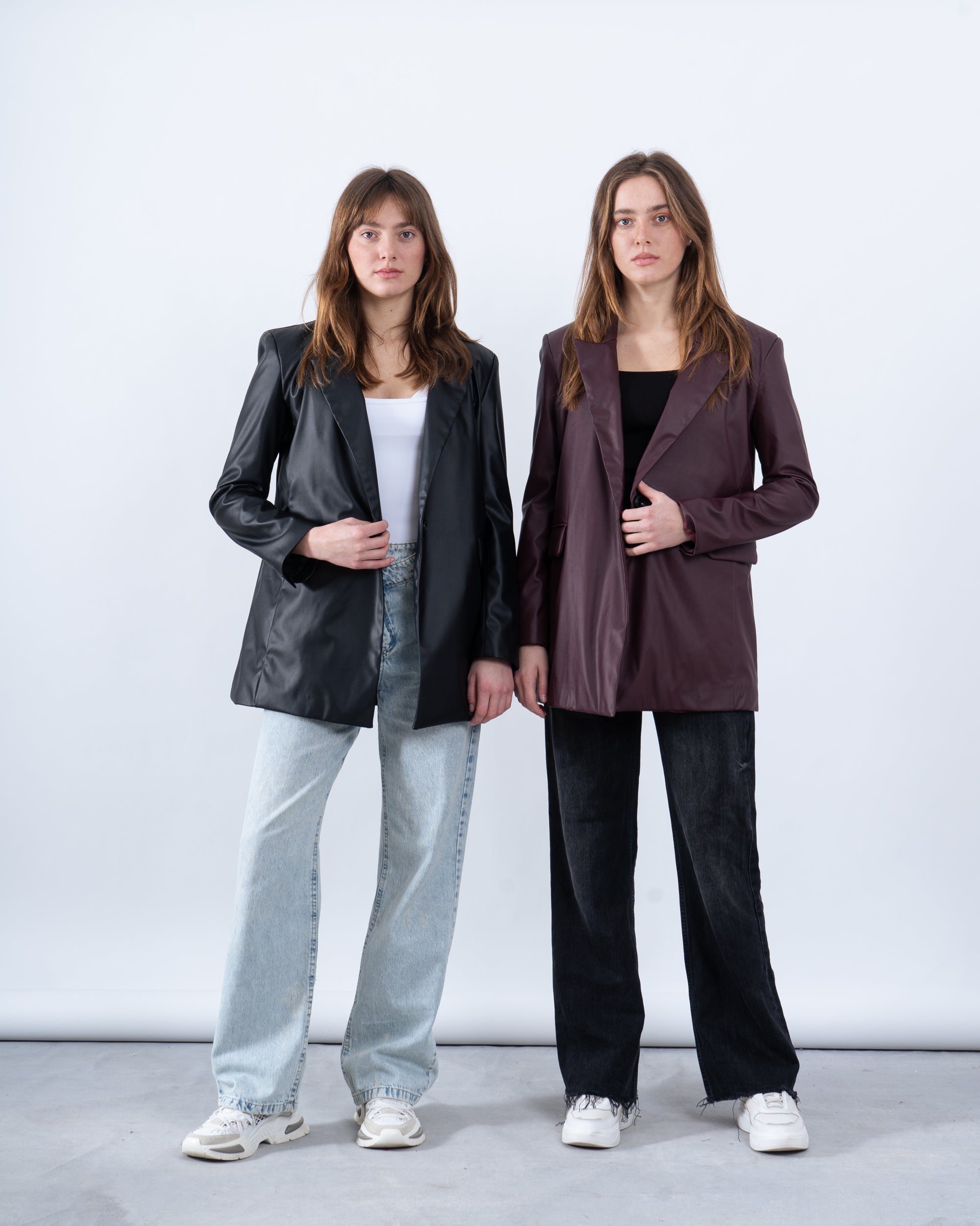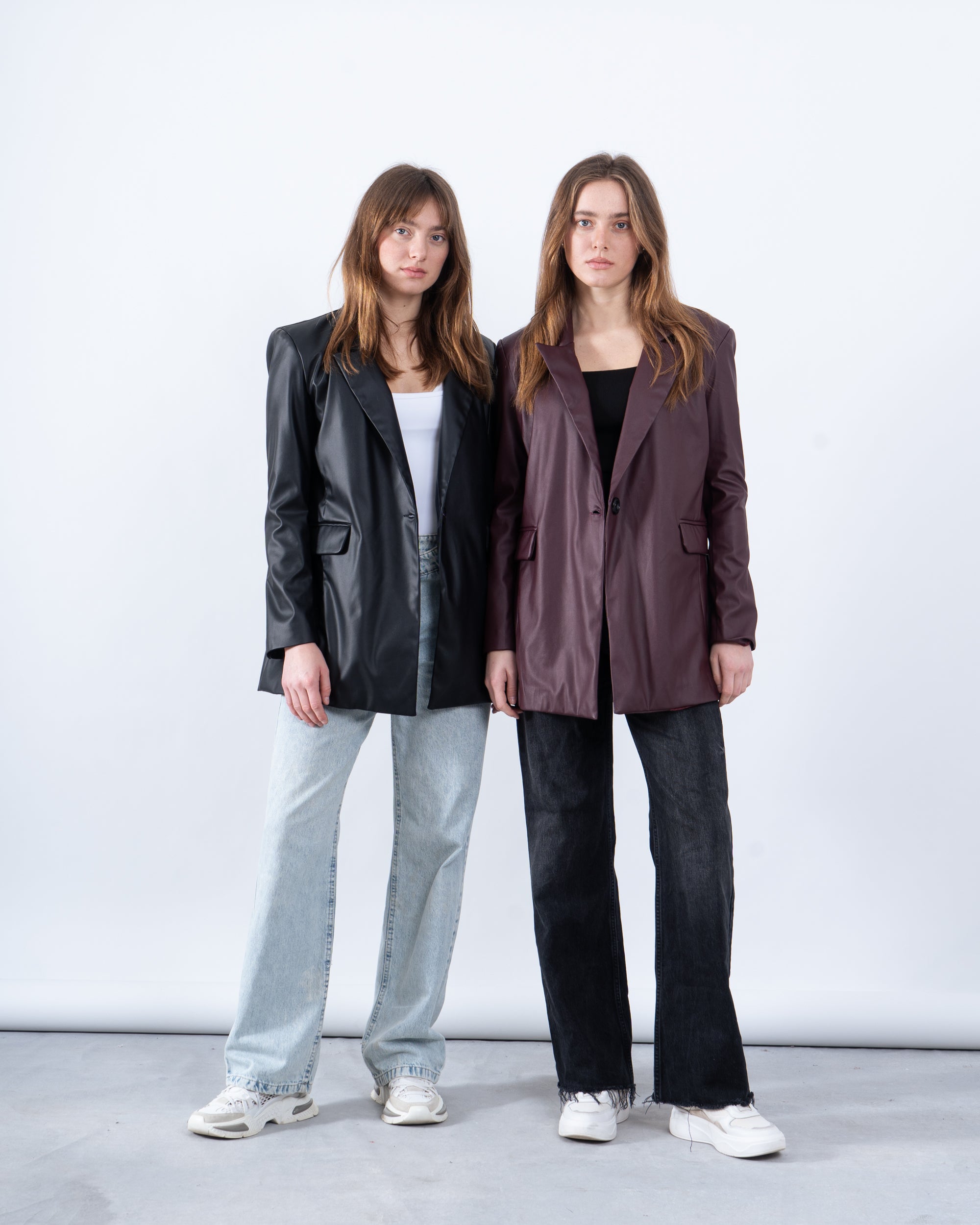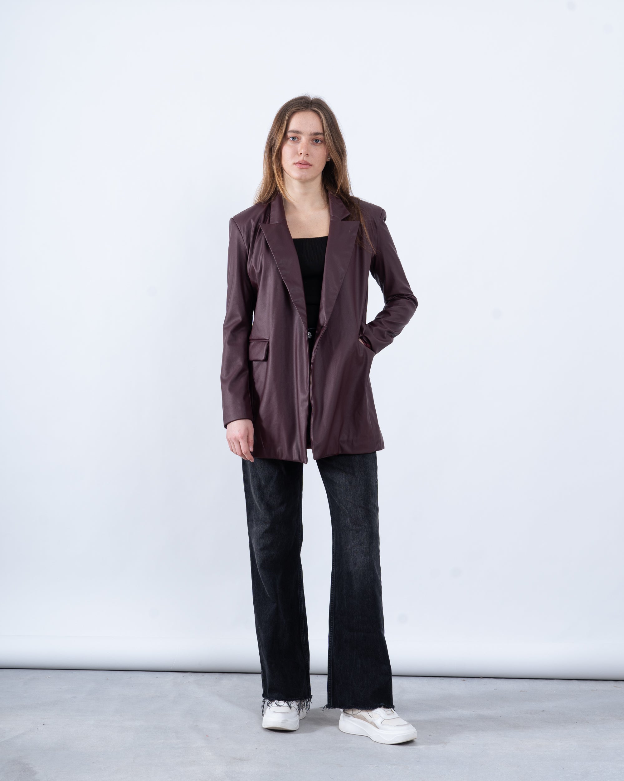 A must-have for a bold and polished look, this faux leather blazer adds an edgy touch to your outfit. Featuring a single-button closure, notched lapel, and a structured silhouette, it’s perfect for both casual and dressed-up moments.
