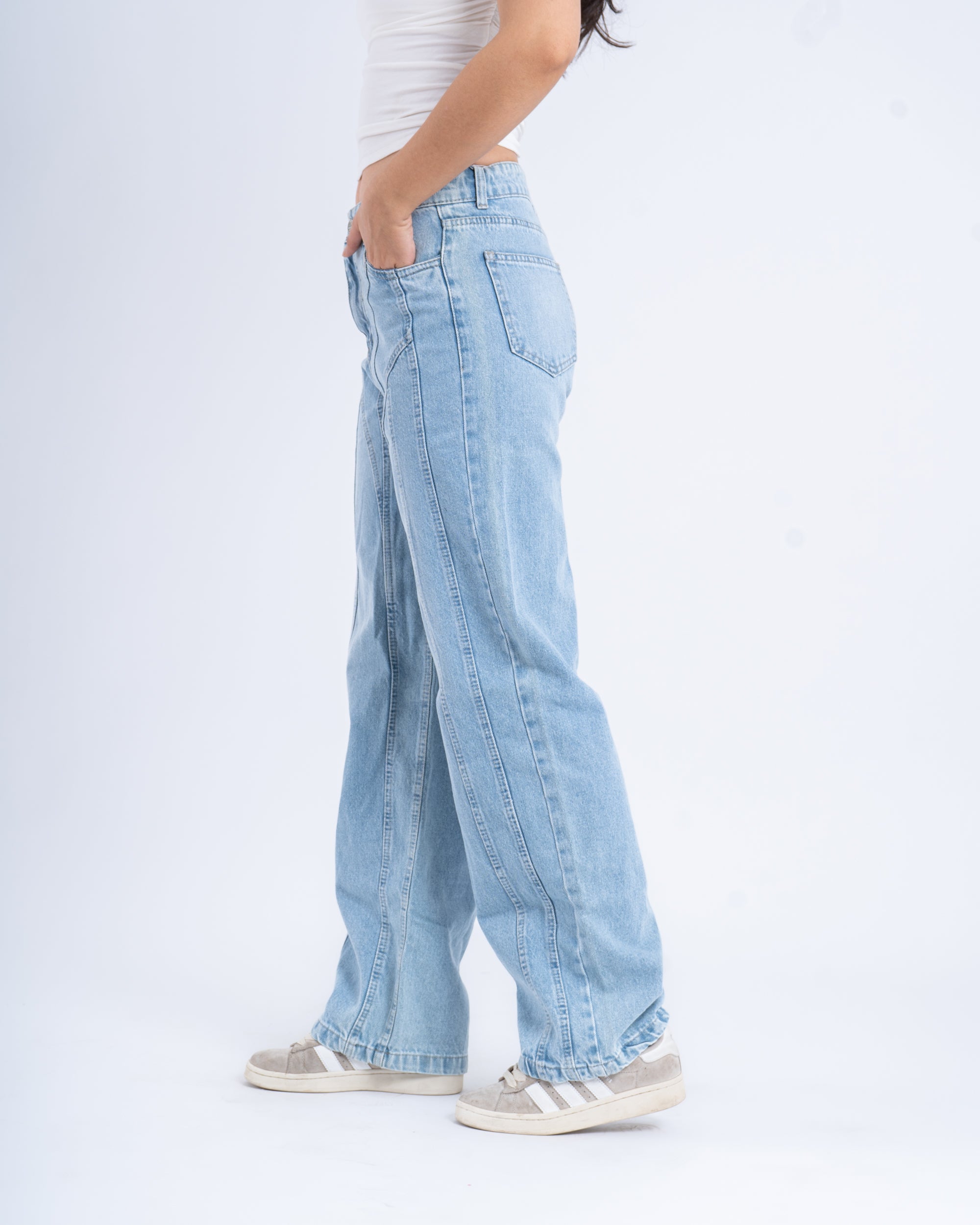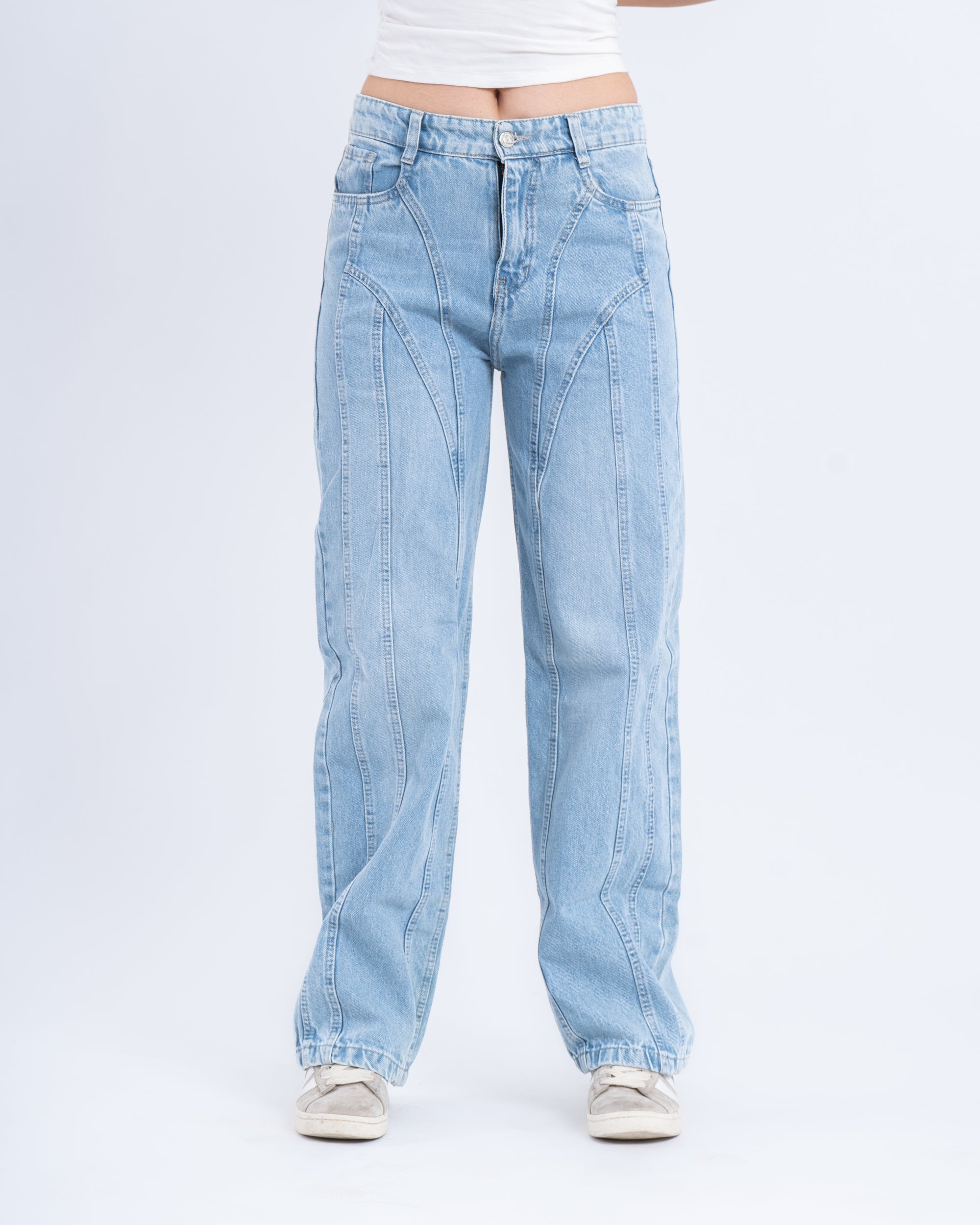 Add a modern twist to your wardrobe with these lined denim pants, featuring unique seam details that give a fresh, structured look to a classic style. These wide-leg jeans combine comfort with trend-forward detailing, making them perfect for elevating your everyday outfits.