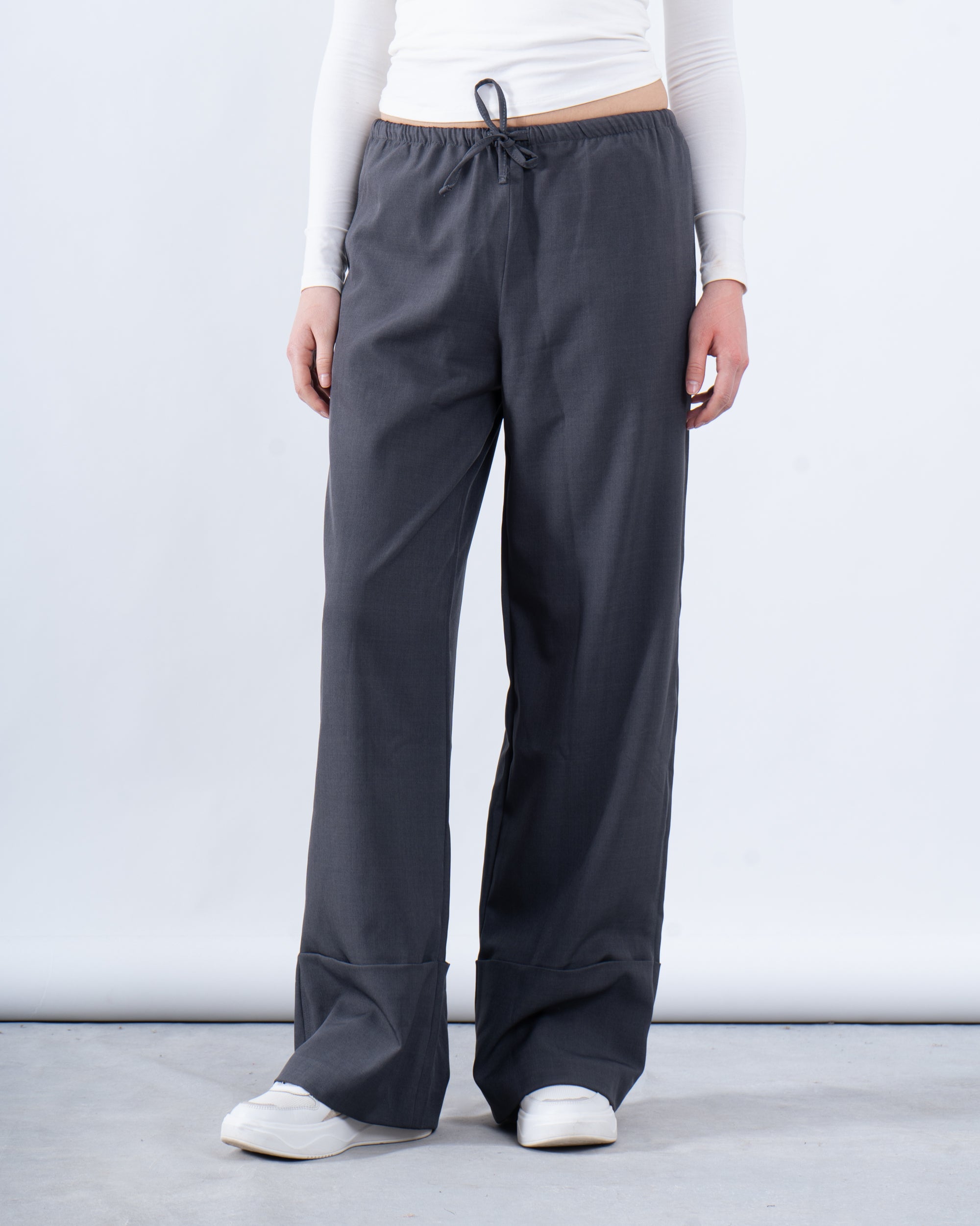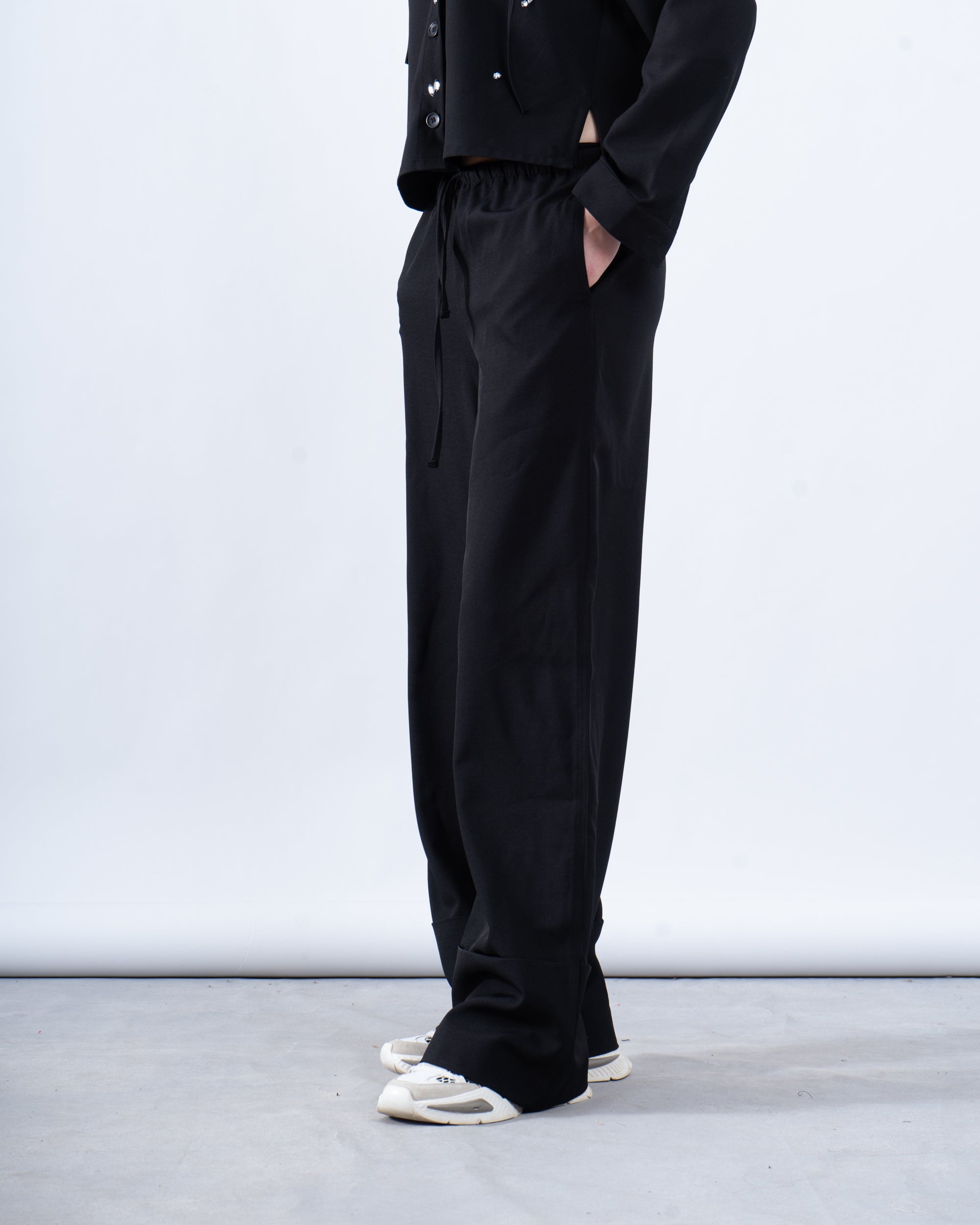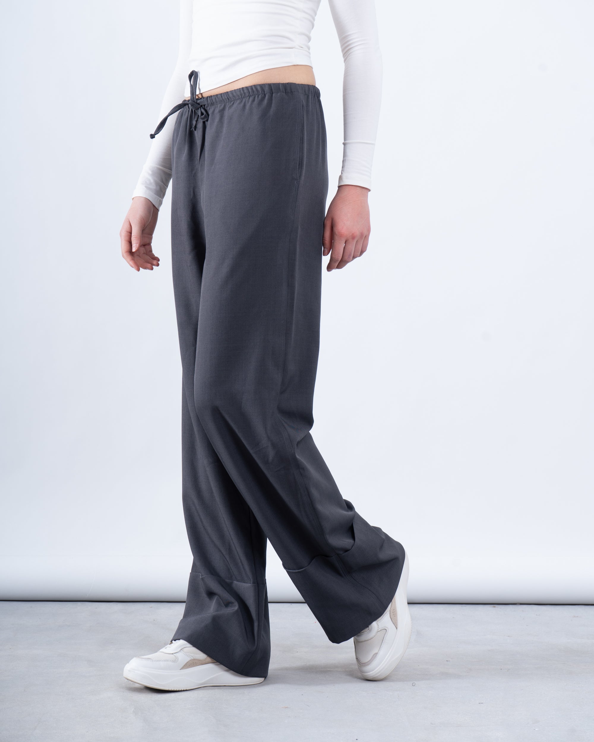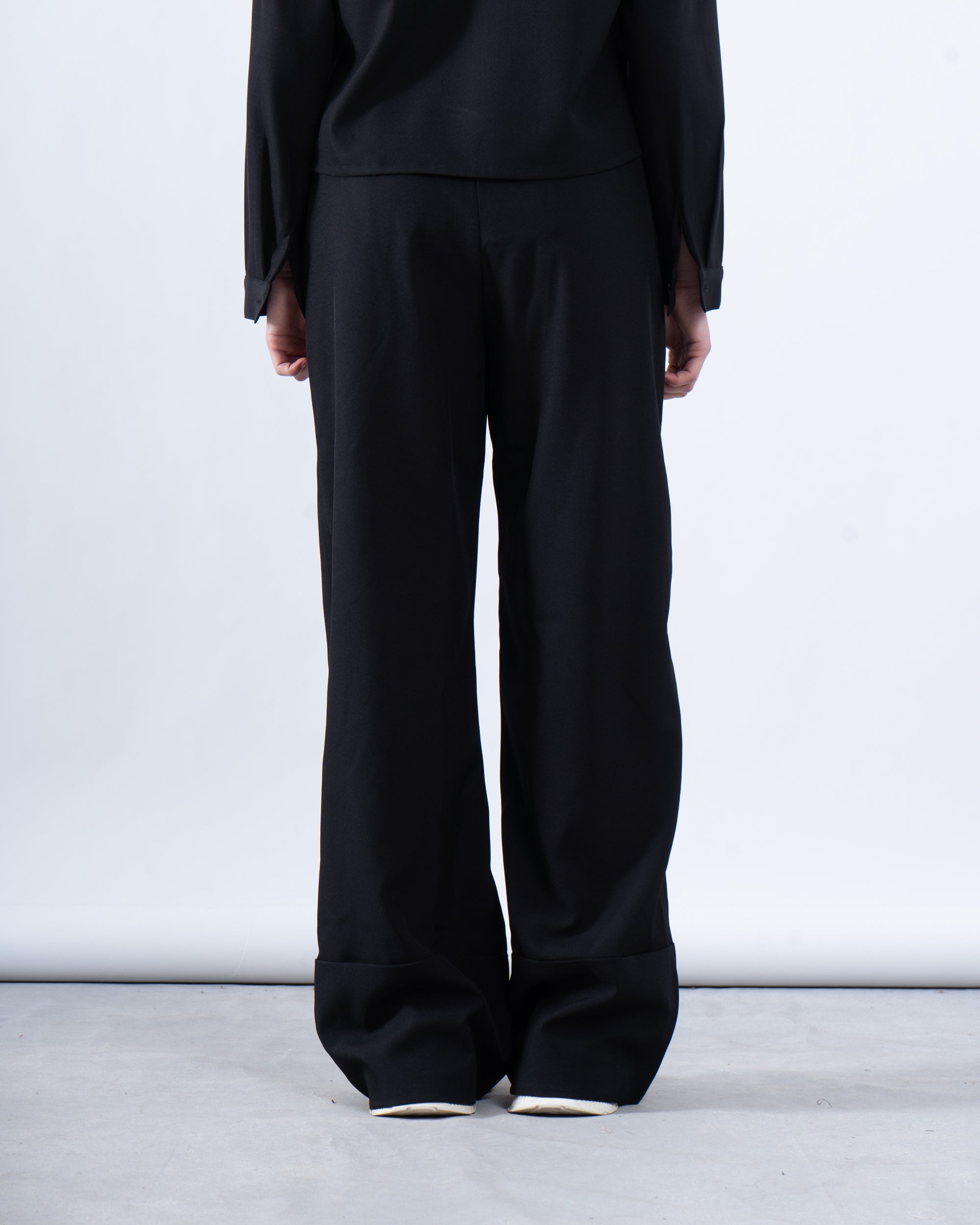 A sleek and modern essential, these no-waist wide-leg pants offer a minimalistic and effortless look.