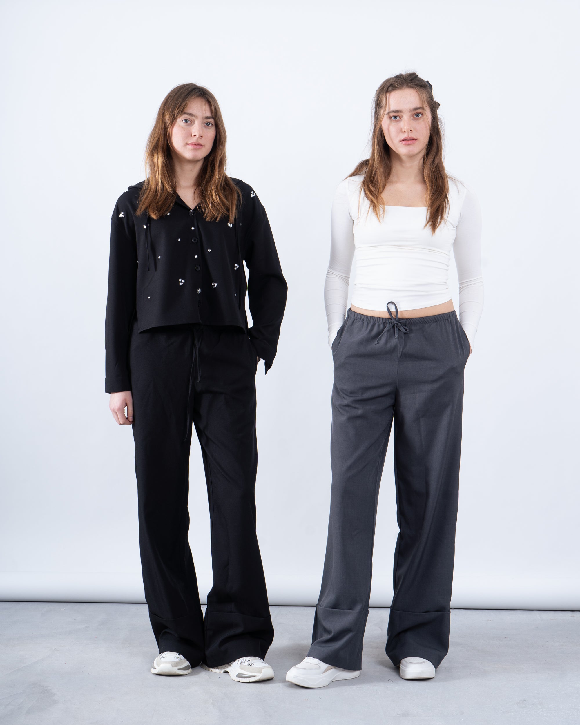 Matching embellished shirt available in both colors.
