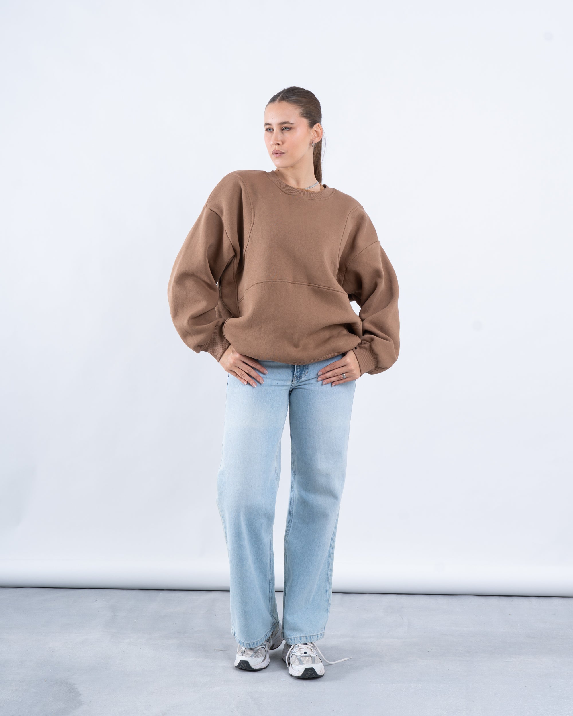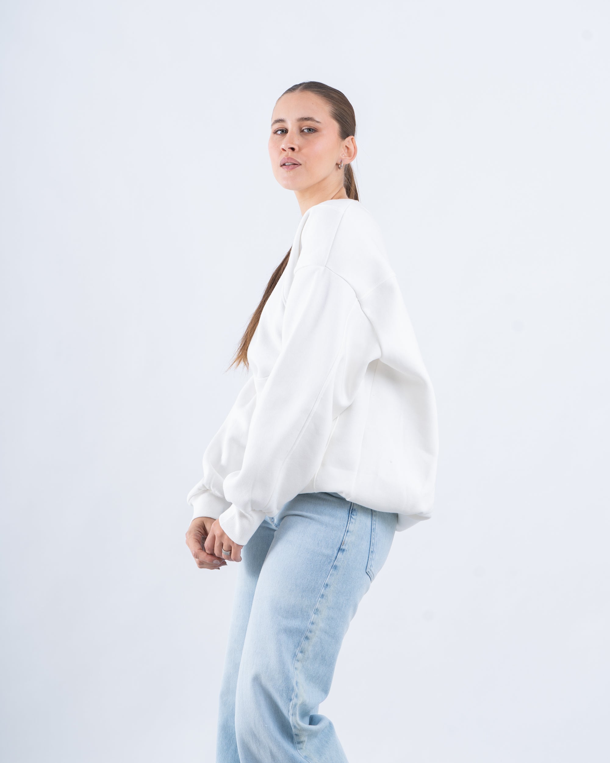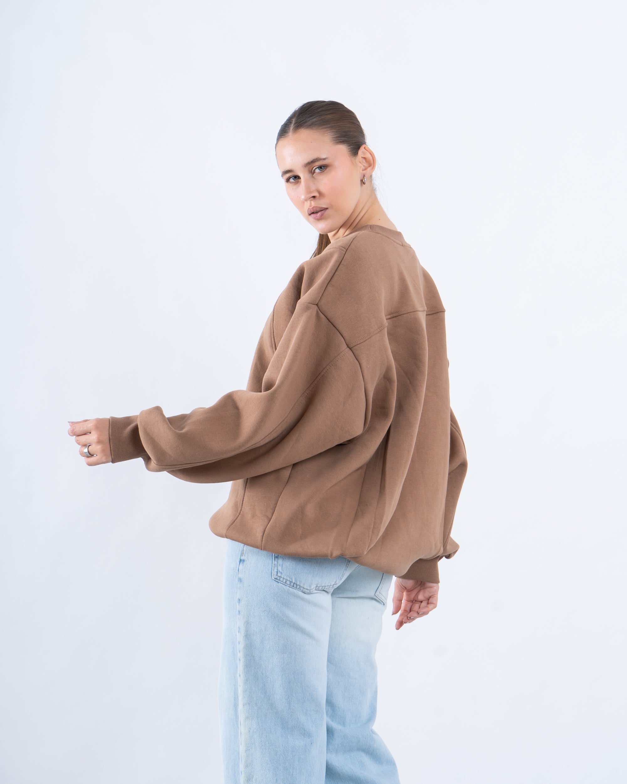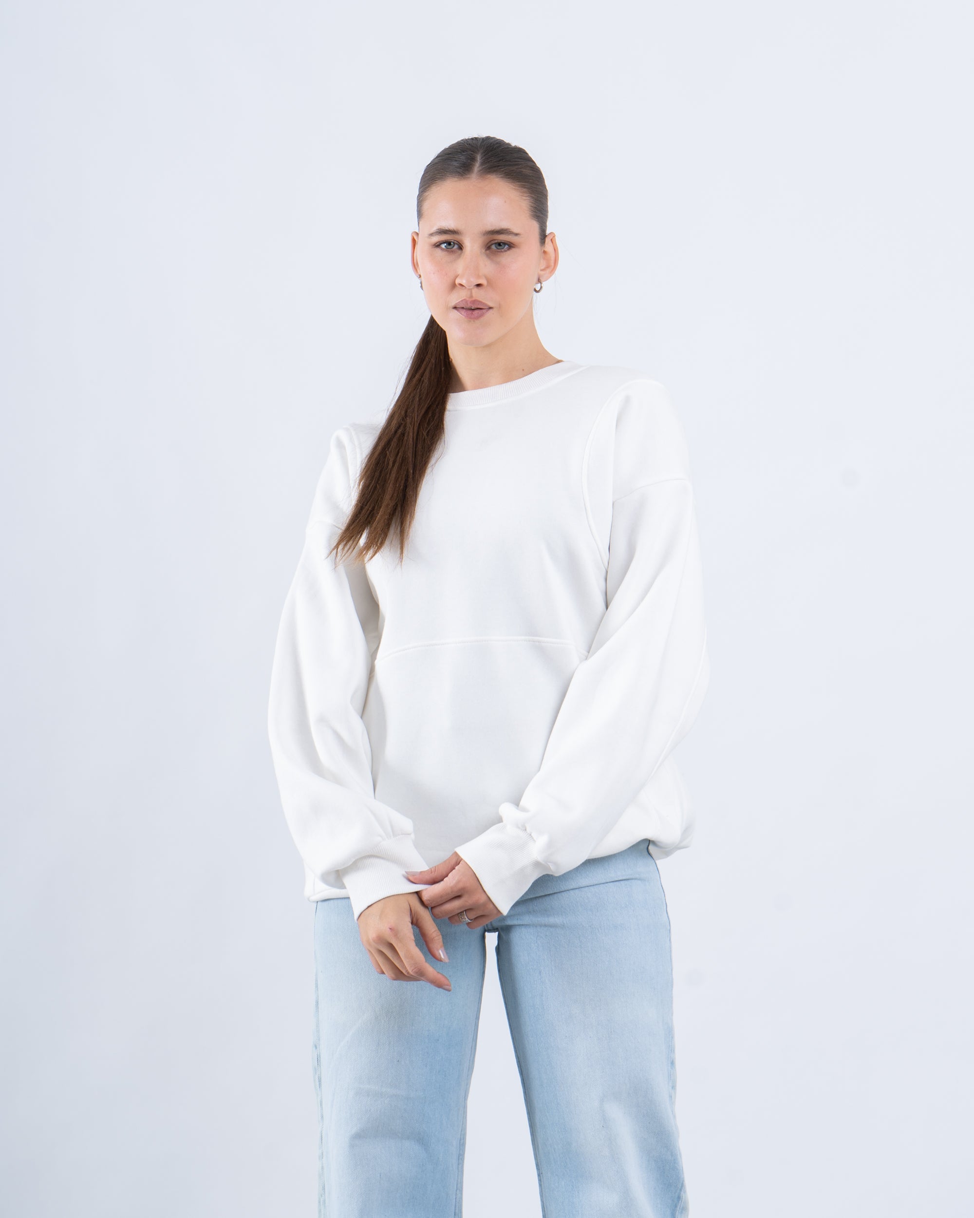 Embrace cozy comfort with this oversized sweatshirt, available in classic white and versatile camel. Designed for a relaxed fit, it features a soft,fleece-lined plush fabric perfect for layering or wearing on its own. The minimalist style makes it an ideal staple for any casual wardrobe, easily paired with jeans, leggings, or joggers for an effortlessly chic look.