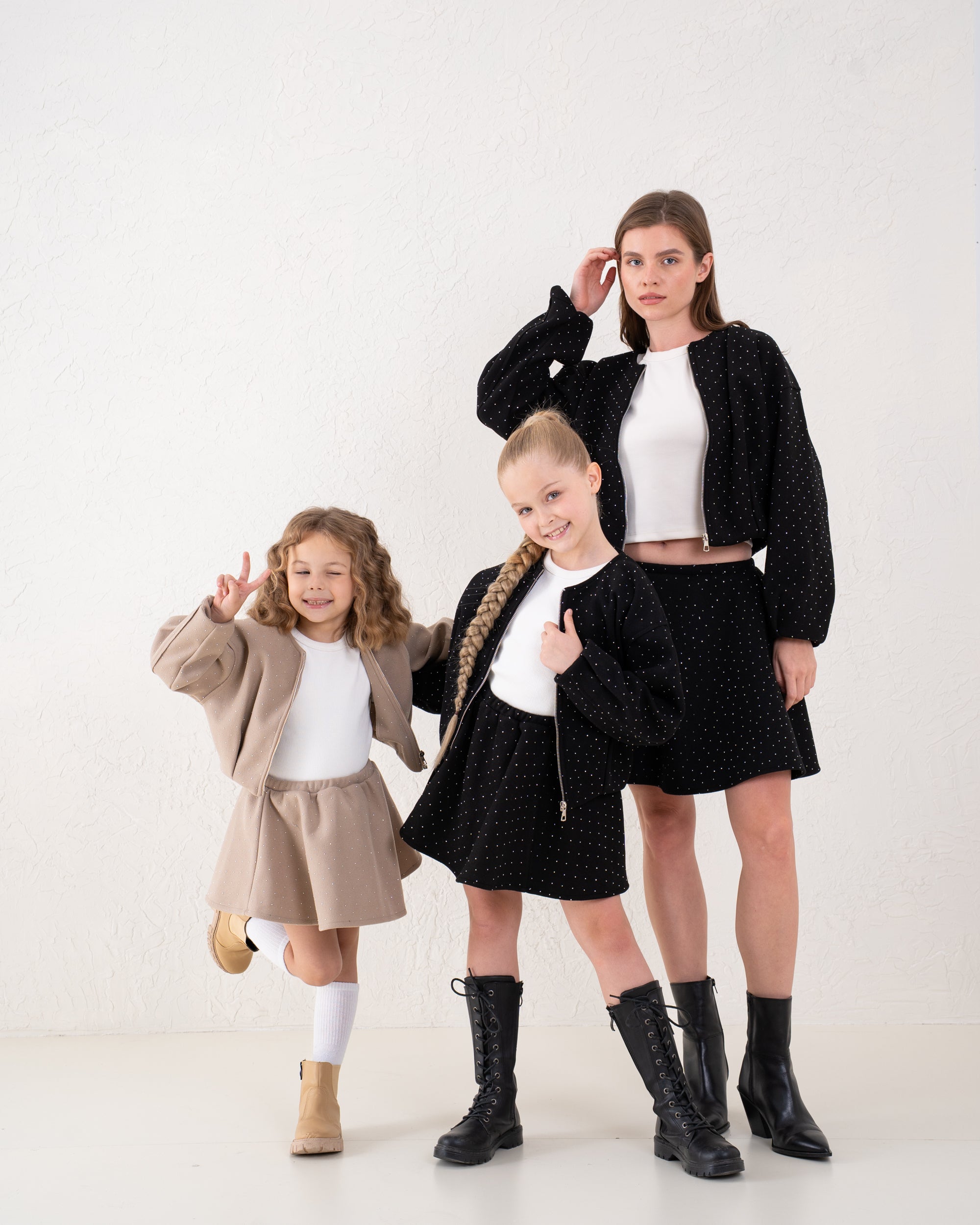 • Fit: A-line with elastic waist (kids) / fitted waist (women)