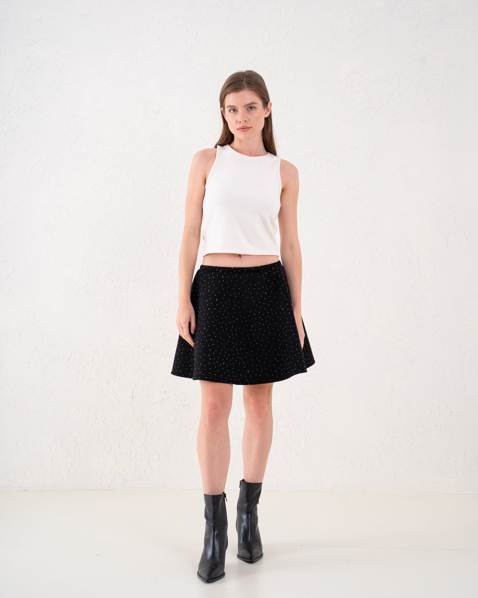 A classic A-line mini skirt with soft sparkle detailing for a touch of glamour. Flattering and easy...