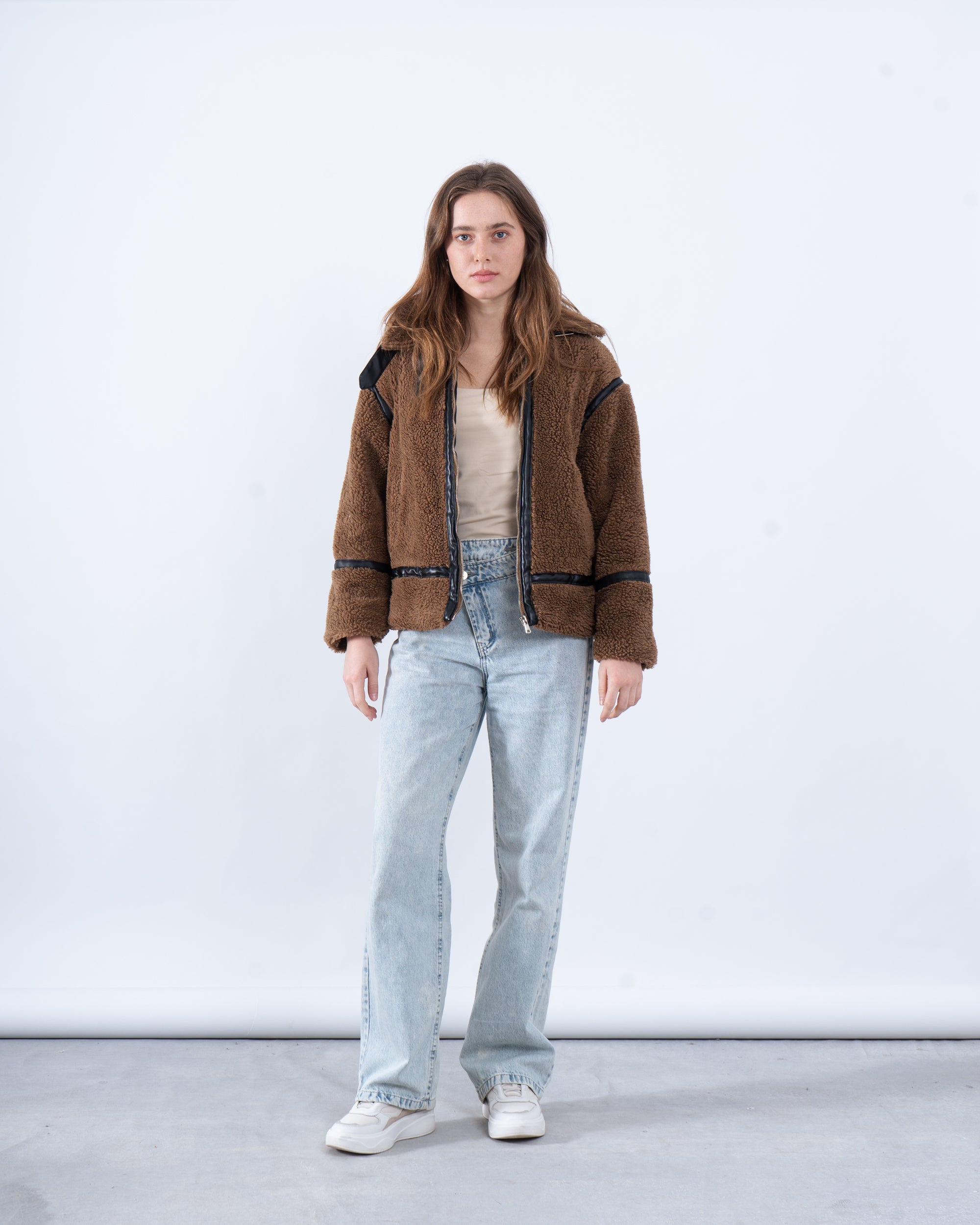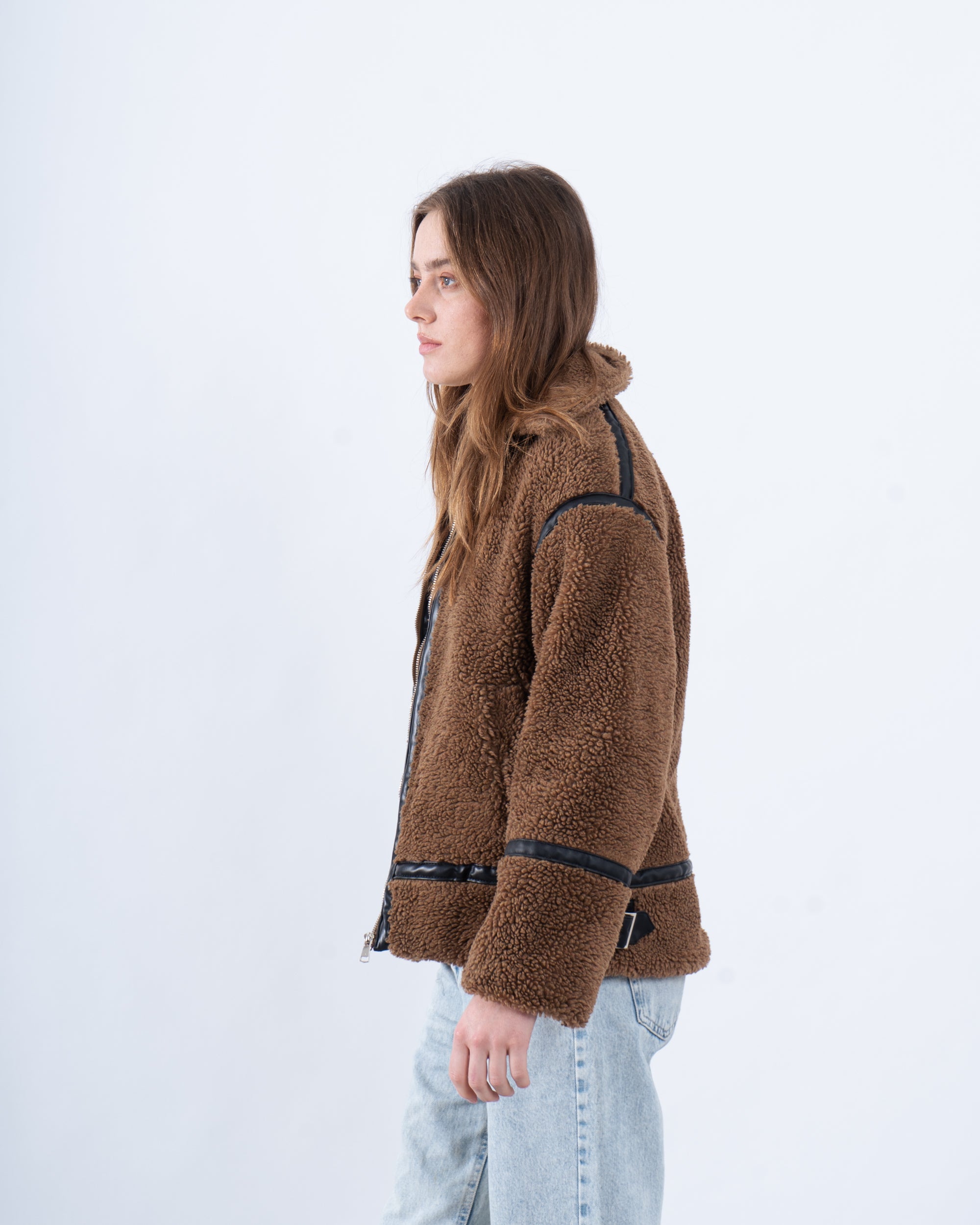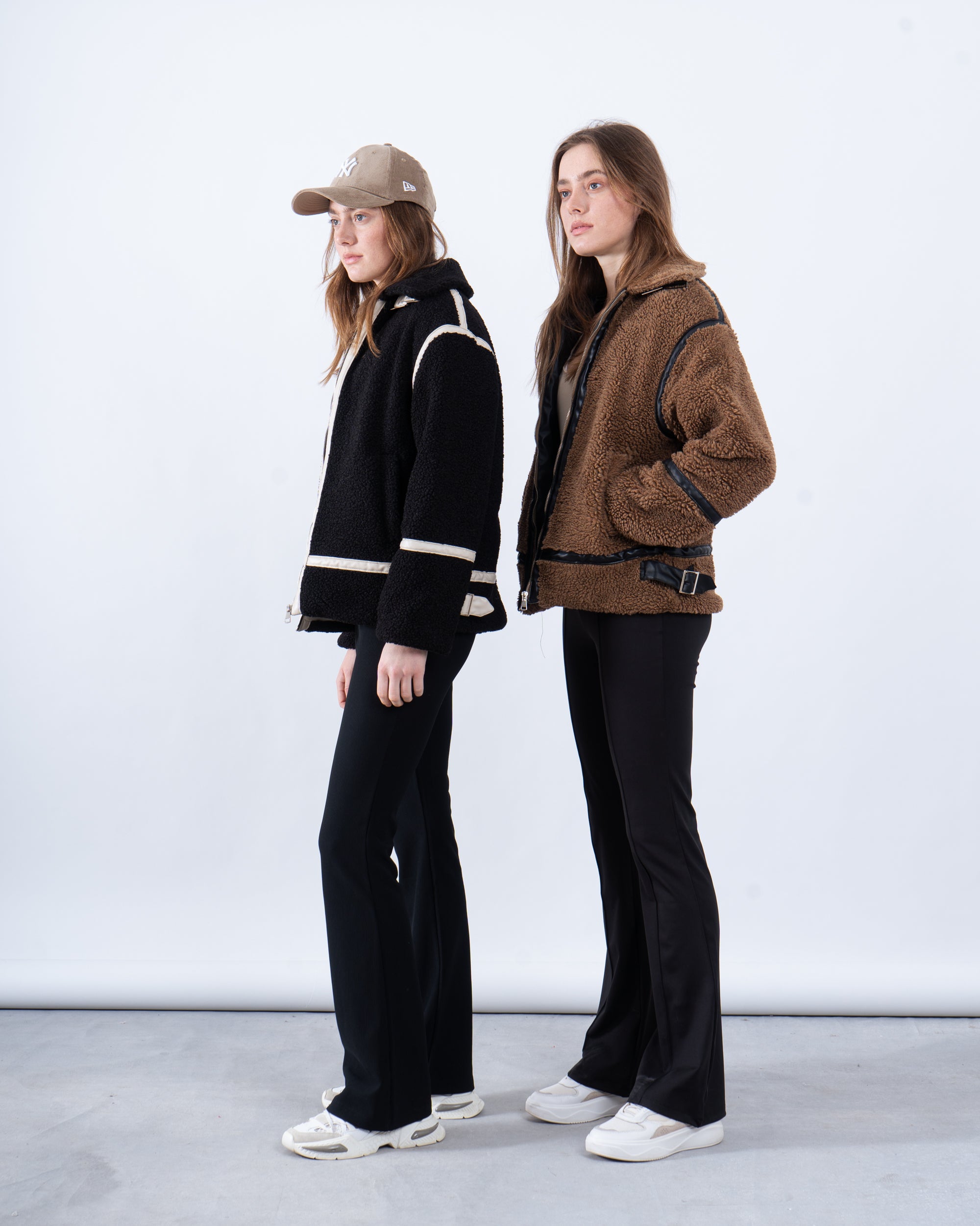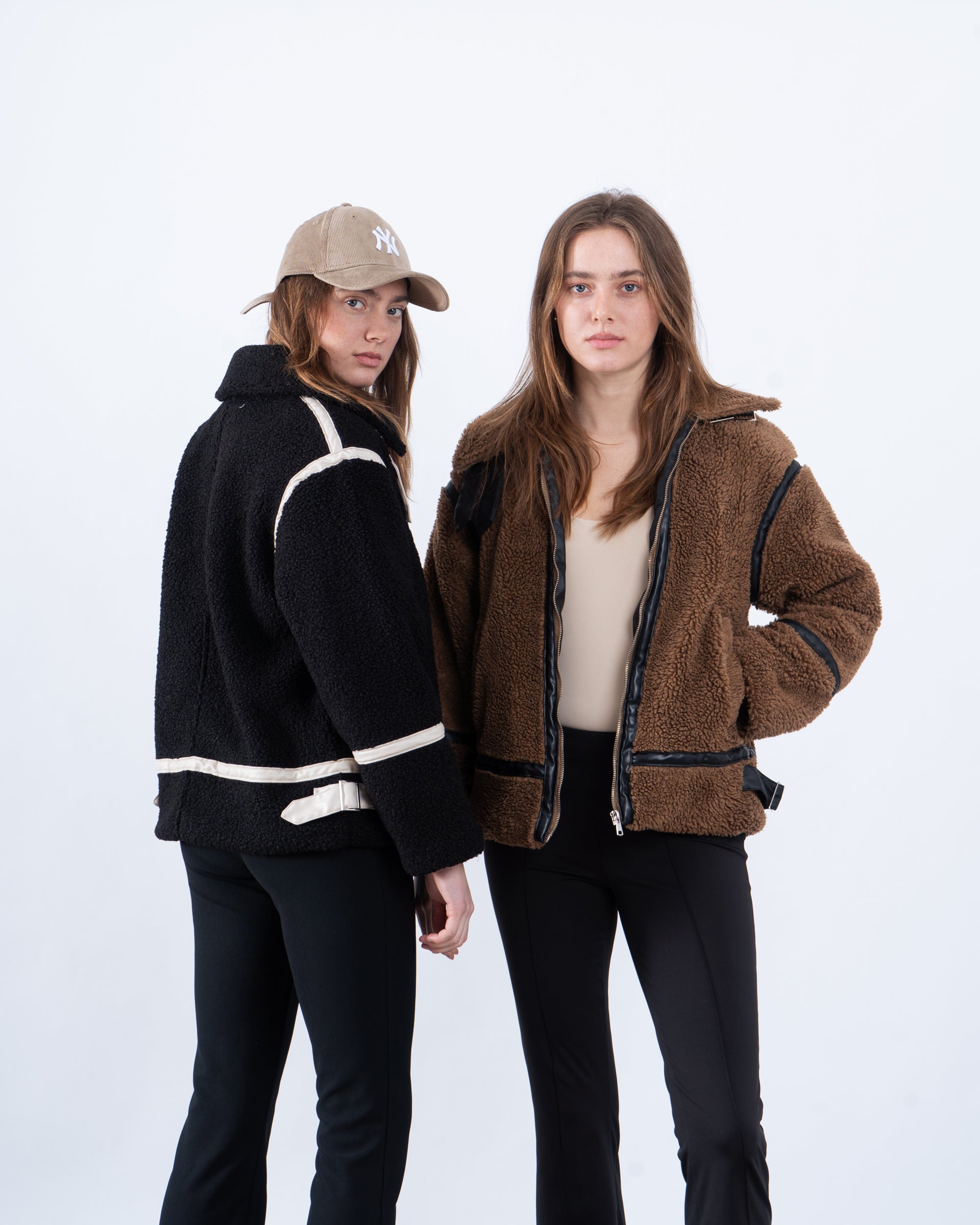 Stay cozy and stylish with this plush jacket, featuring a contrast trim design and a zip-up front. Crafted from soft faux fur for extra warmth and comfort, it’s perfect for layering on chilly days. The adjustable buckle details add a touch of edge to this winter staple.