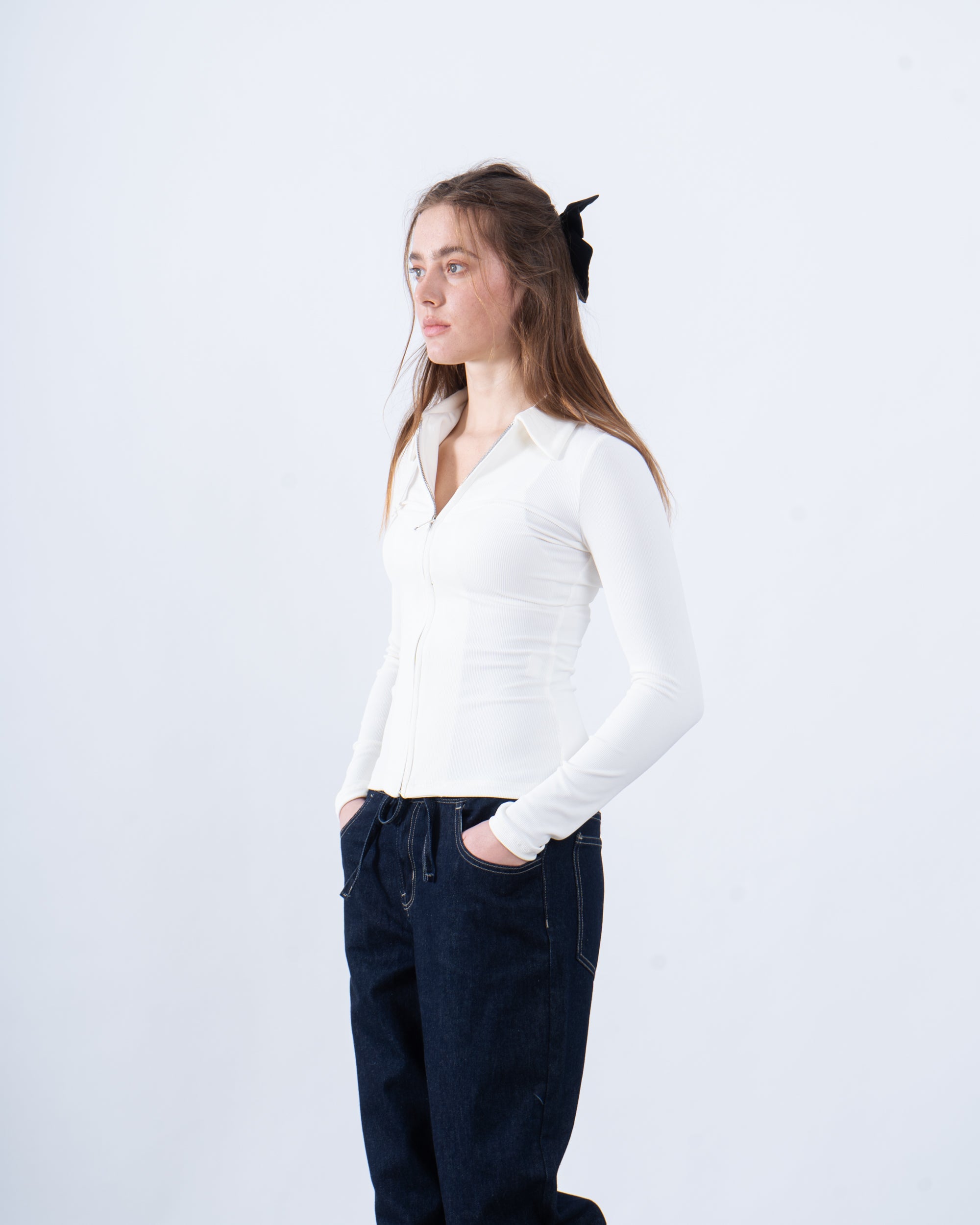 A sleek and versatile essential, this zip-up top is designed for a flattering fit with a modern edge.